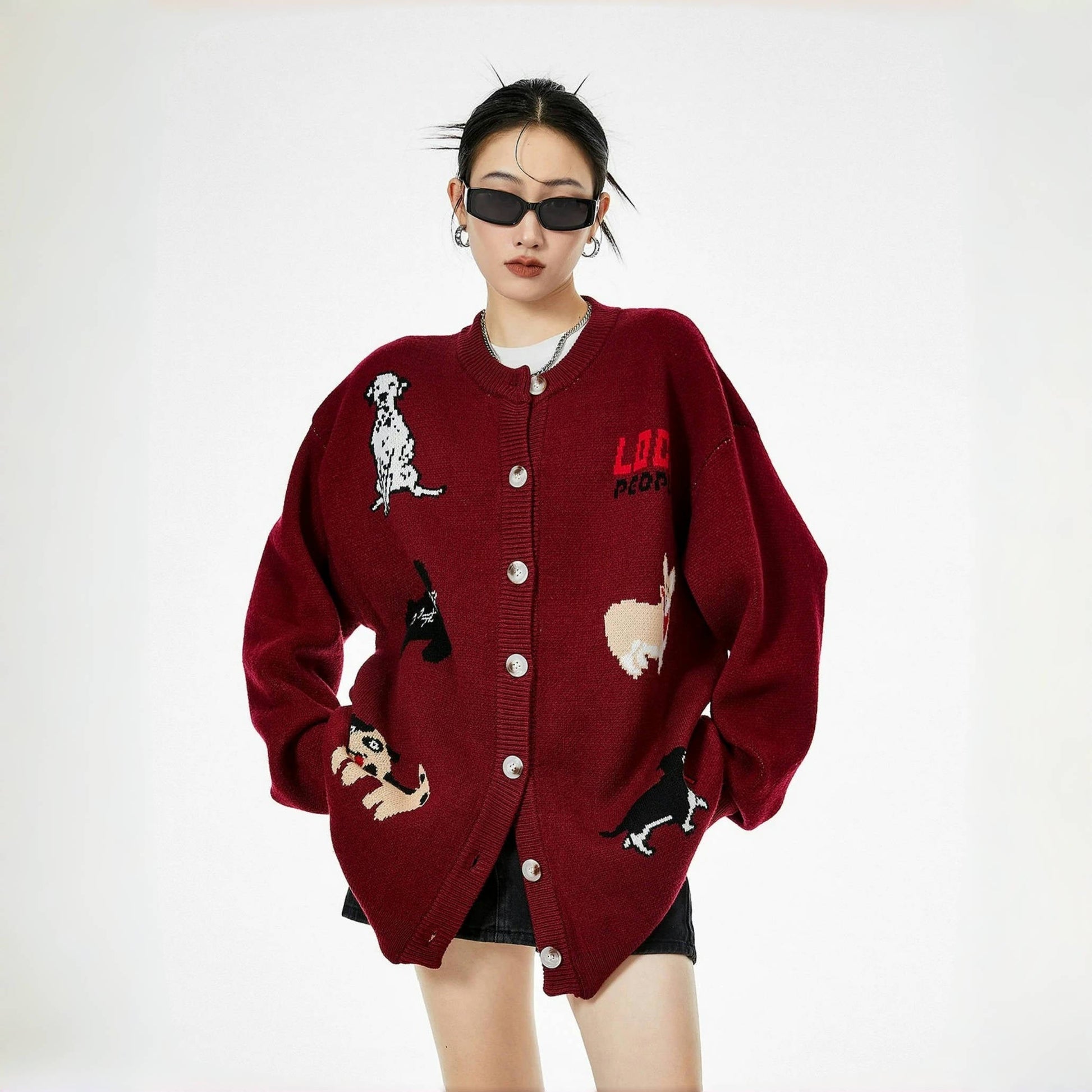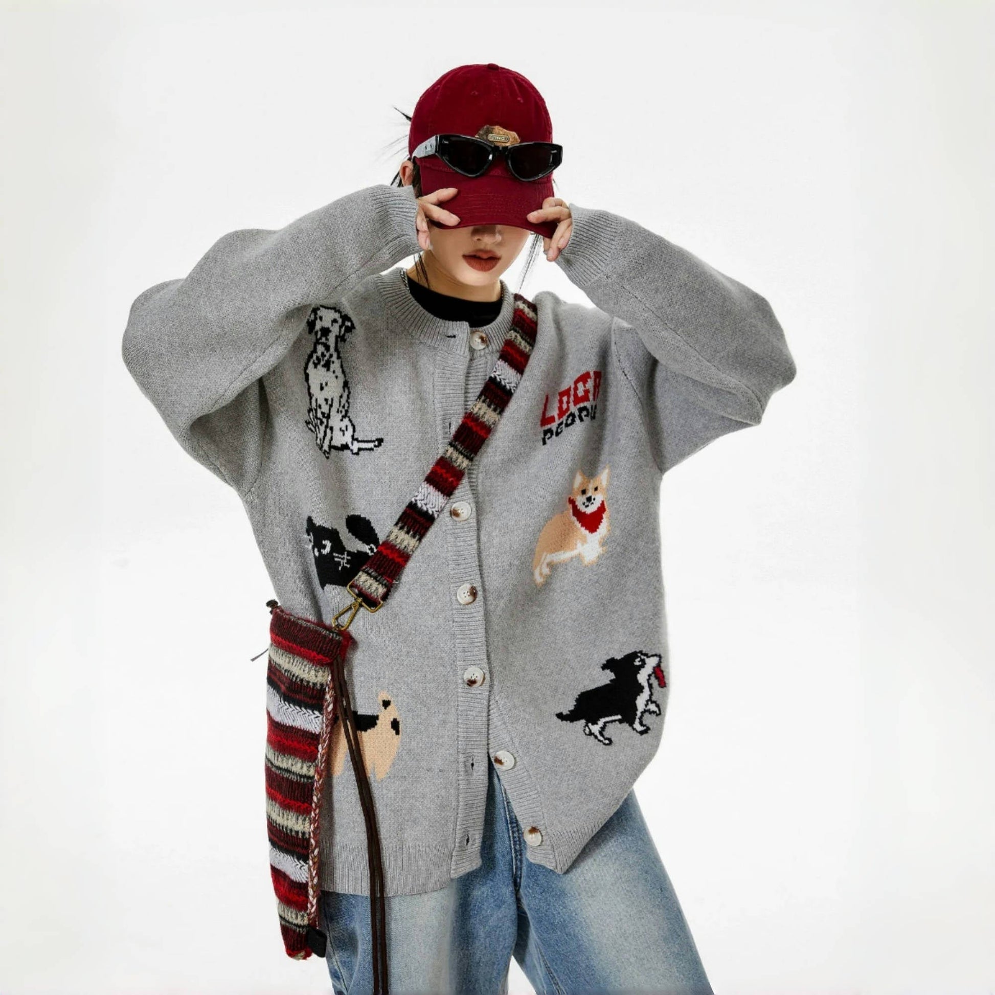 【トップス】レトロ 豹柄 猫 ゆったり ラウンドネック ニットセーター【FCシリーズ】