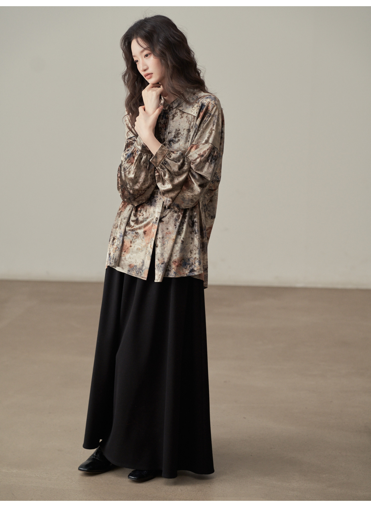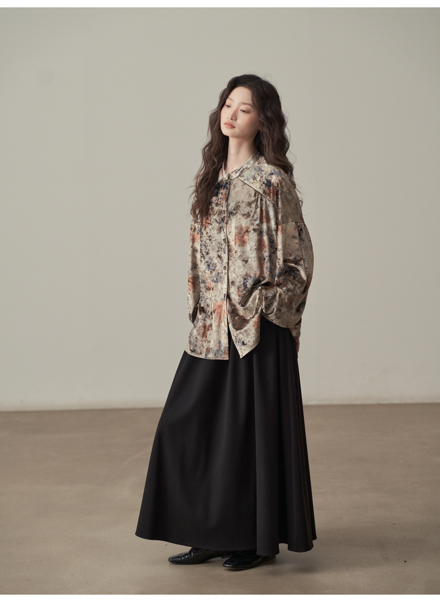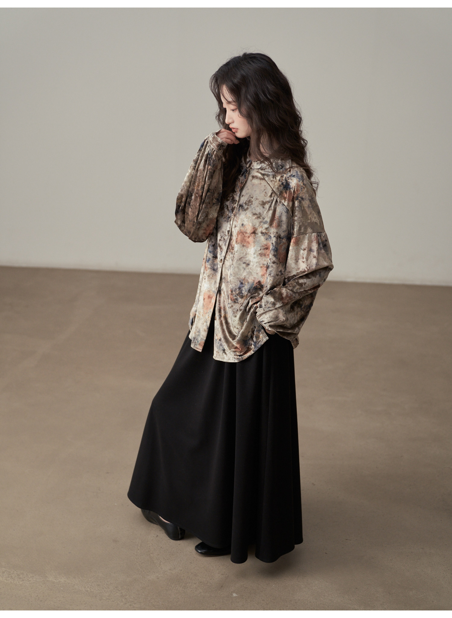 【商品名】【トップス】エレガント ゆるリラックス ビロード 花柄 シャツ·ブラウス【JZシリーズ】