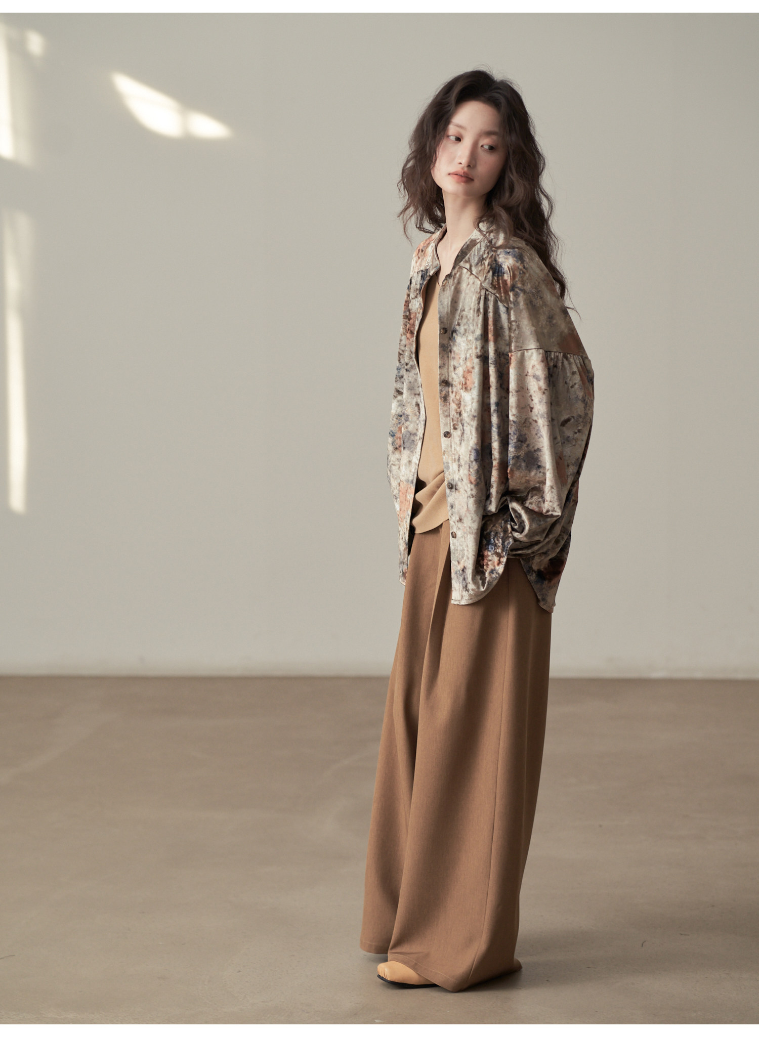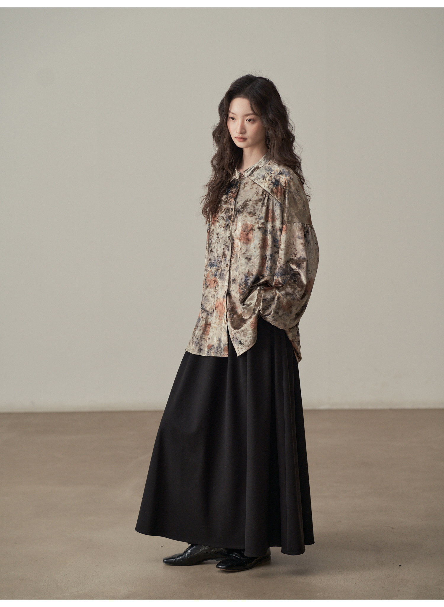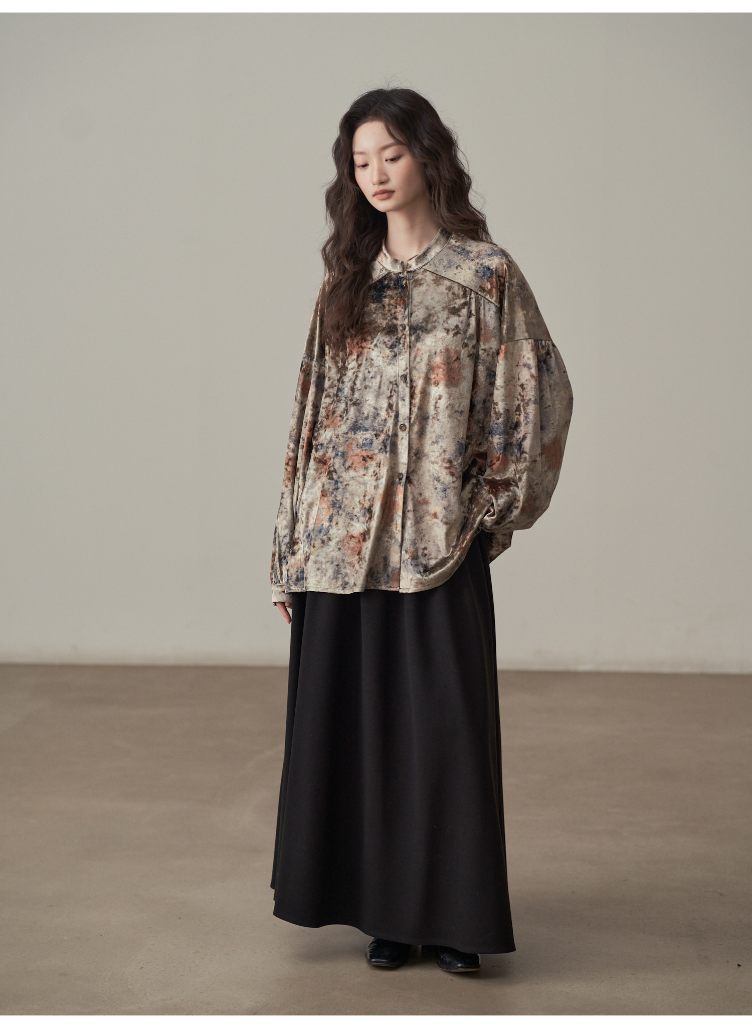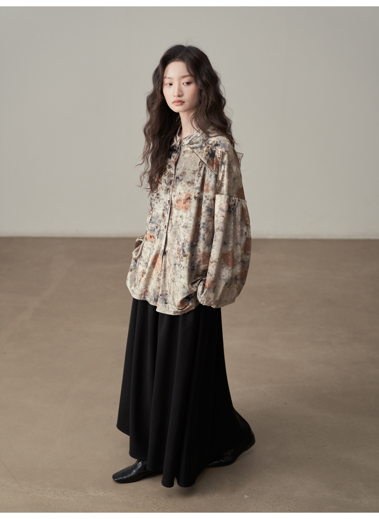 【商品名】【トップス】エレガント ゆるリラックス ビロード 花柄 シャツ·ブラウス【JZシリーズ】