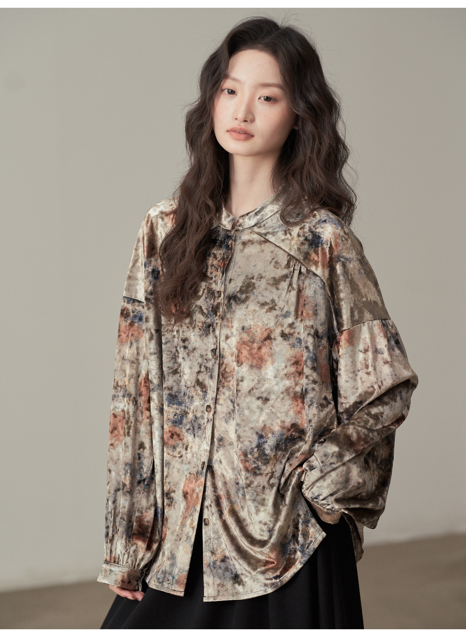 【トップス】春秋 エレガント ゆるリラックス ビロード 花柄 シャツ·ブラウス【JZシリーズ】