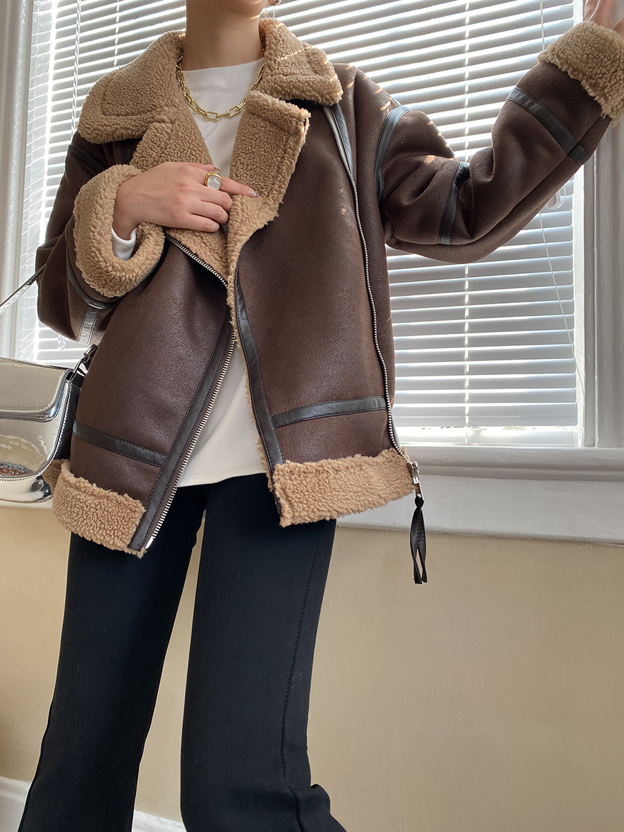 【アウター】レトロ感×バイカラー♡ボアジャケット 冬新作 レディース あったか【JZシリーズ】