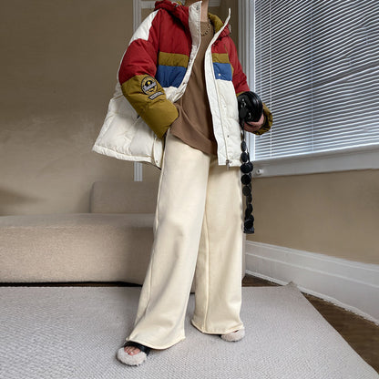 【ボトムス】ハイウエスト 刺繍入り スポーツパンツ レディース 春秋 ゆったり ワイド【FCシリーズ】