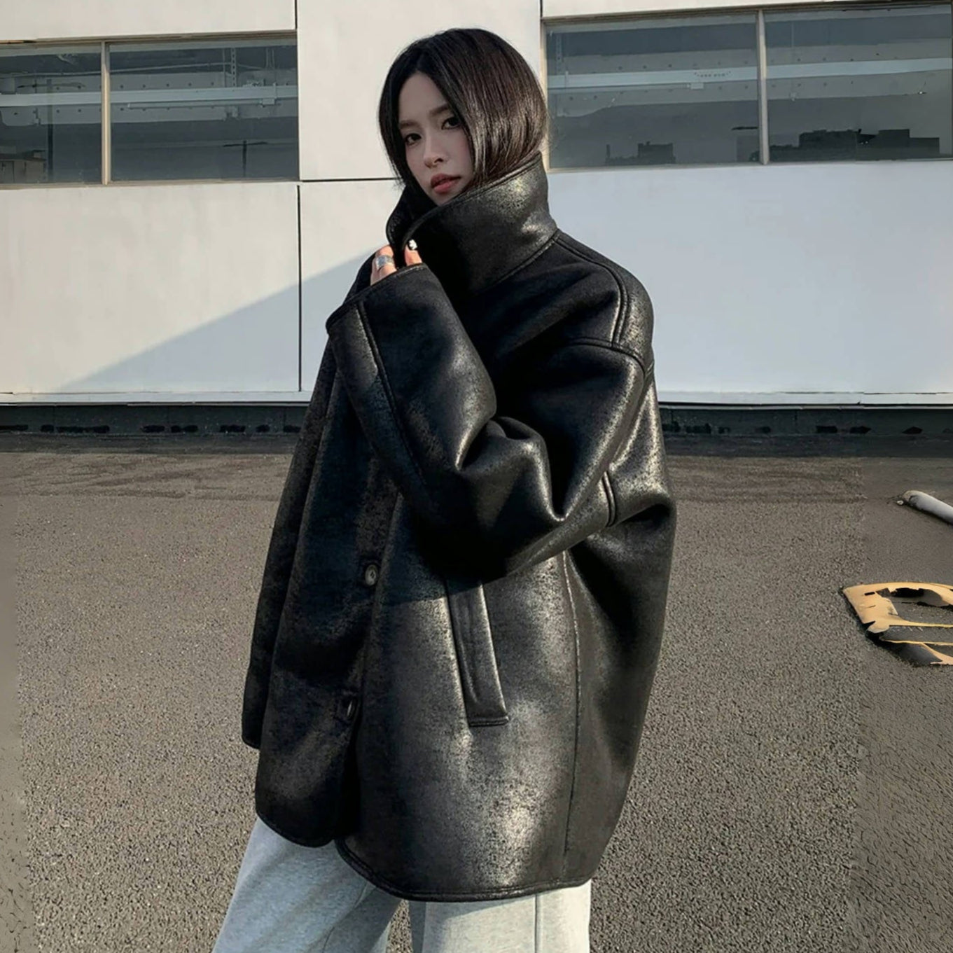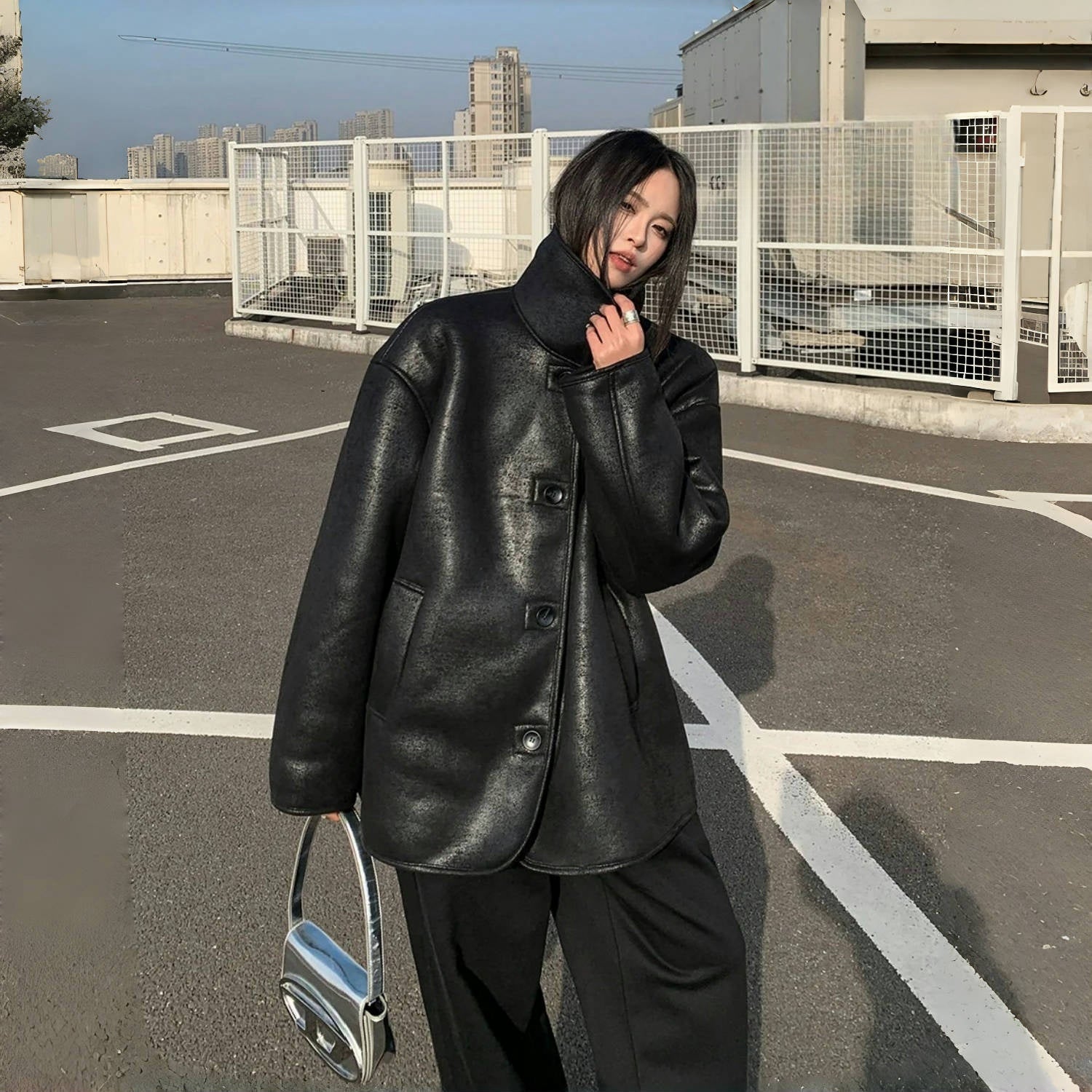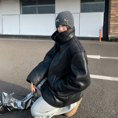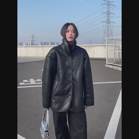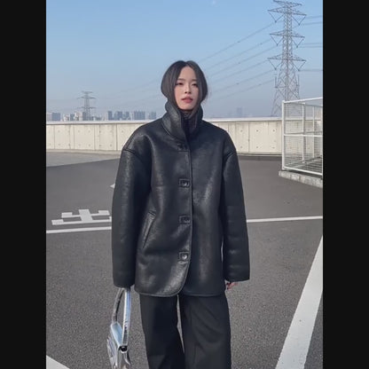 【10~20日内発送】【アウター】Sシープボア PU 冬 ヴィンテージ加工 ジャケット 【SNシリーズ】