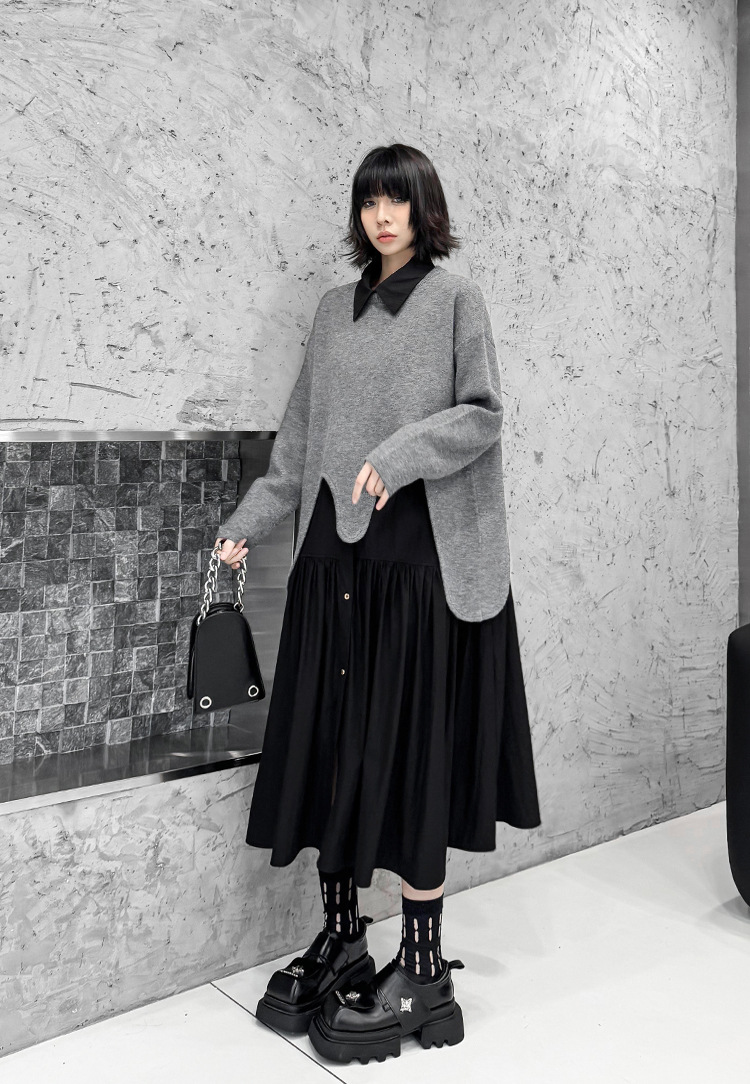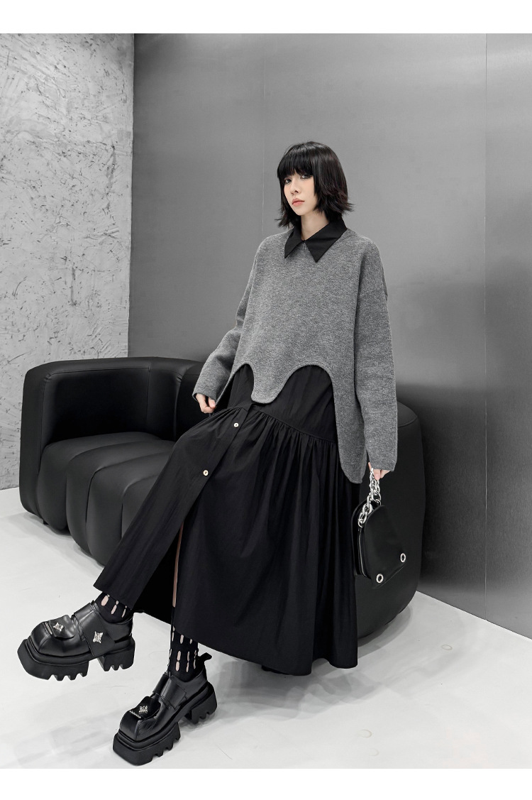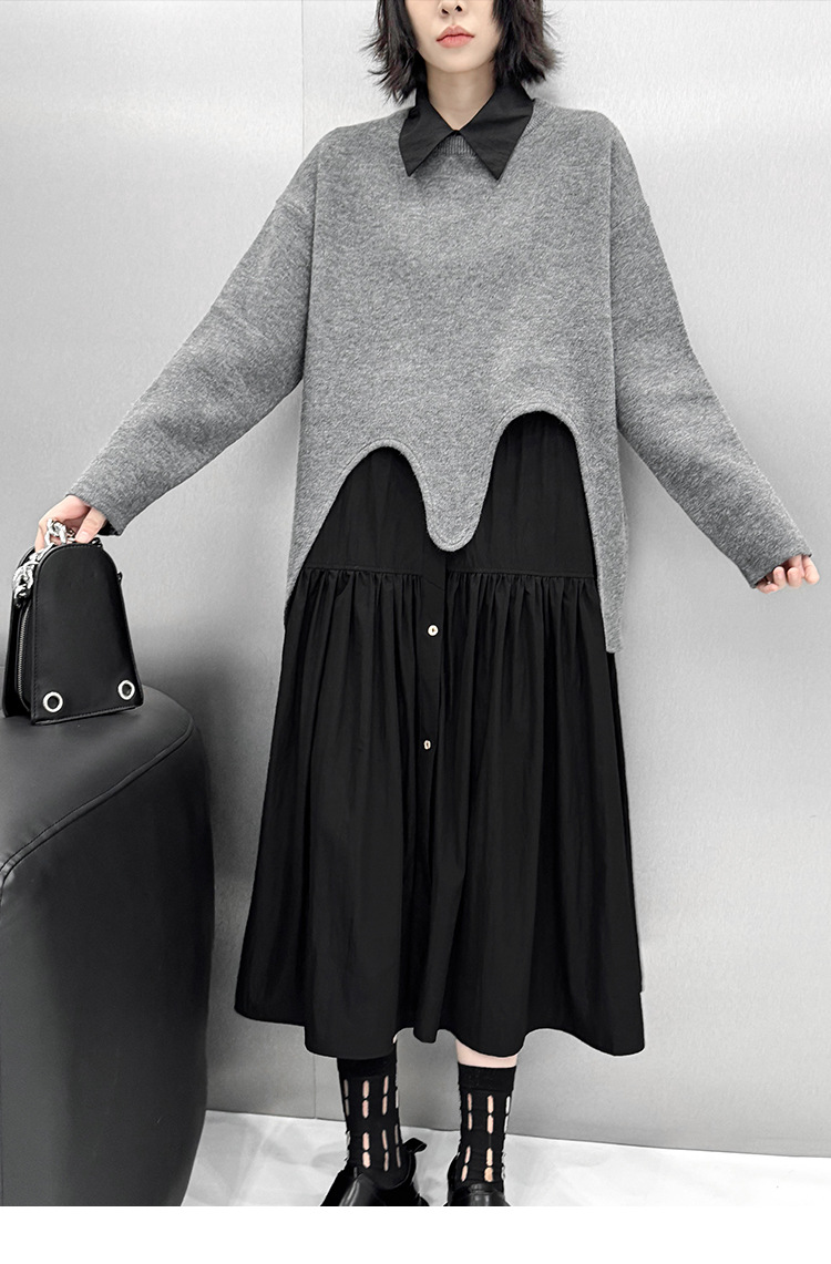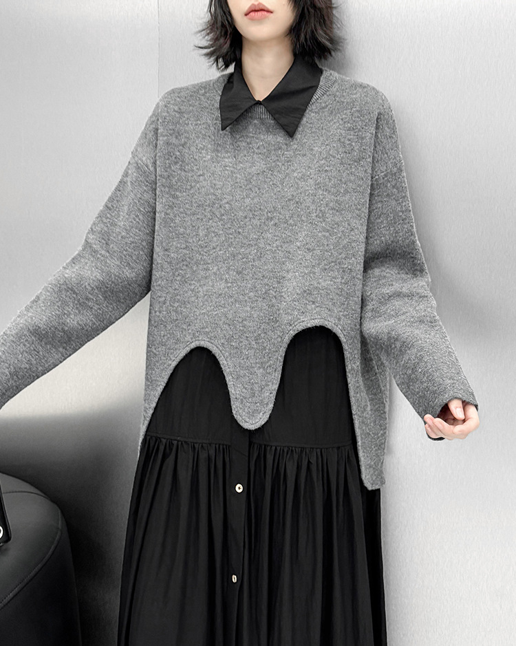 【商品名】【ワンピース】春新作 不規則なデザイン ファッション 無地 セーター + 長袖ワンピースセット