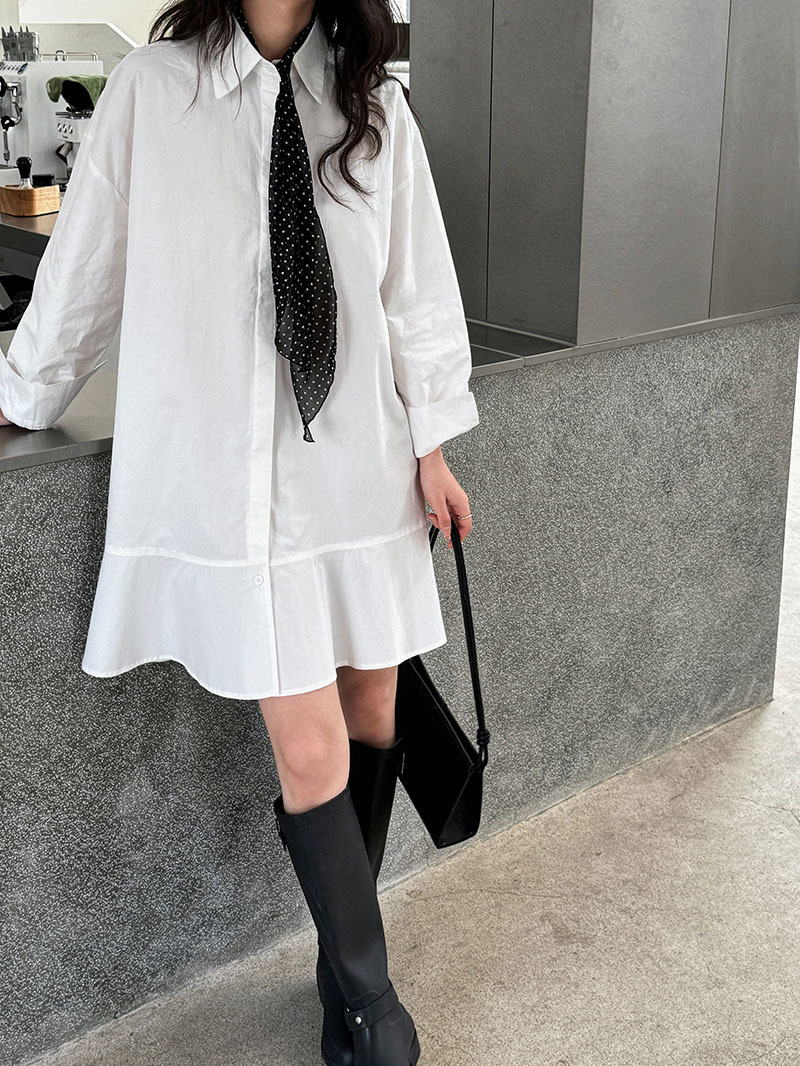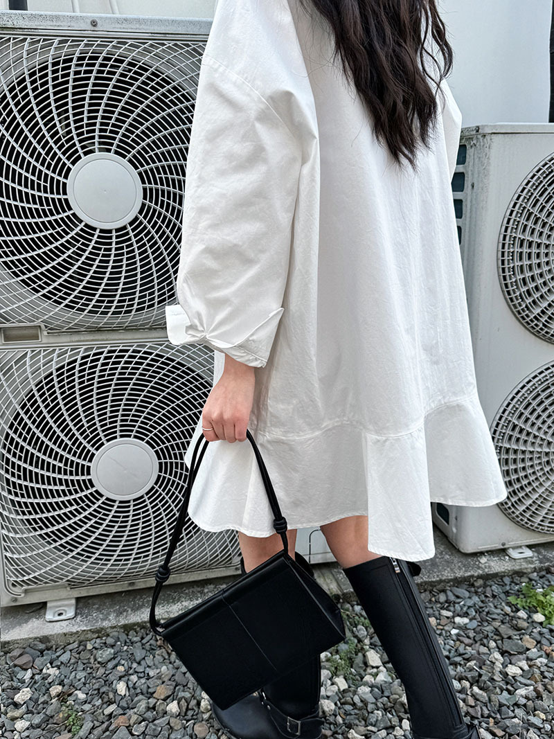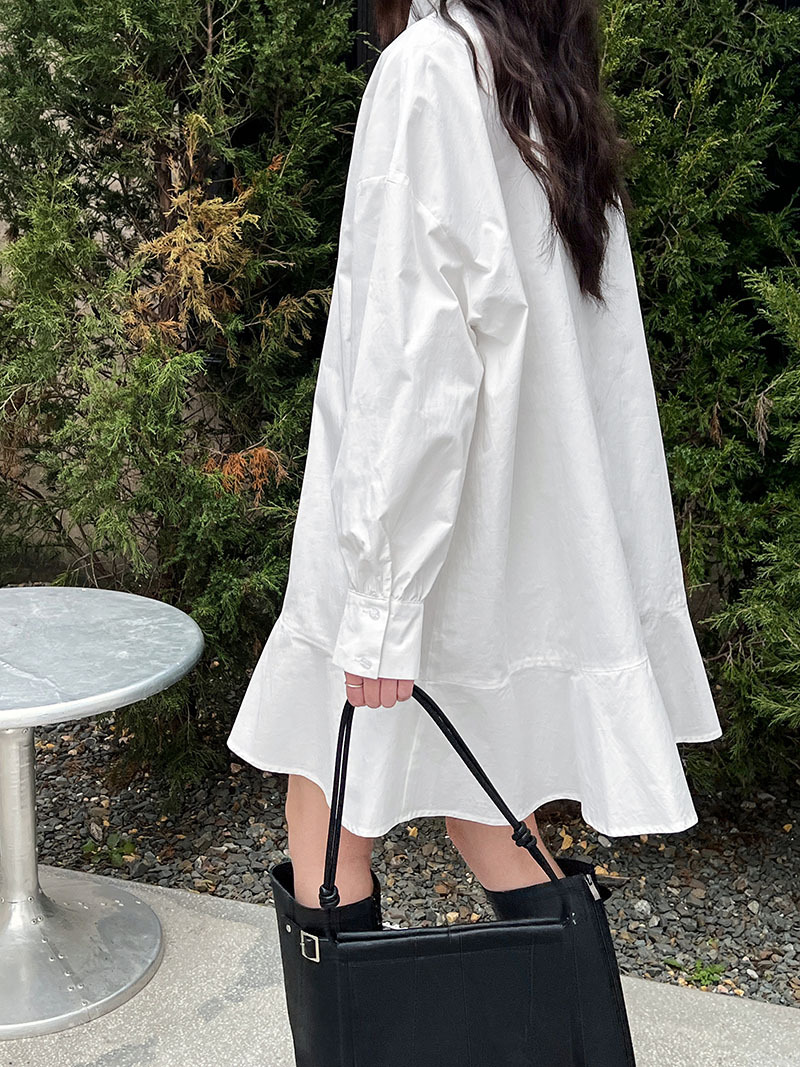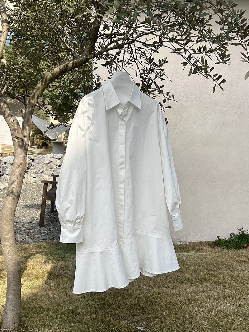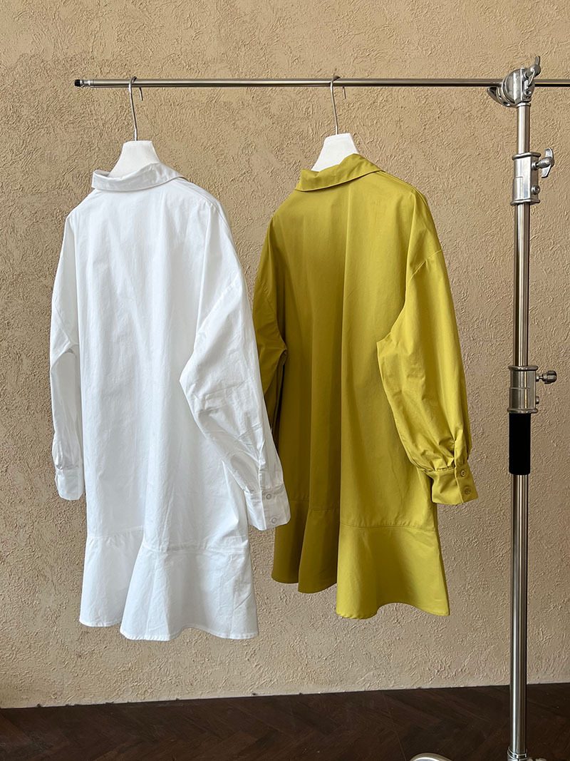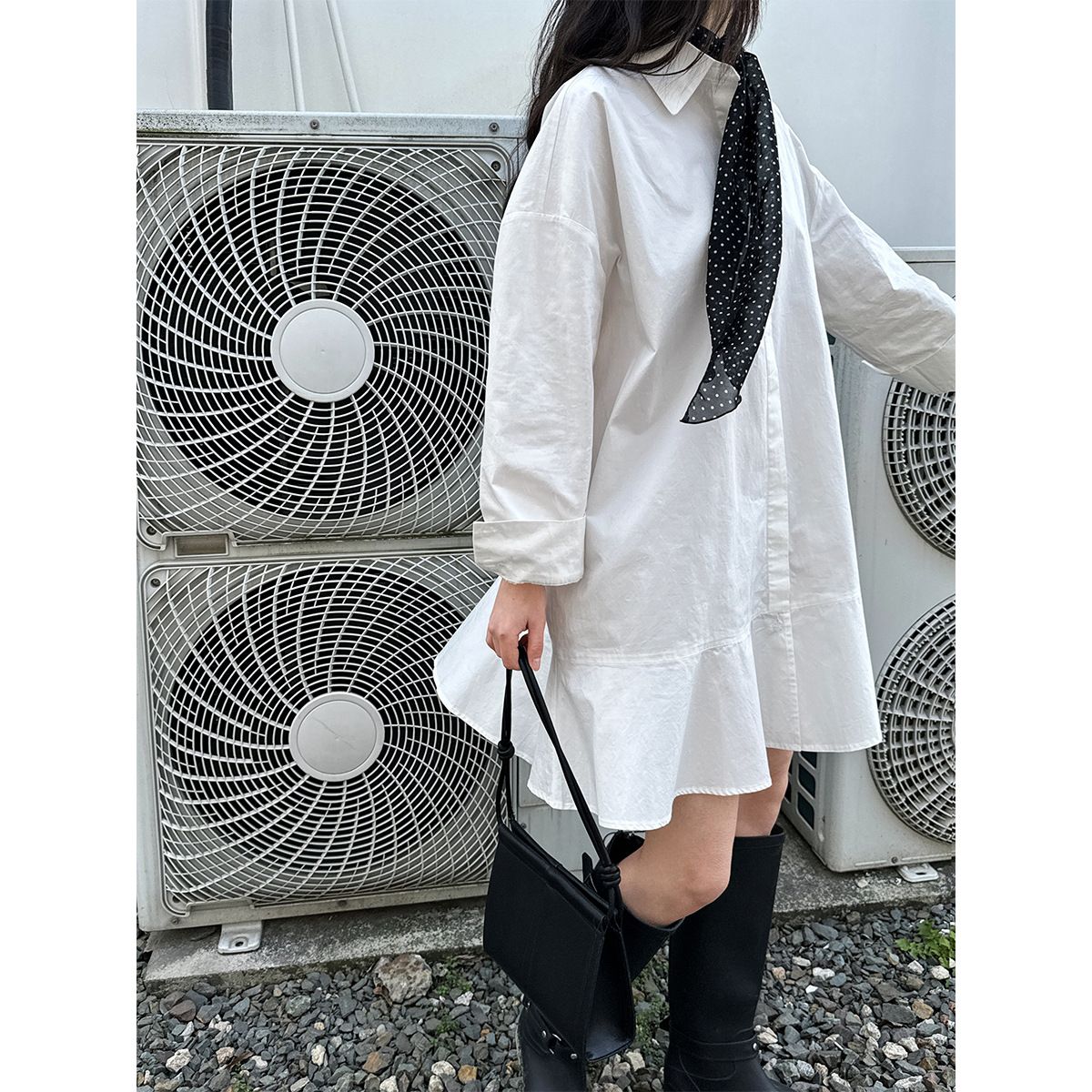 【ワンピース】春秋 ゆるリラックス シャツ 長袖 フィッシュテイルワンピース 【SNシリーズ】