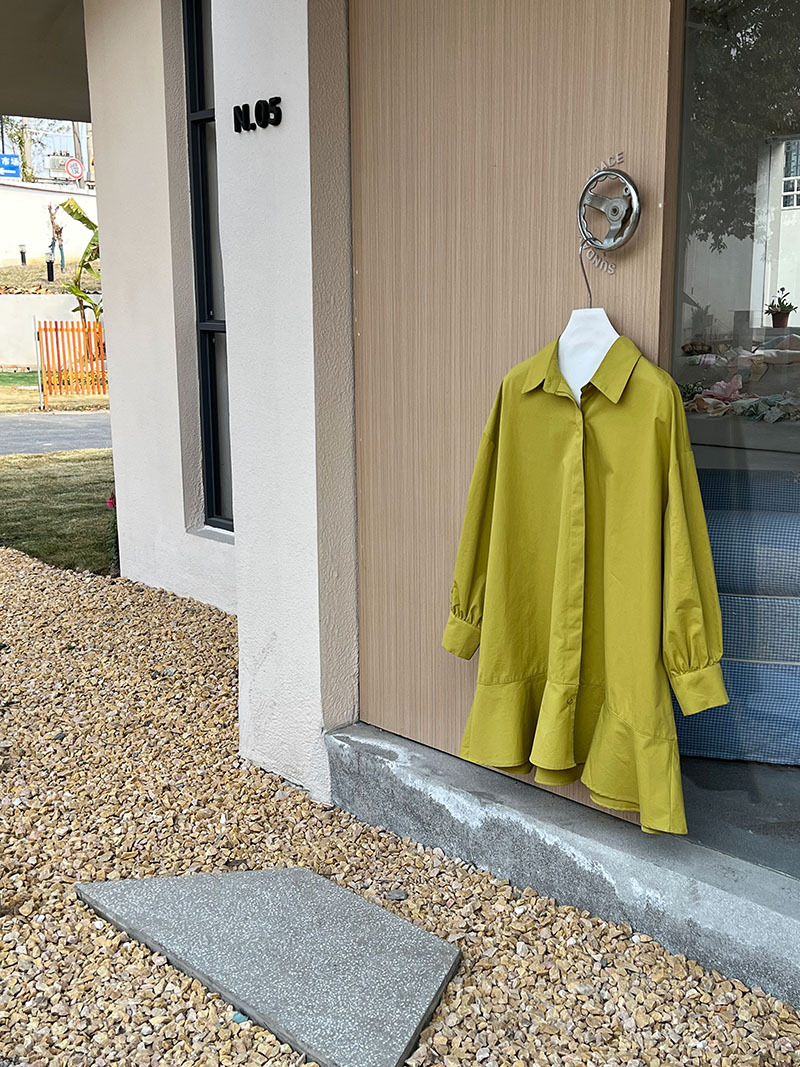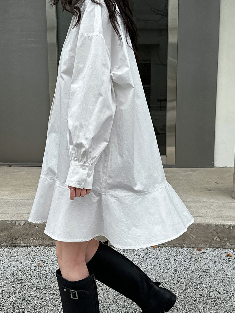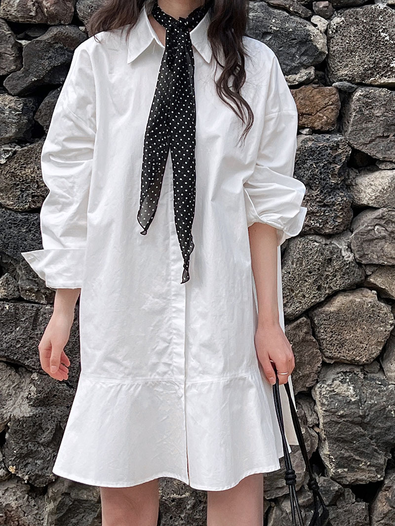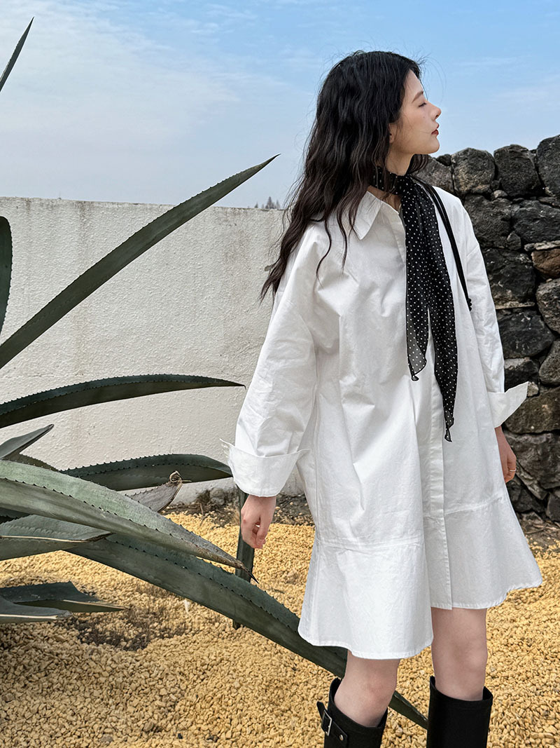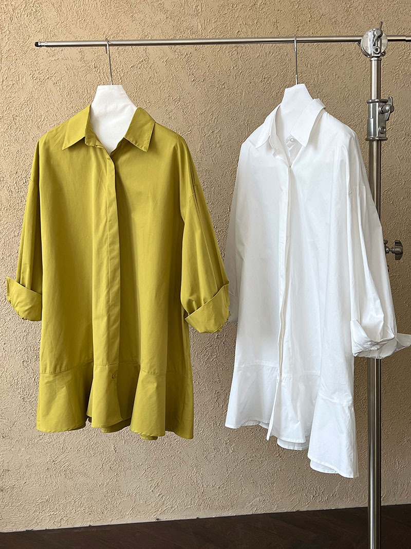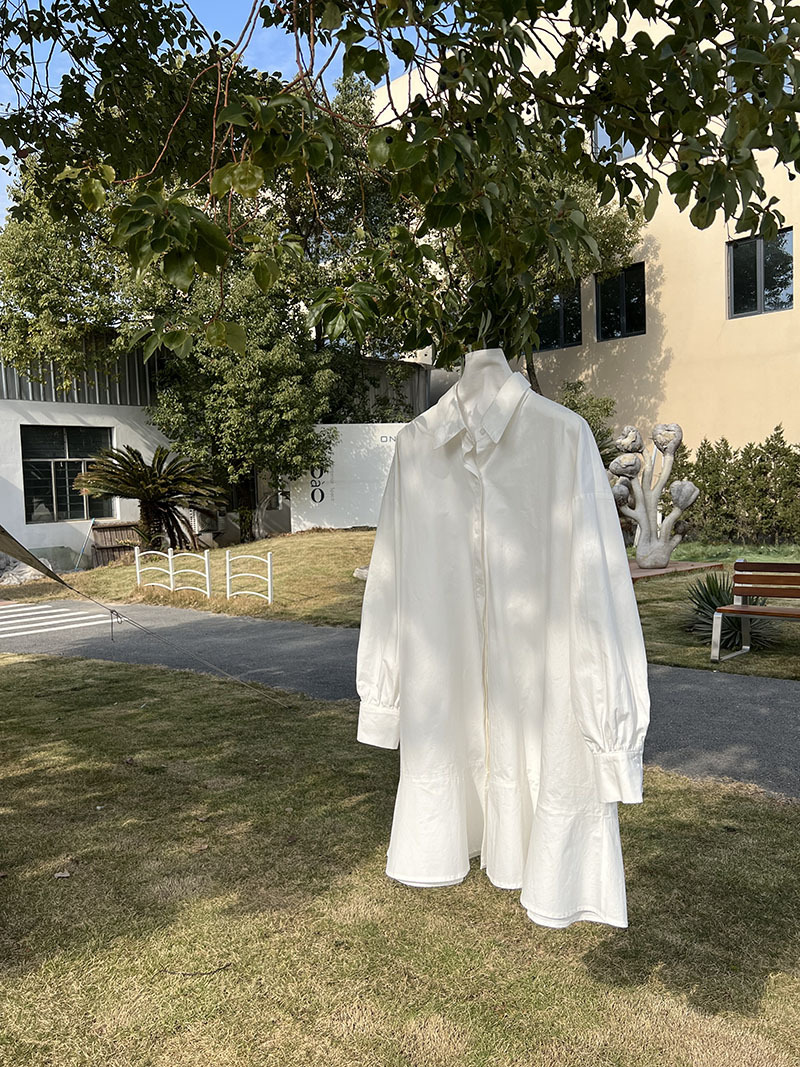 【ワンピース】春秋 ゆるリラックス シャツ 長袖 フィッシュテイルワンピース 【SNシリーズ】