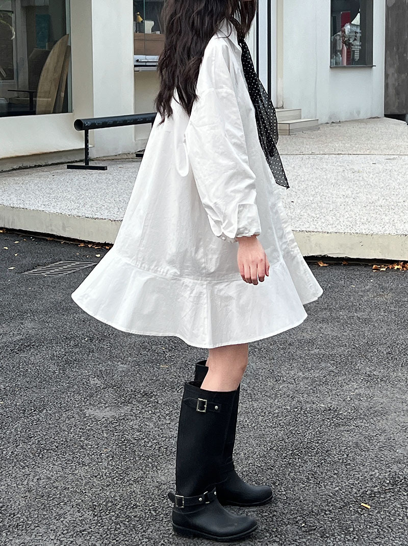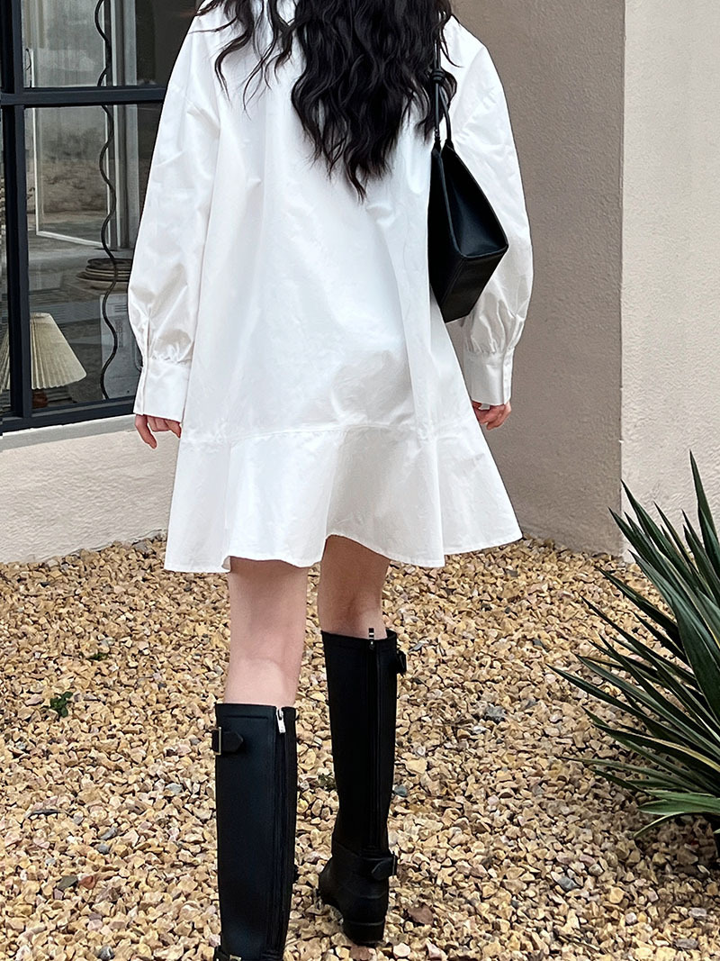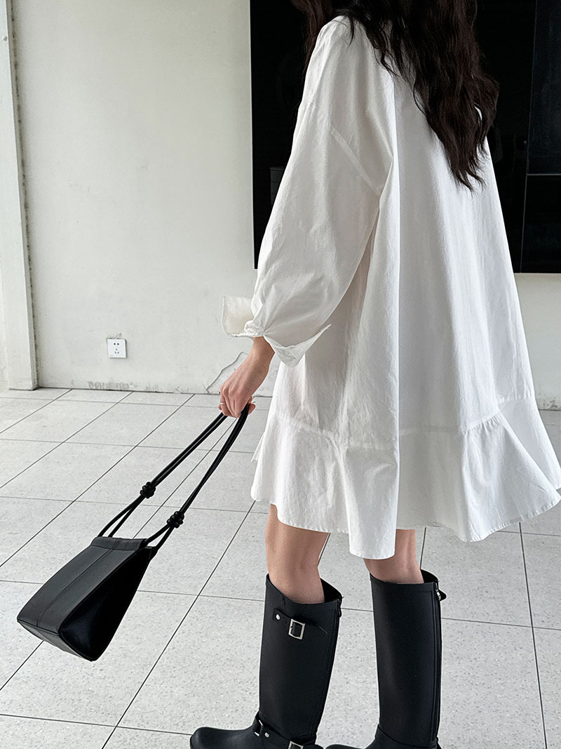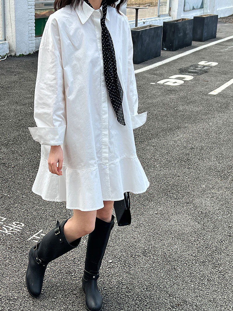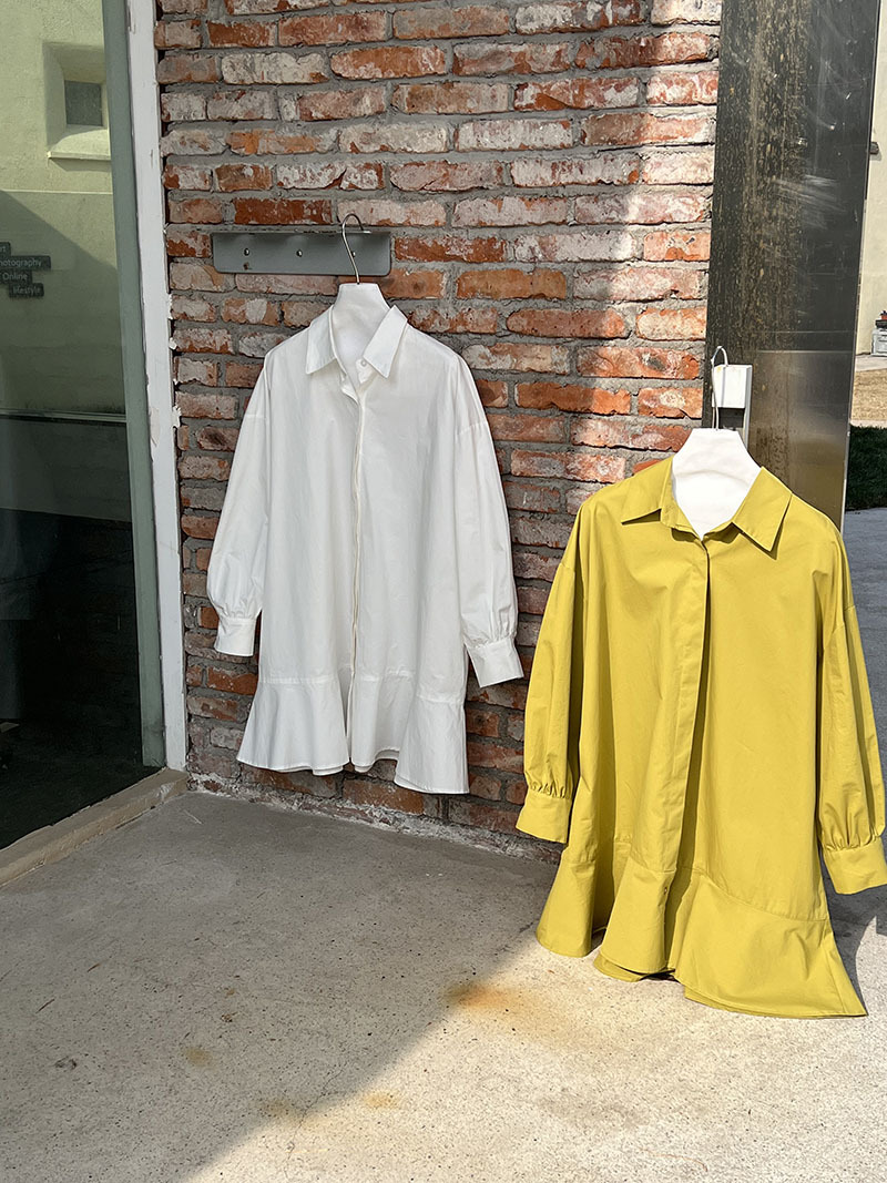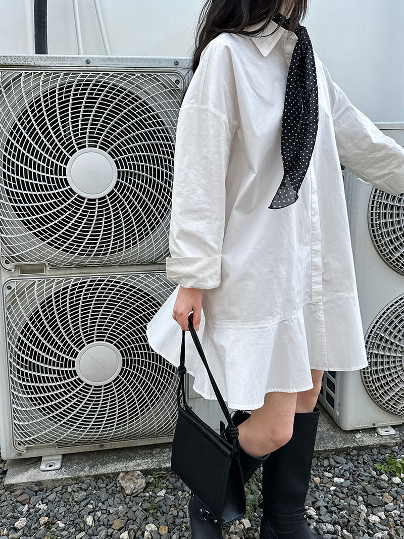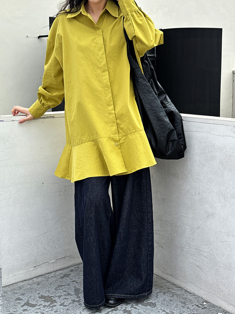 【ワンピース】春秋 ゆるリラックス シャツ 長袖 フィッシュテイルワンピース 【SNシリーズ】