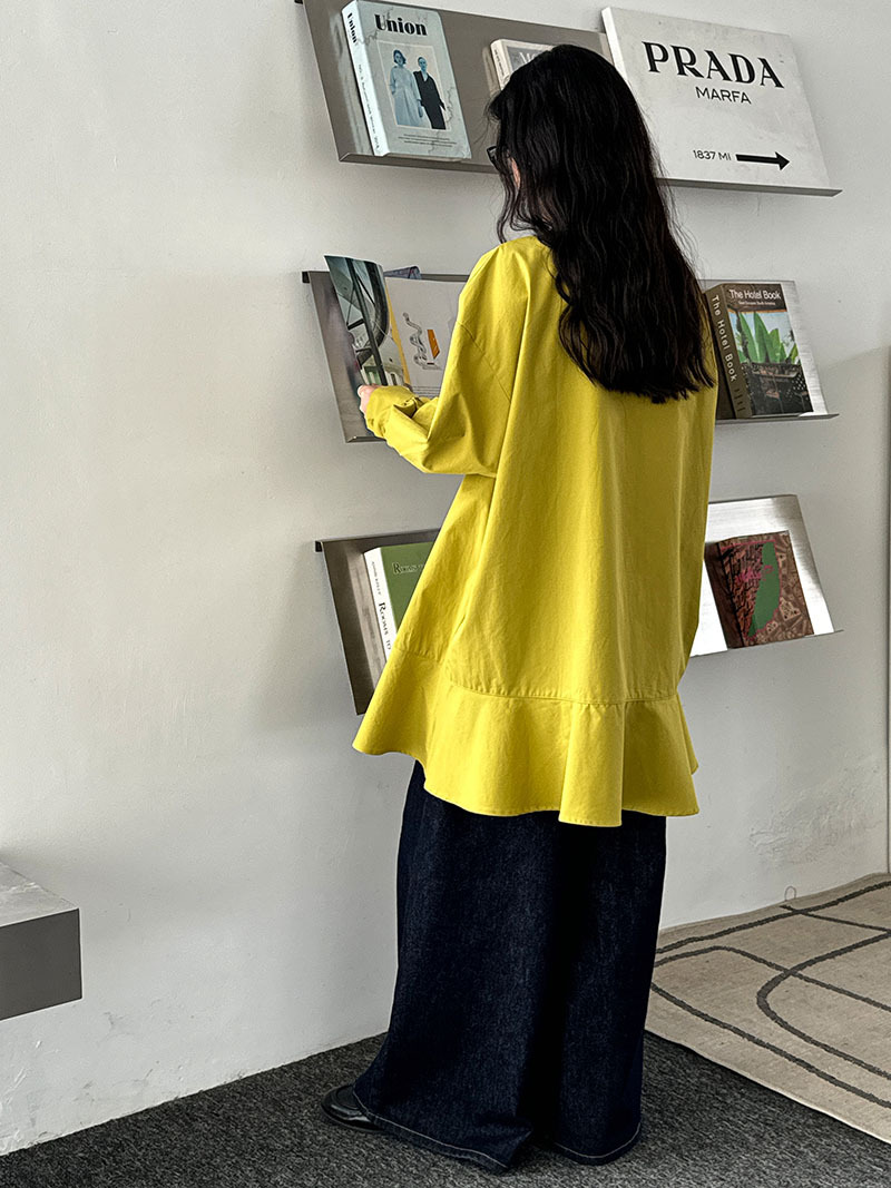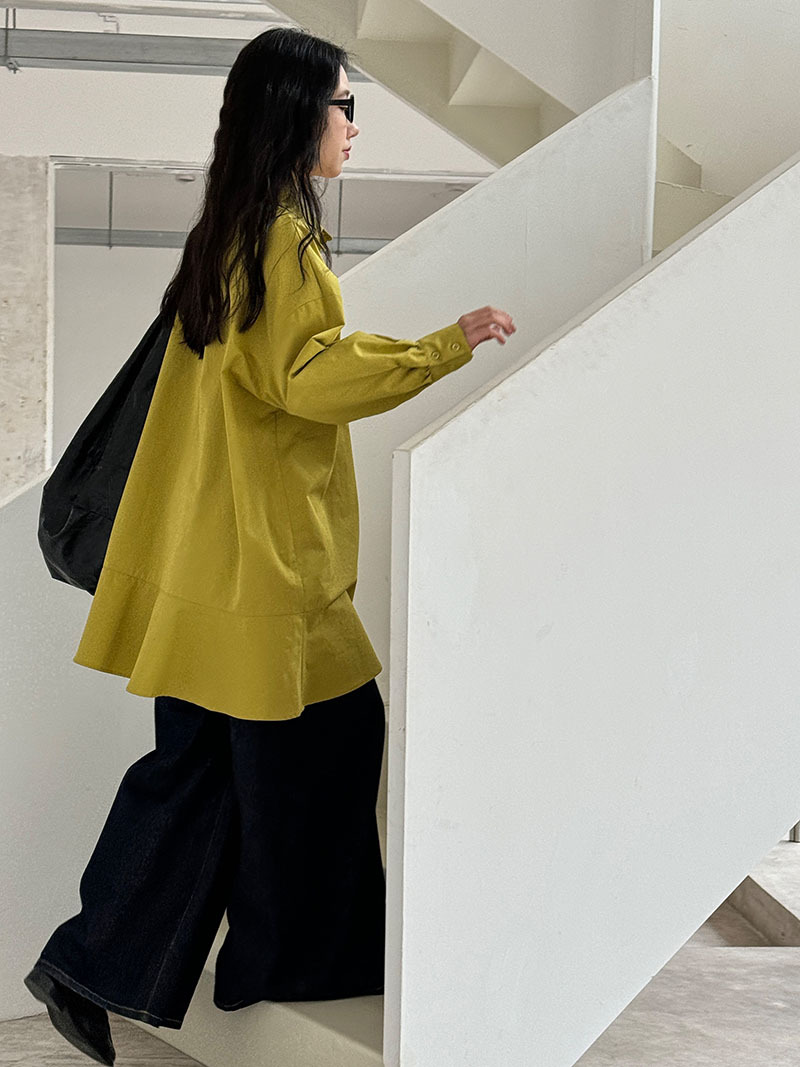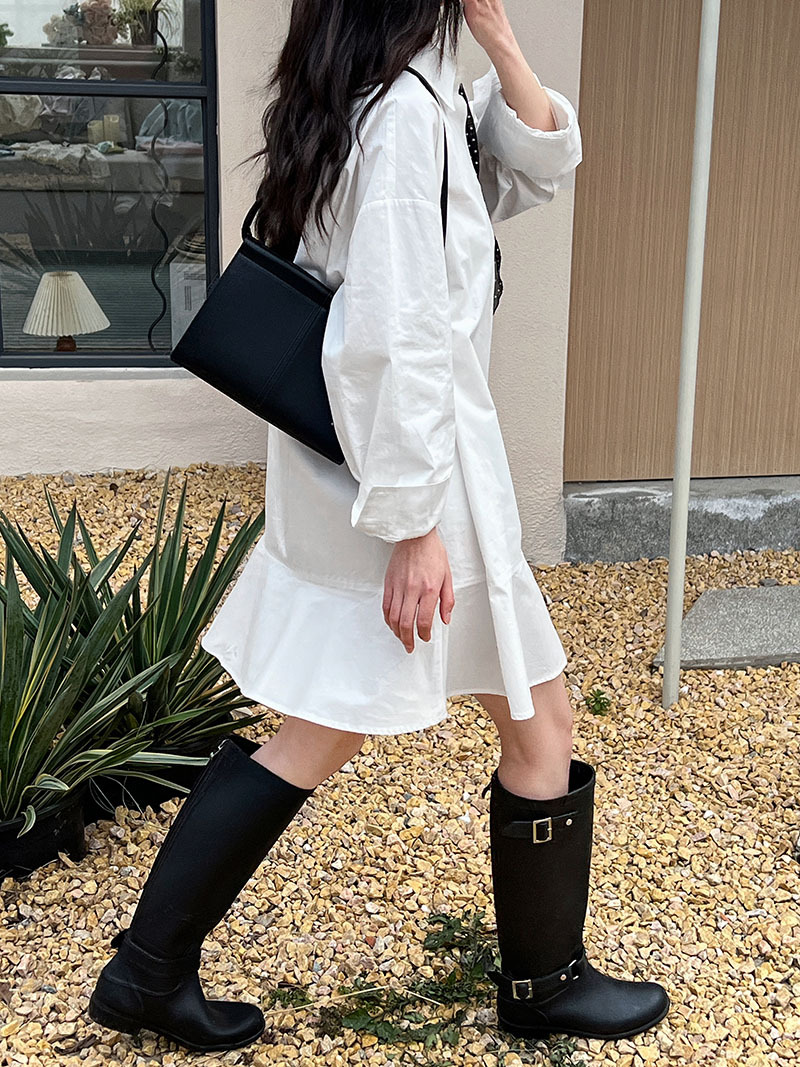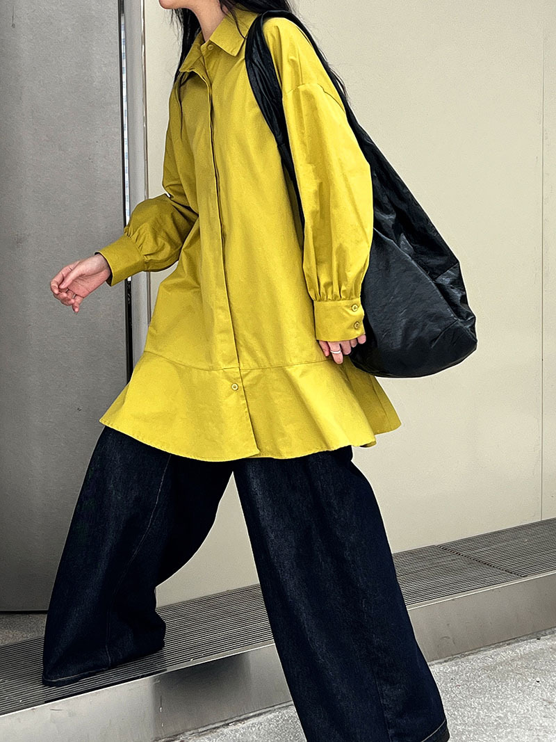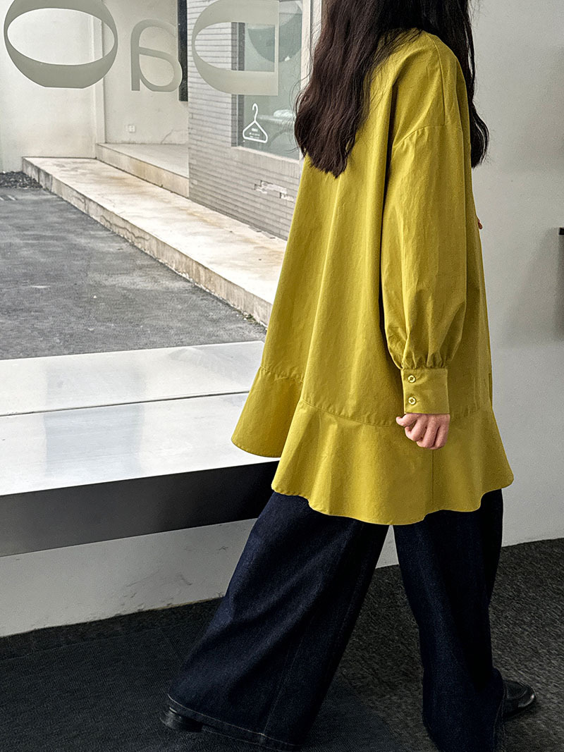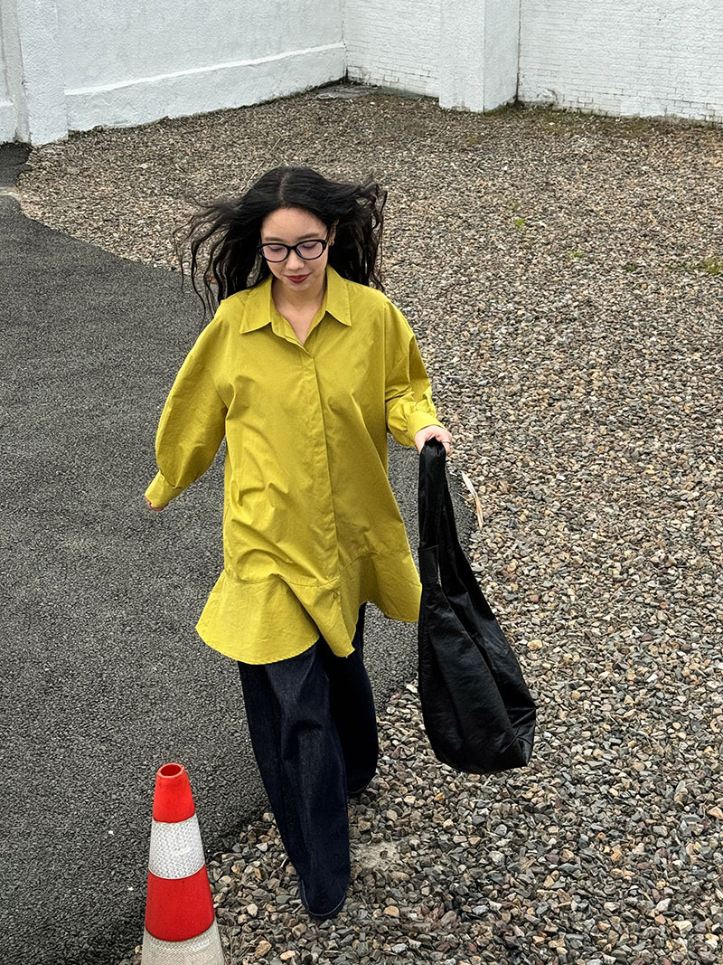 【ワンピース】春秋 ゆるリラックス シャツ 長袖 フィッシュテイルワンピース 【SNシリーズ】