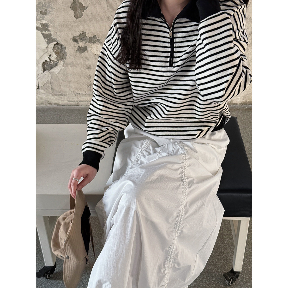パーカー:【トップス】韓国風 高級感 配色 しま模様 パーカー【SNシリーズ】