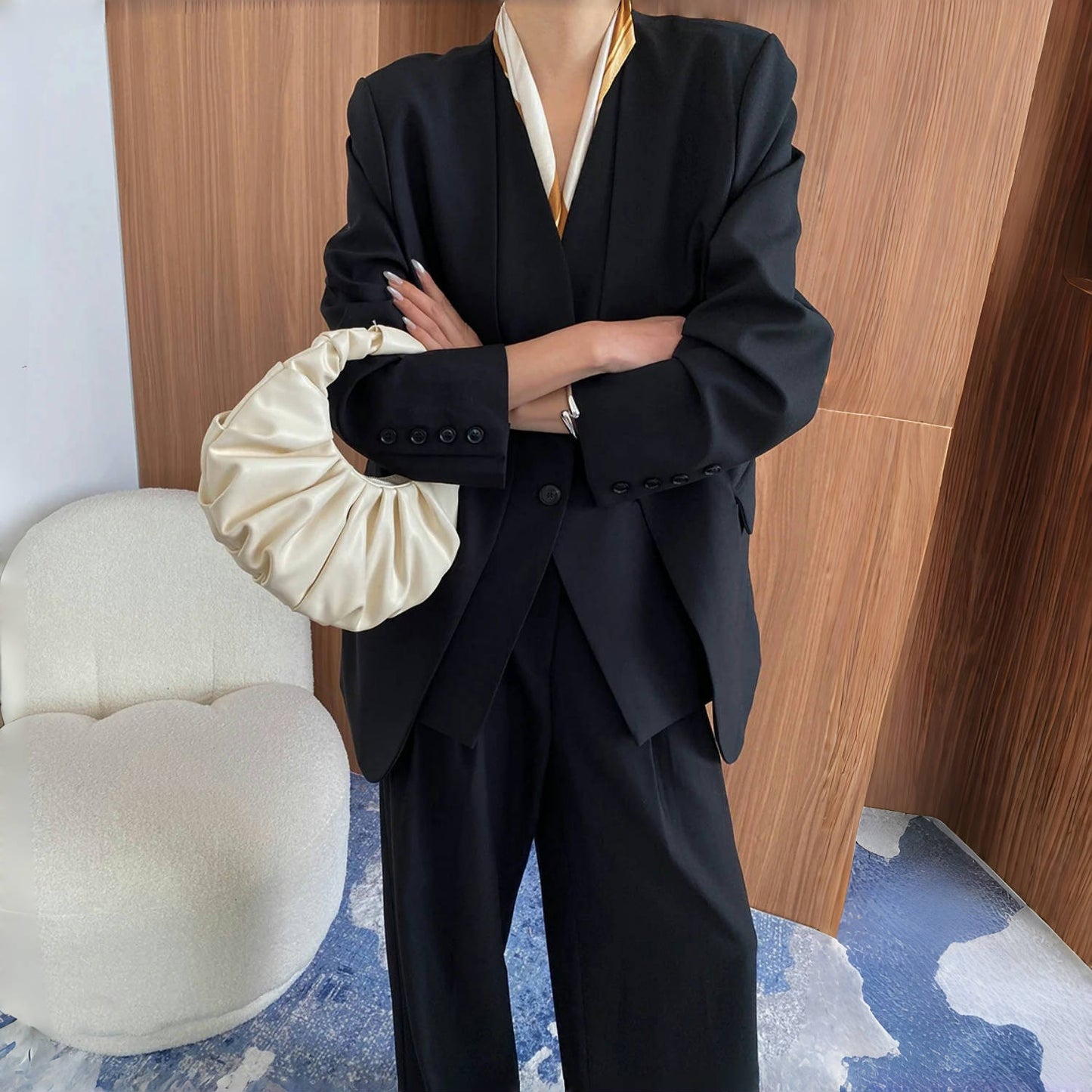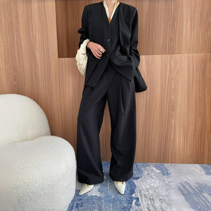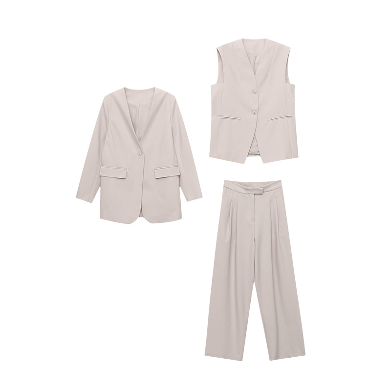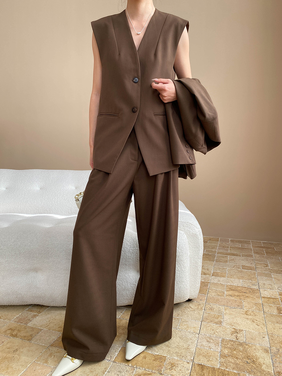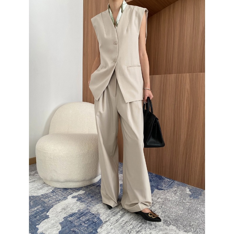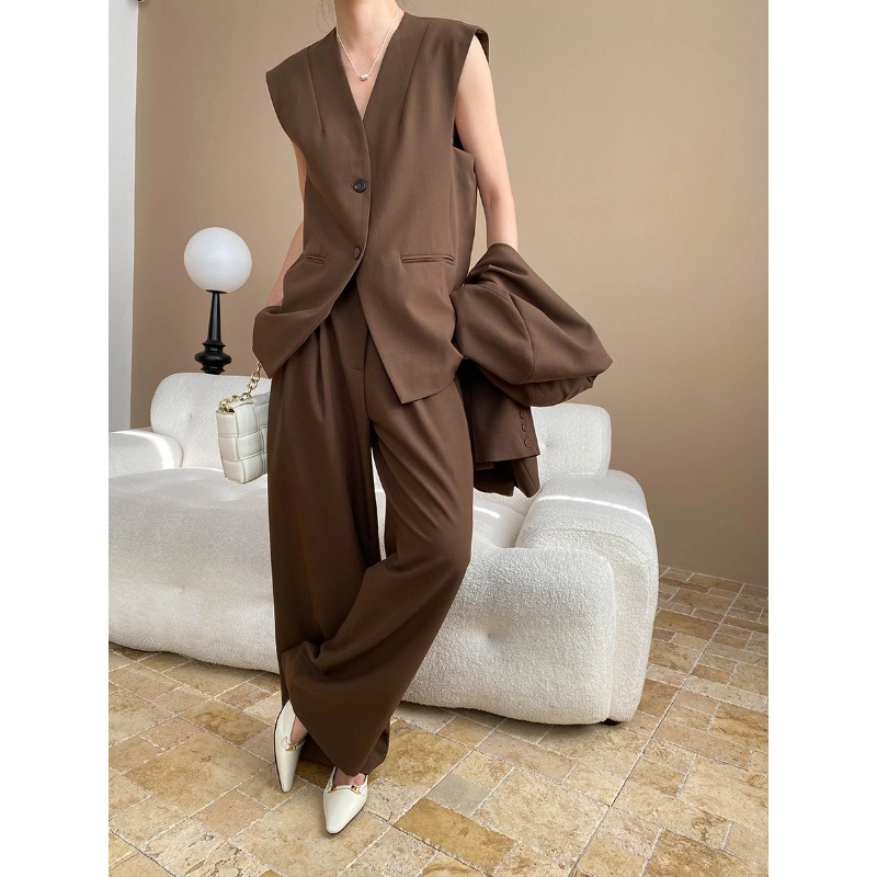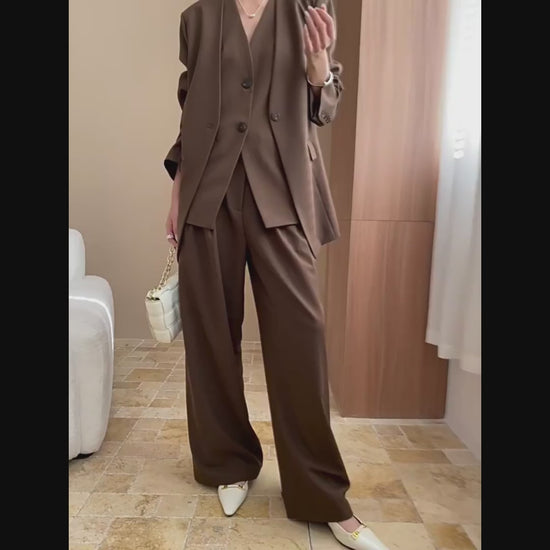 【単品注文】【セットアップ】春秋 高級感 通勤 スーツジャケット+ベスト+ワイドパンツ 3点上下セット