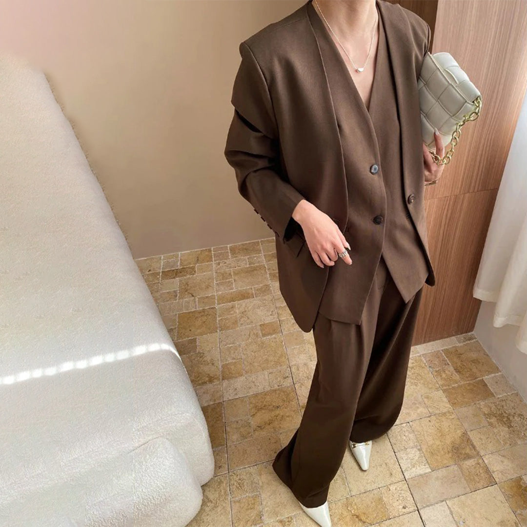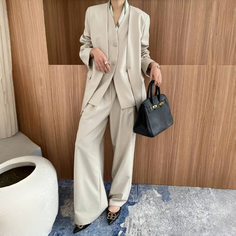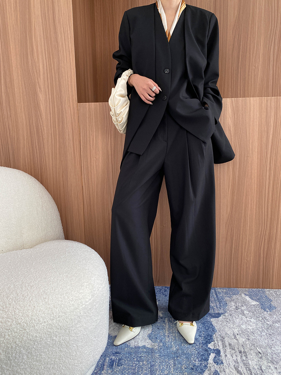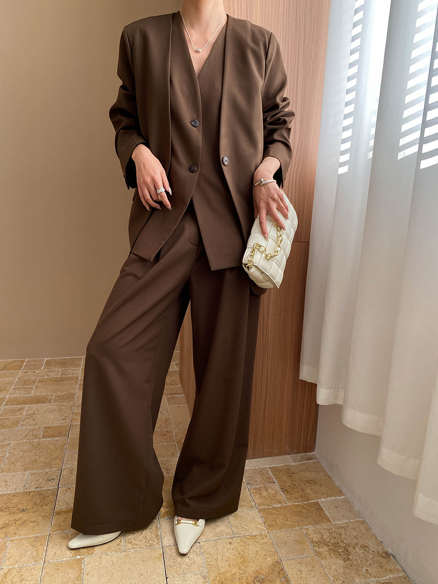 【商品名】【ボトムス】高級感 通勤 スーツジャケット+ベスト+ワイドパンツ 3点セット