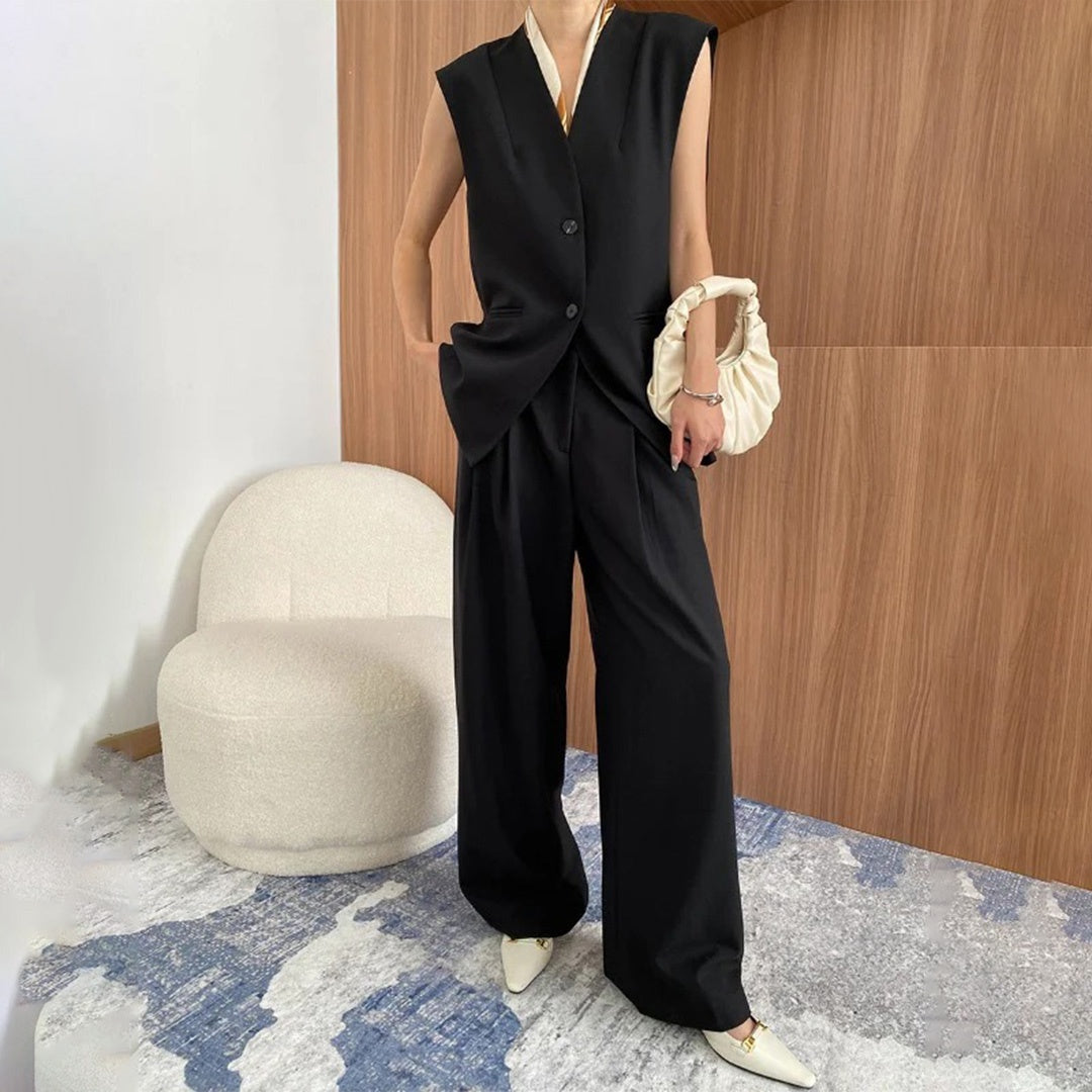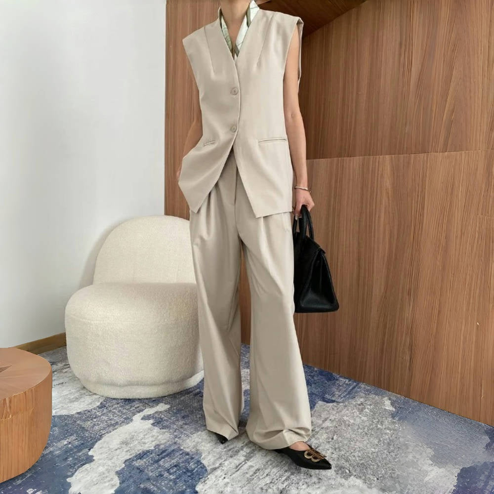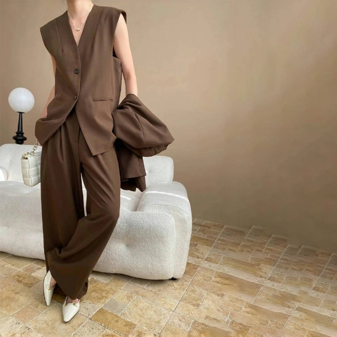 【商品名】【ボトムス】高級感 通勤 スーツジャケット+ベスト+ワイドパンツ 3点セット