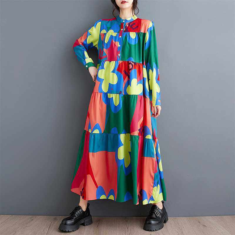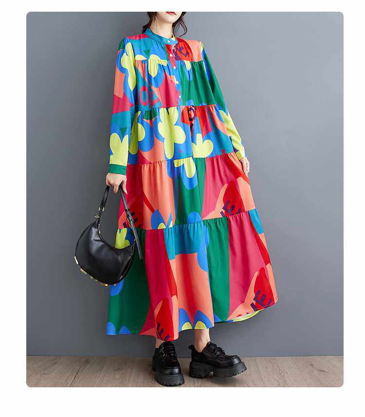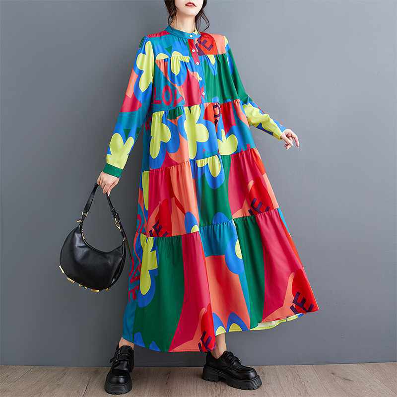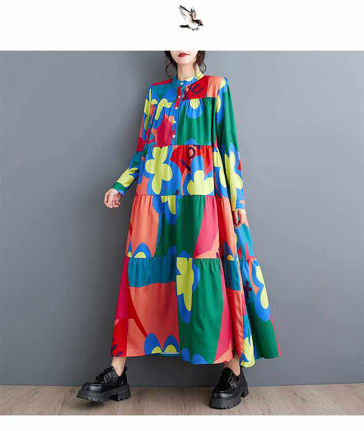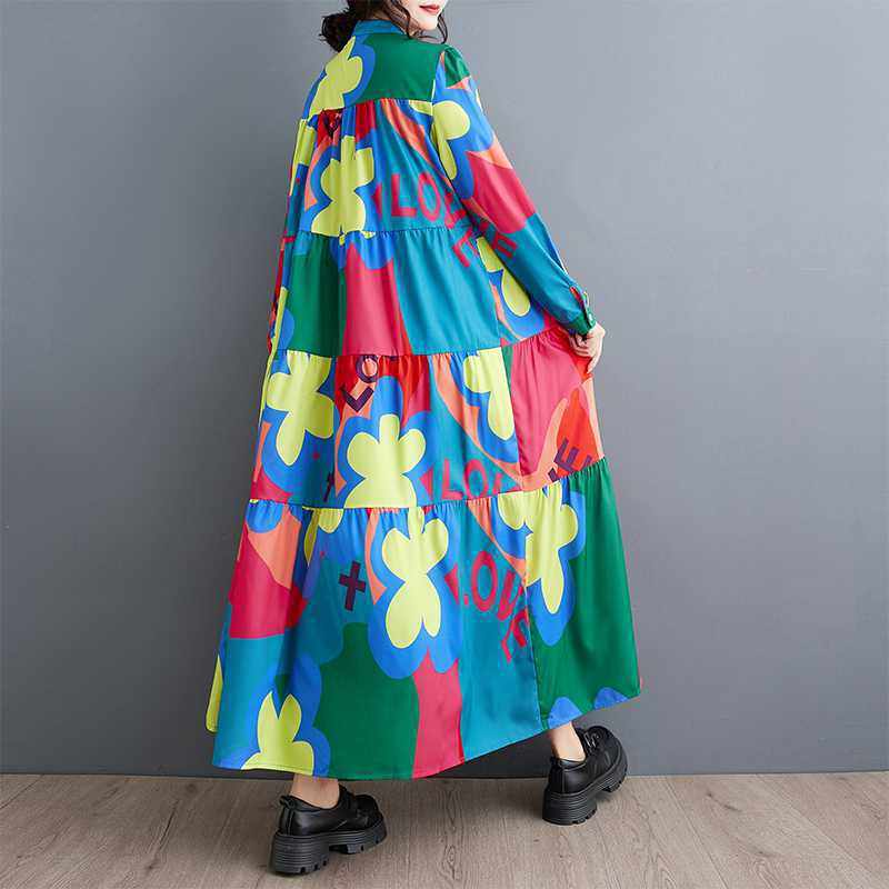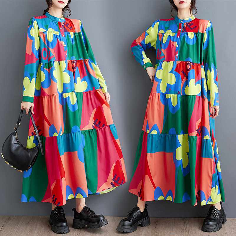 3/20~3/22☀️60%OFF【ワンピース】春秋冬 ゆるリラックス プリント 長袖 ワンピース 【SHシリーズ】