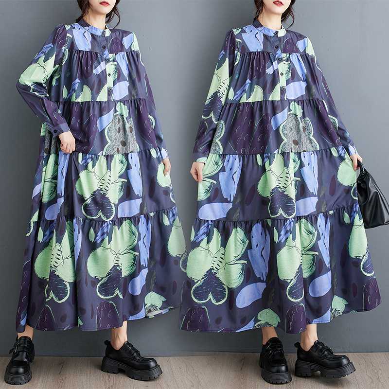 【ワンピース】春秋冬 プリント 花柄 ゆるリラックス 長袖 ワンピース【SHシリーズ】