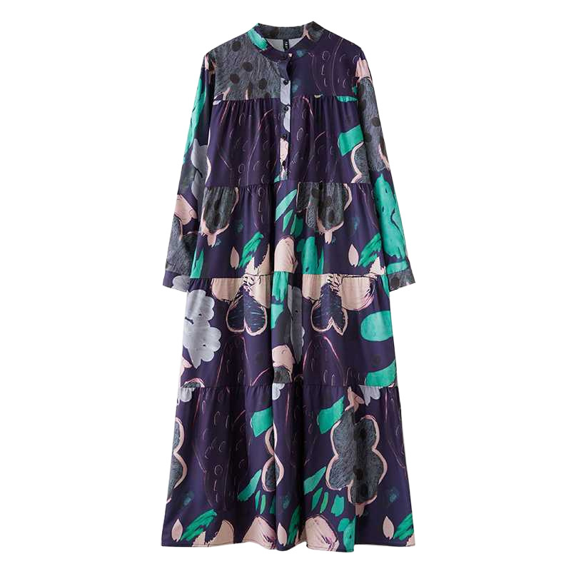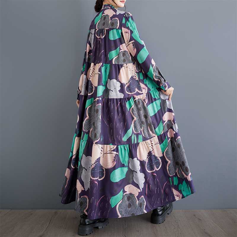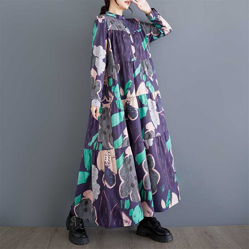 【商品名】【ワンピース】韓国風 ゆったり プラスサイズ プリント 長袖ワンピース
