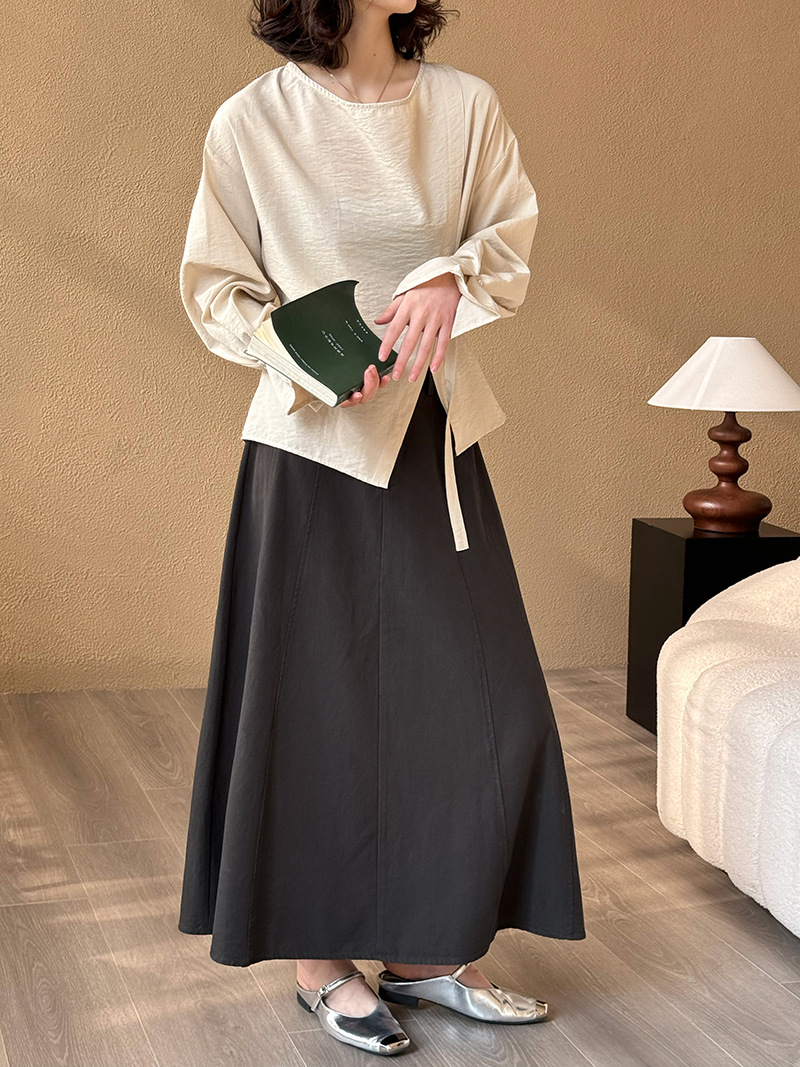 【ワンピース】ドローストリング付き ゆったりとした 春 秋 冬 切り替え 長袖 ワンピース 【AHシリーズ】