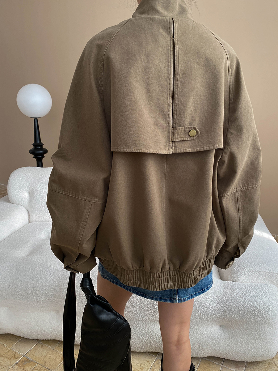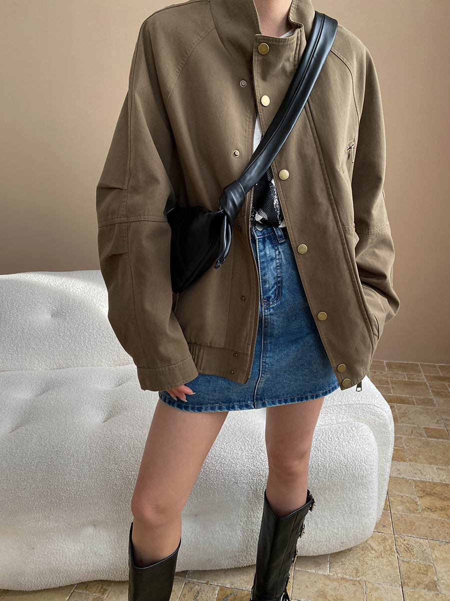 【商品名】【アウター】ヴィンテージ デザイン ポケット付き スタンドカラー ジャケット【SNシリーズ】