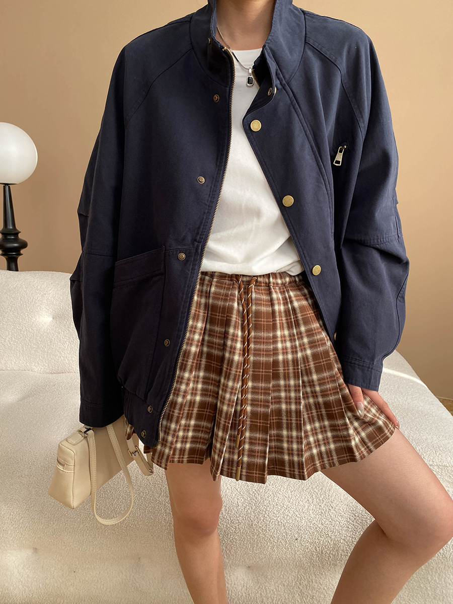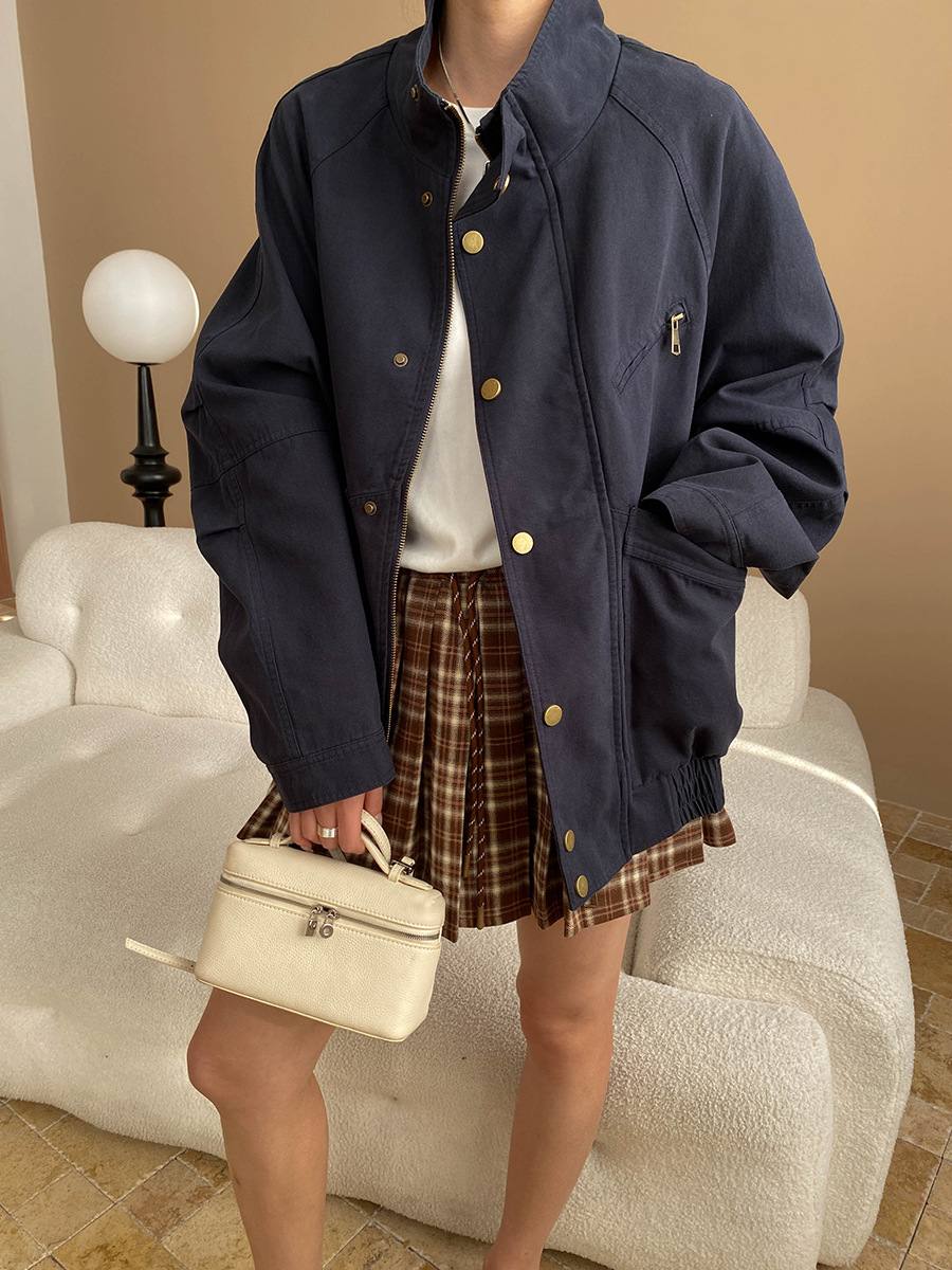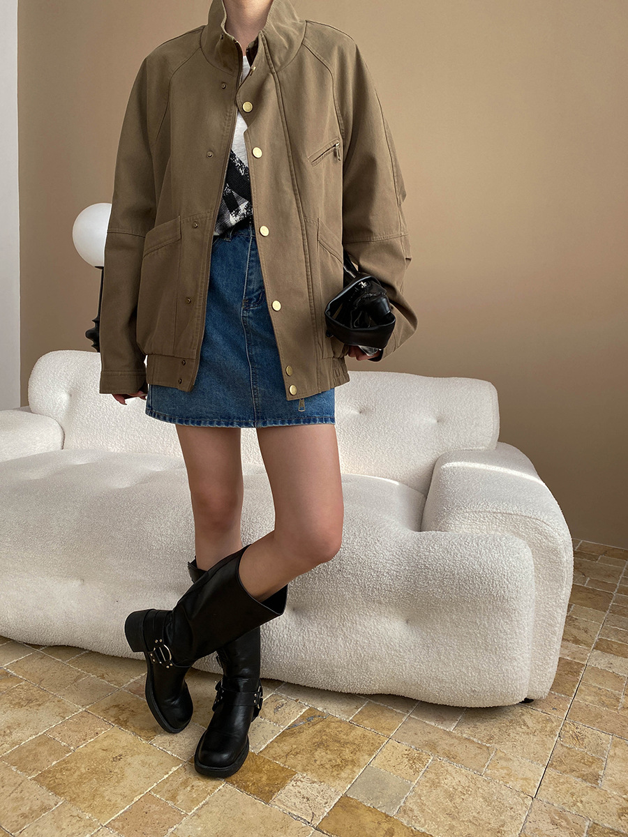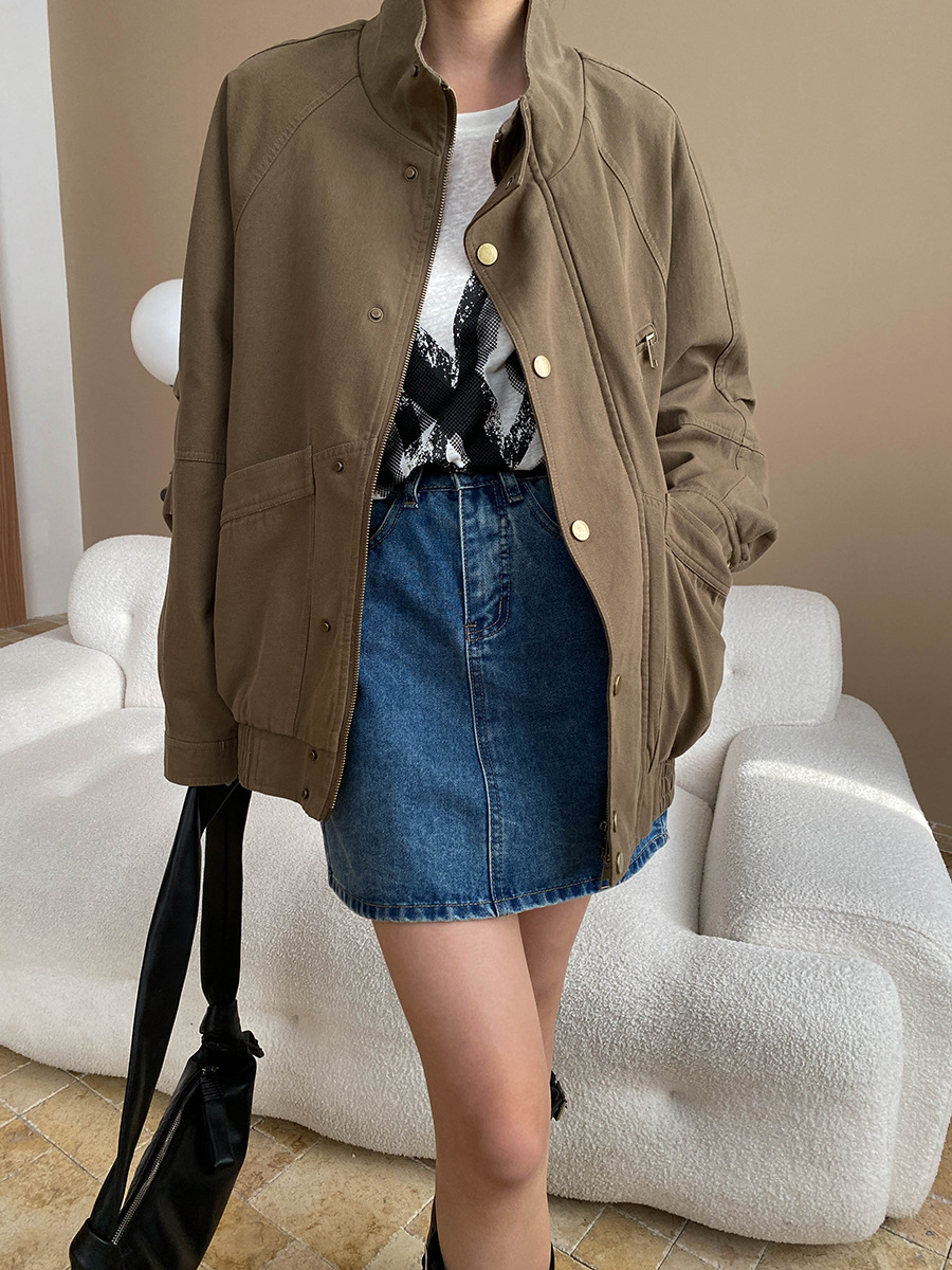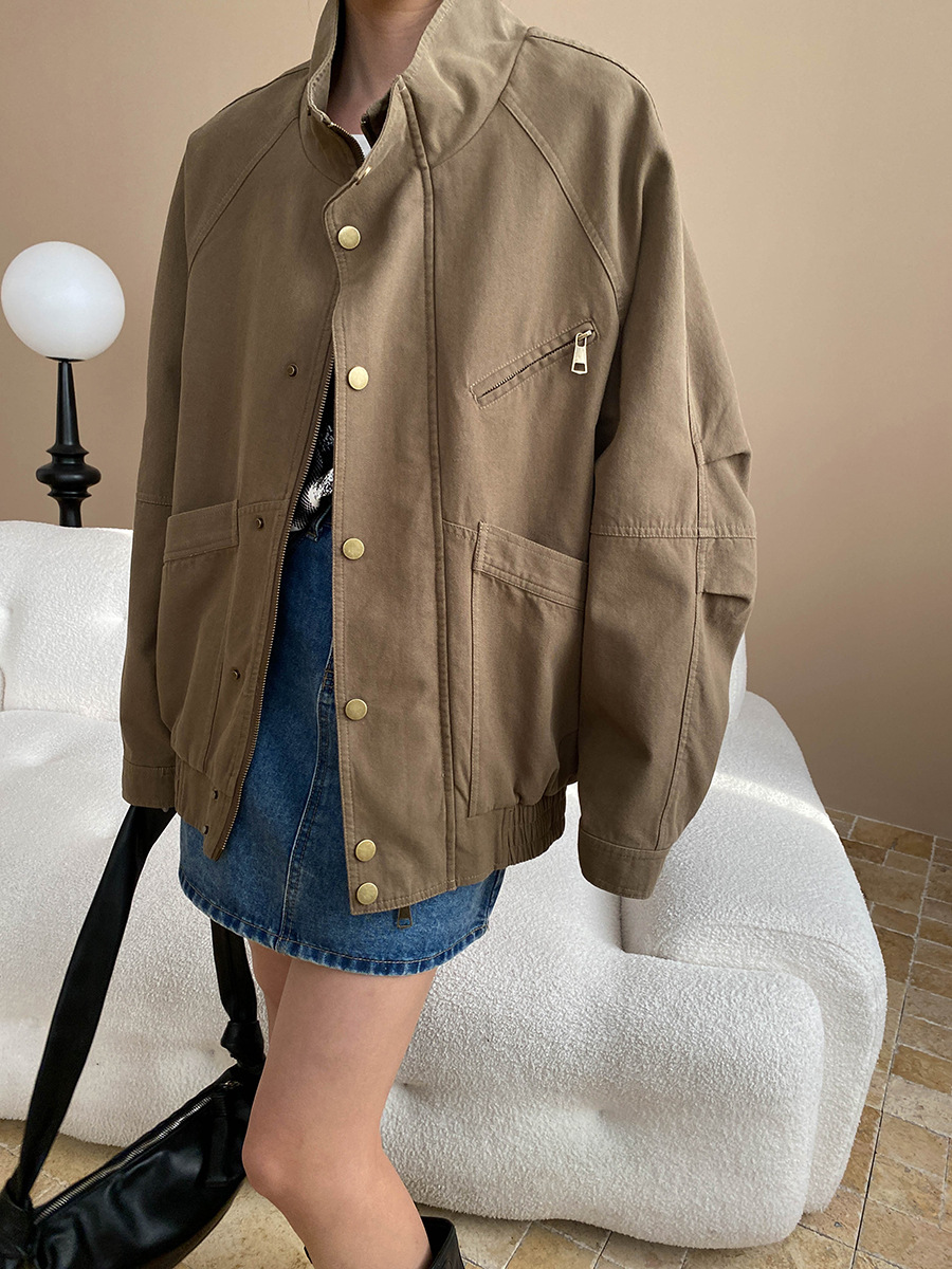 【アウター】ヴィンテージ デザイン 春秋 ポケット付き スタンドカラー ジャケット【JZシリーズ】