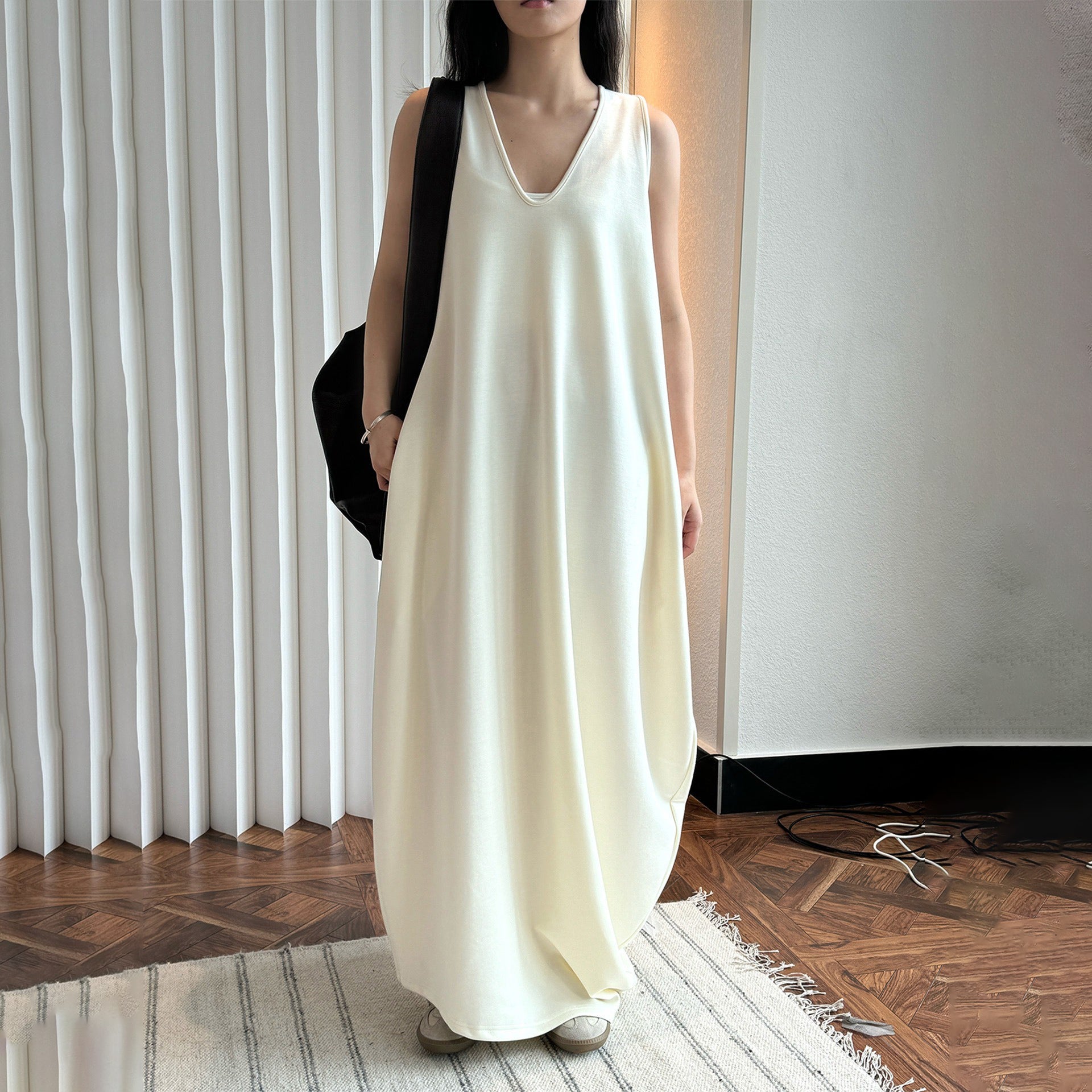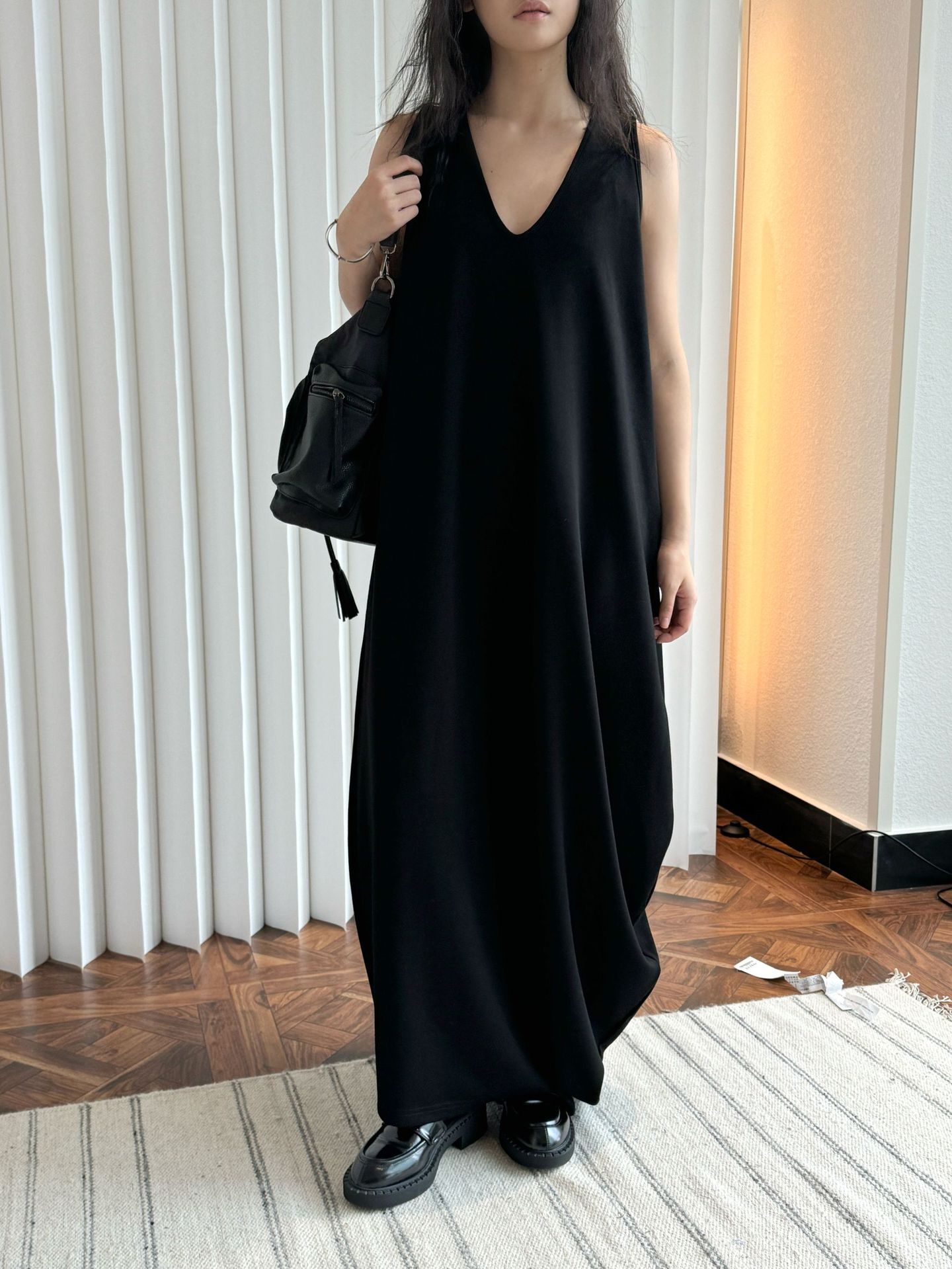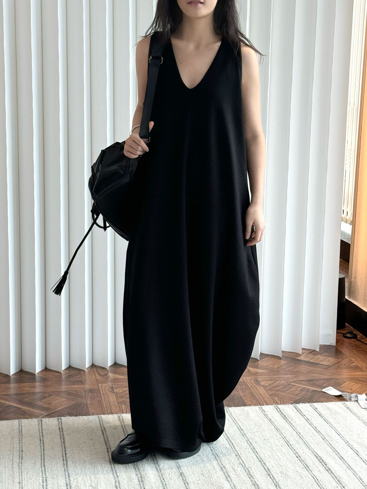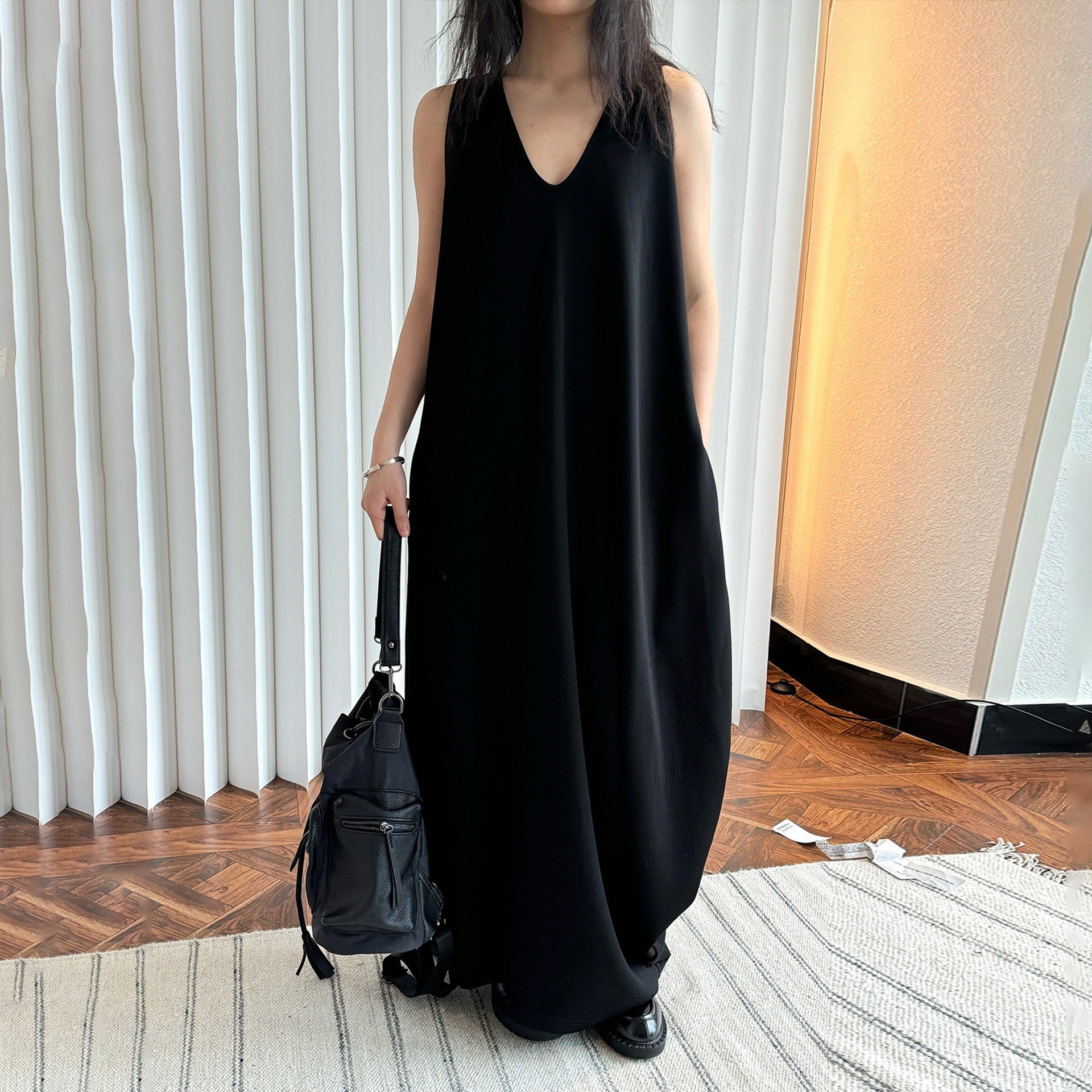 【ワンピース】夏 フレンチ ディープUネック アシンメトリー スリム バロン ノースリーブワンピース【JZシリーズ】