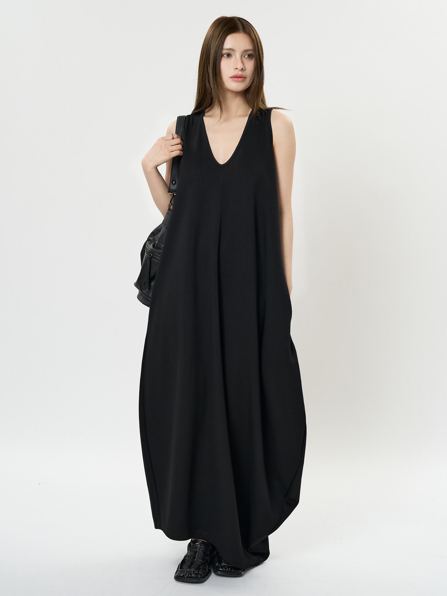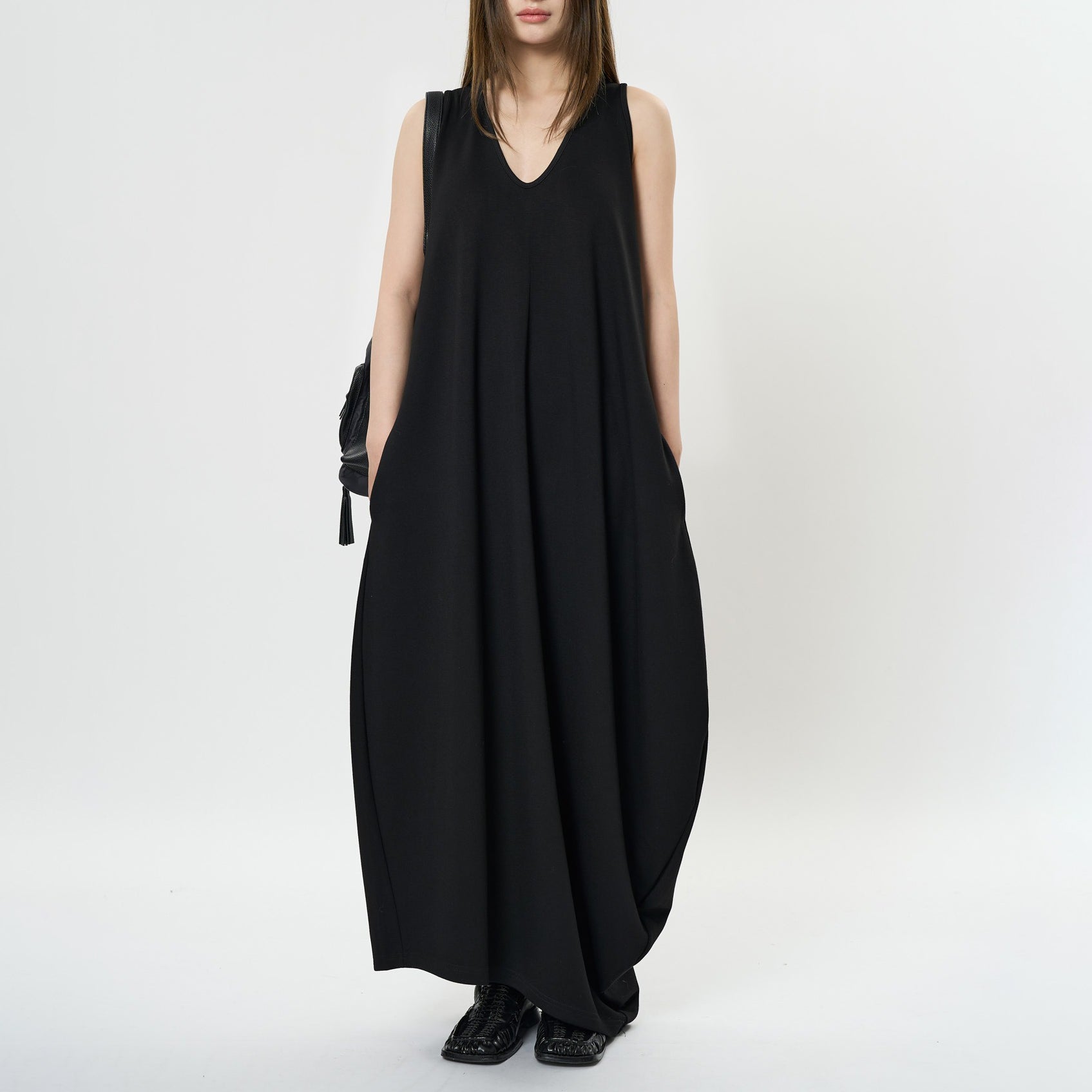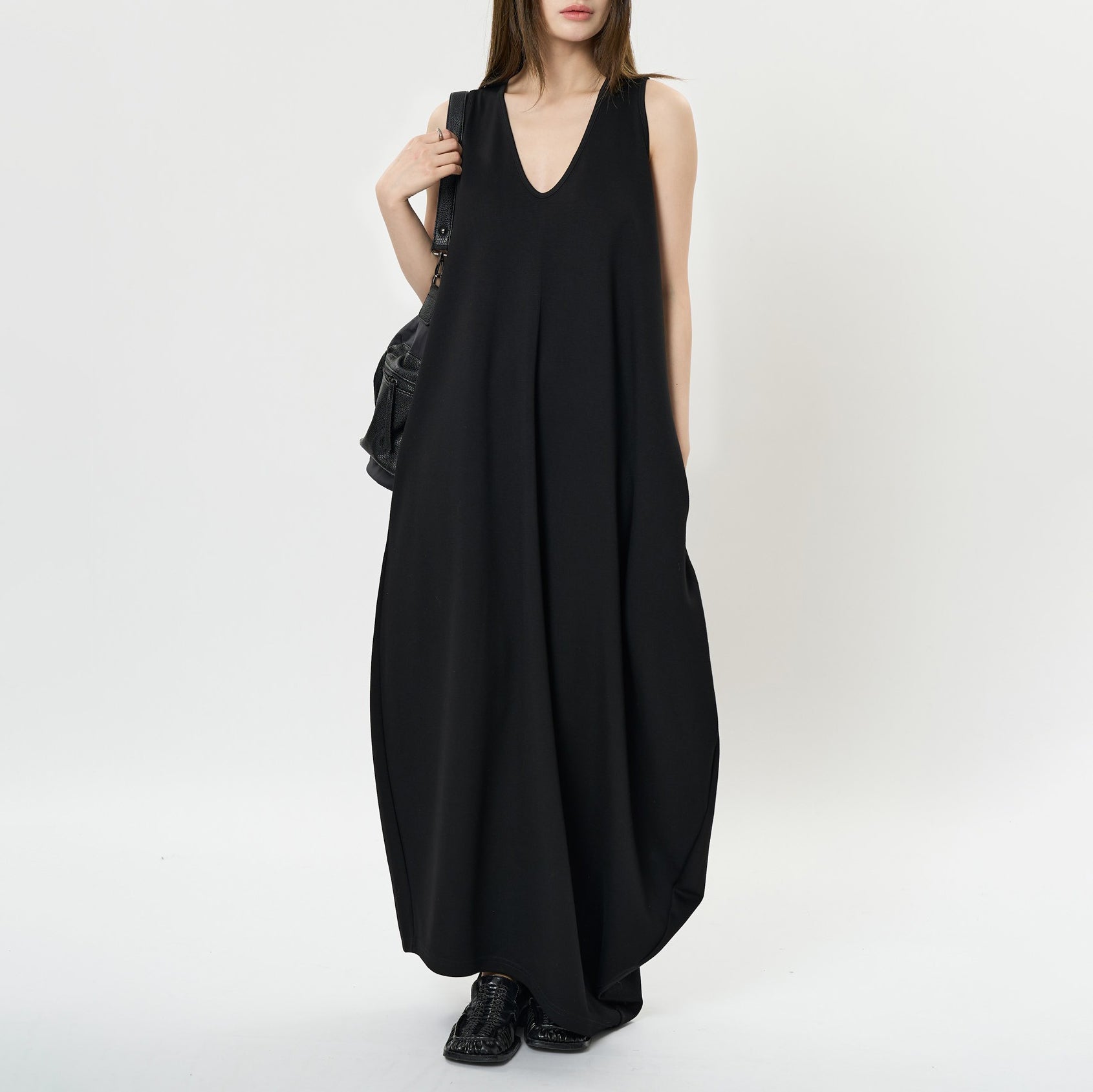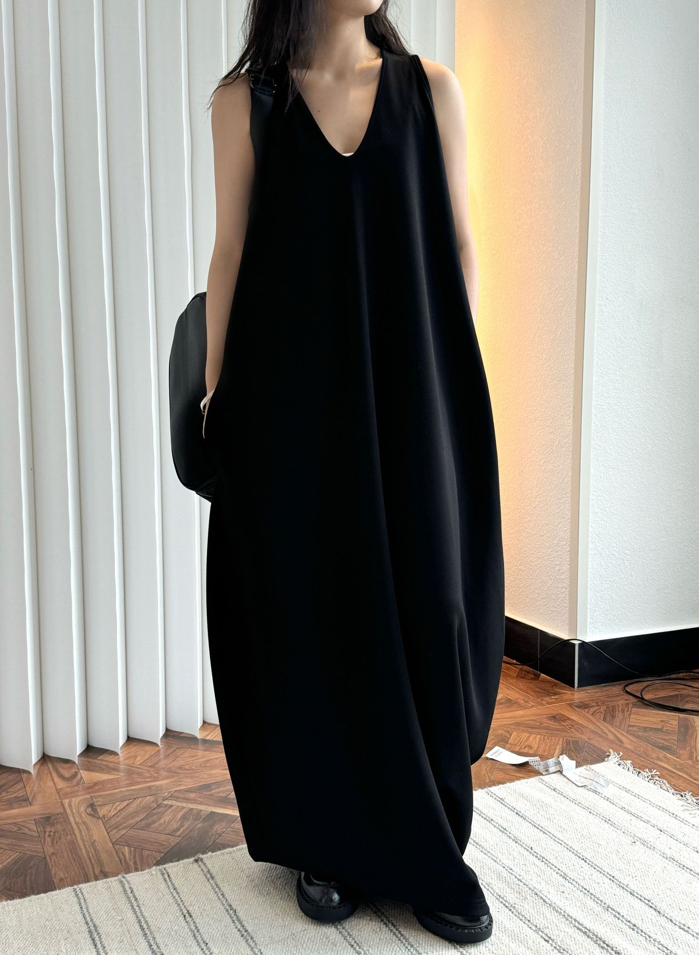 【ワンピース】夏 フレンチ ディープUネック アシンメトリー スリム バロン ノースリーブワンピース【JZシリーズ】
