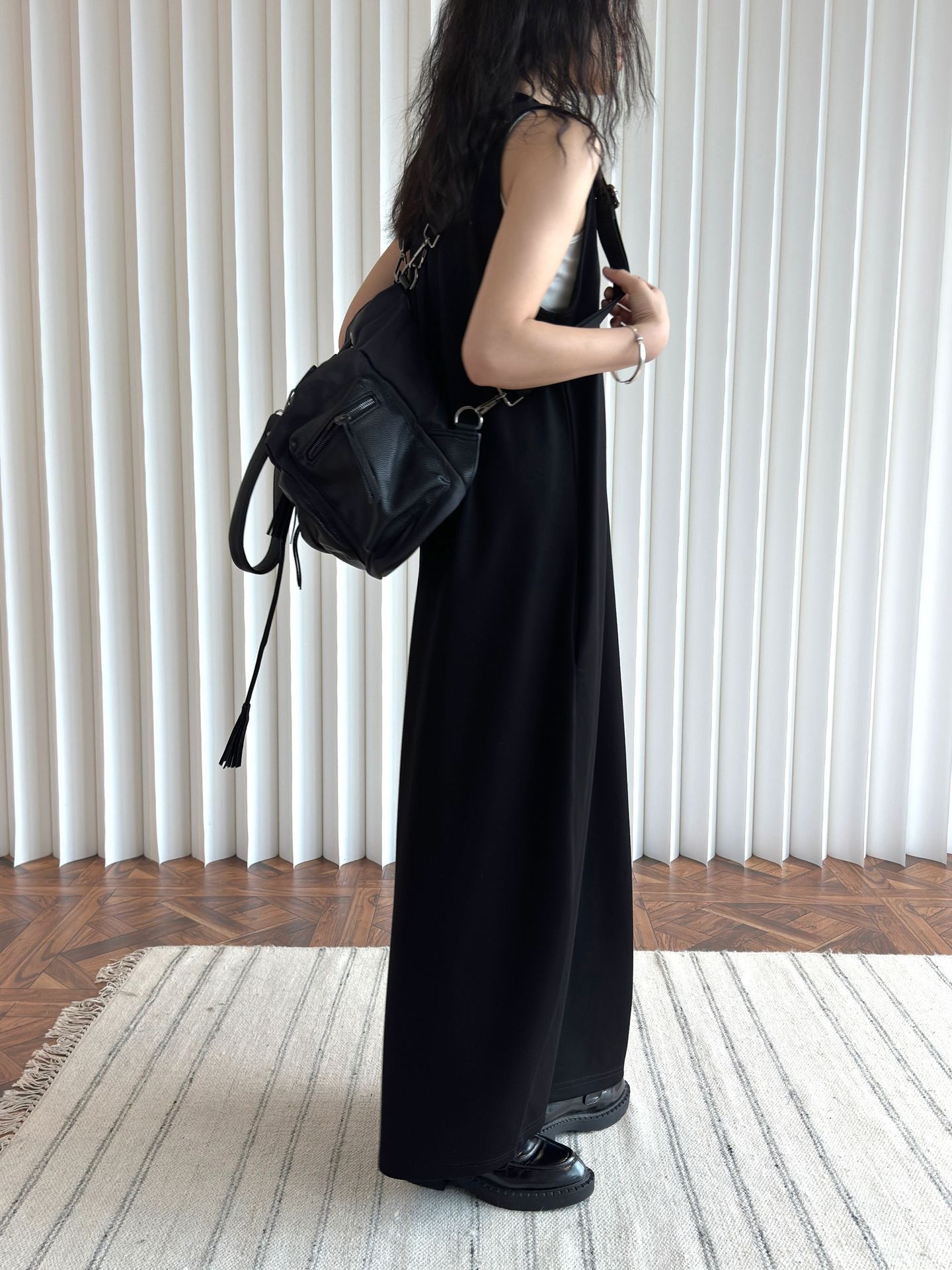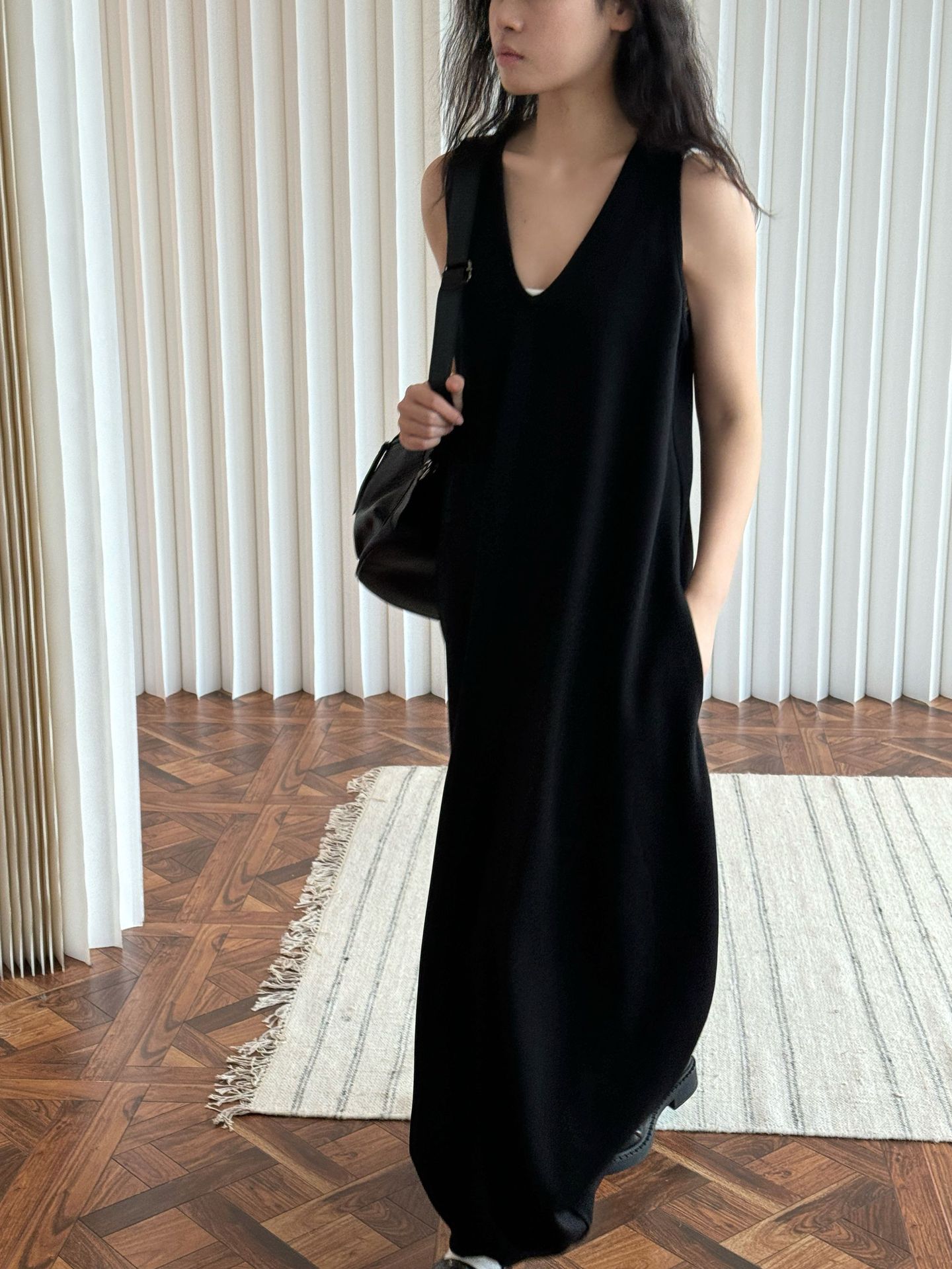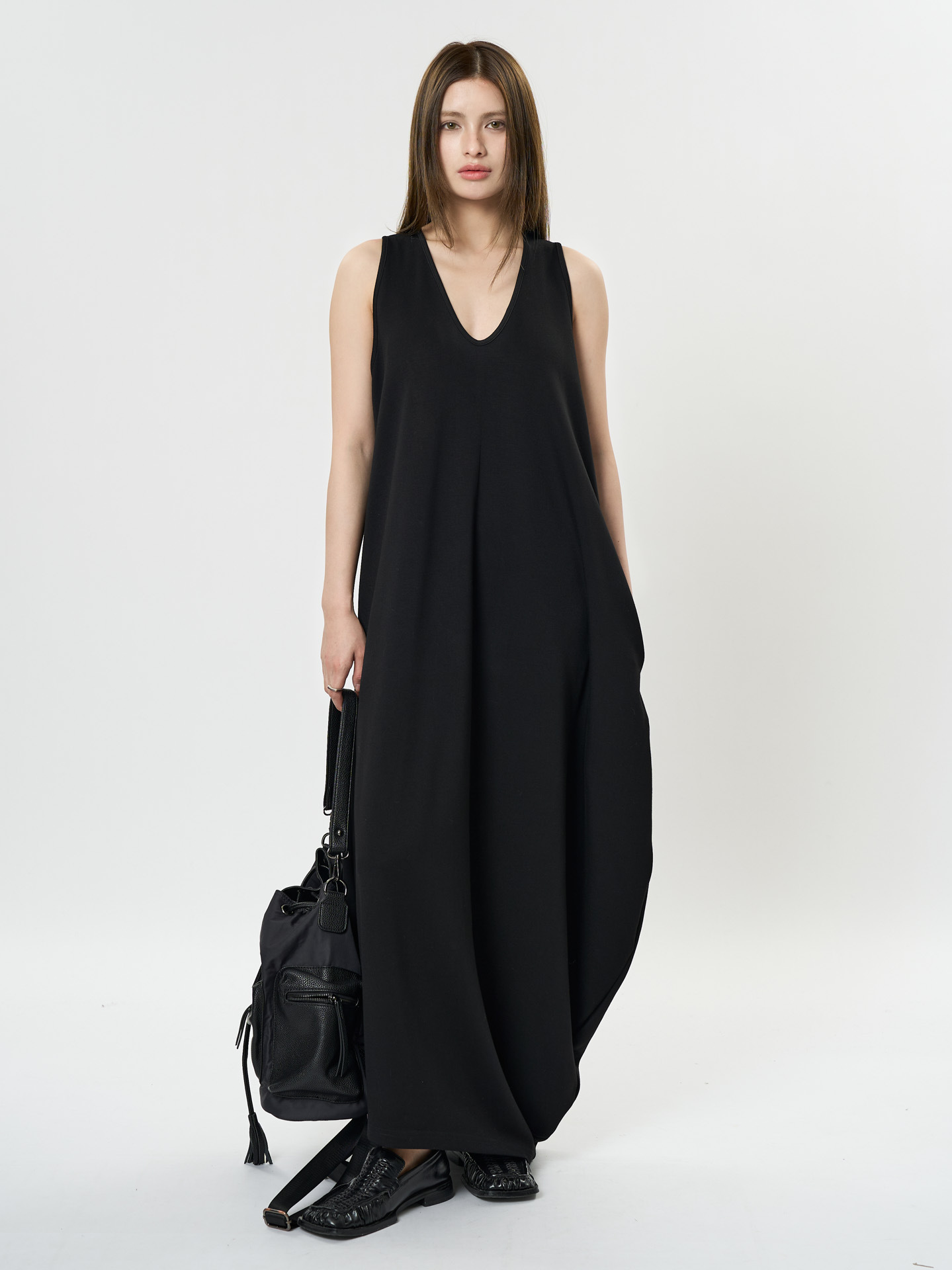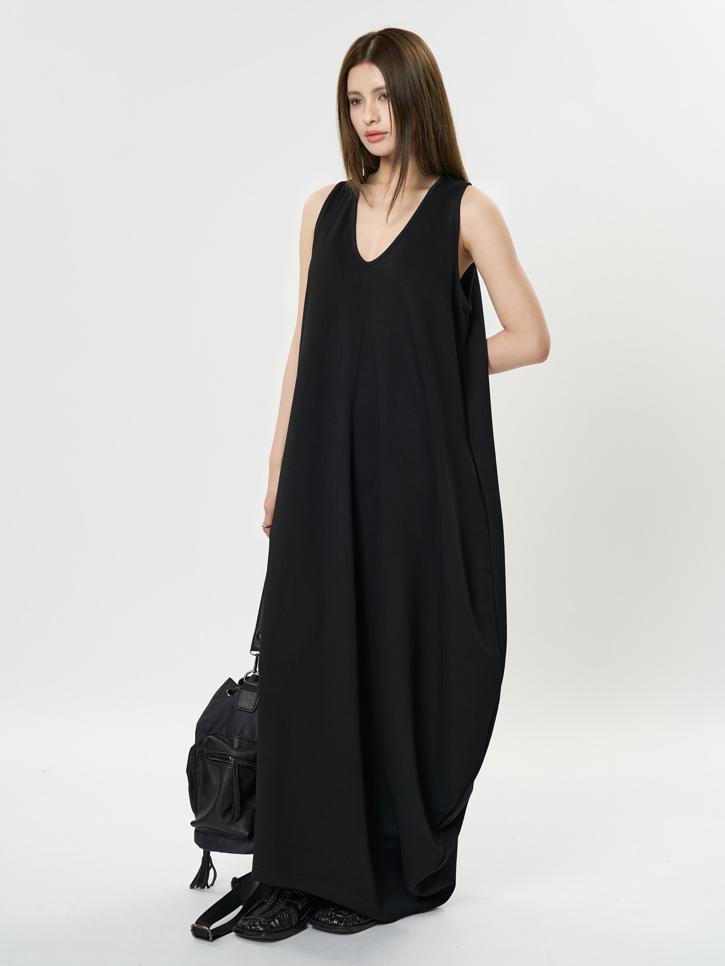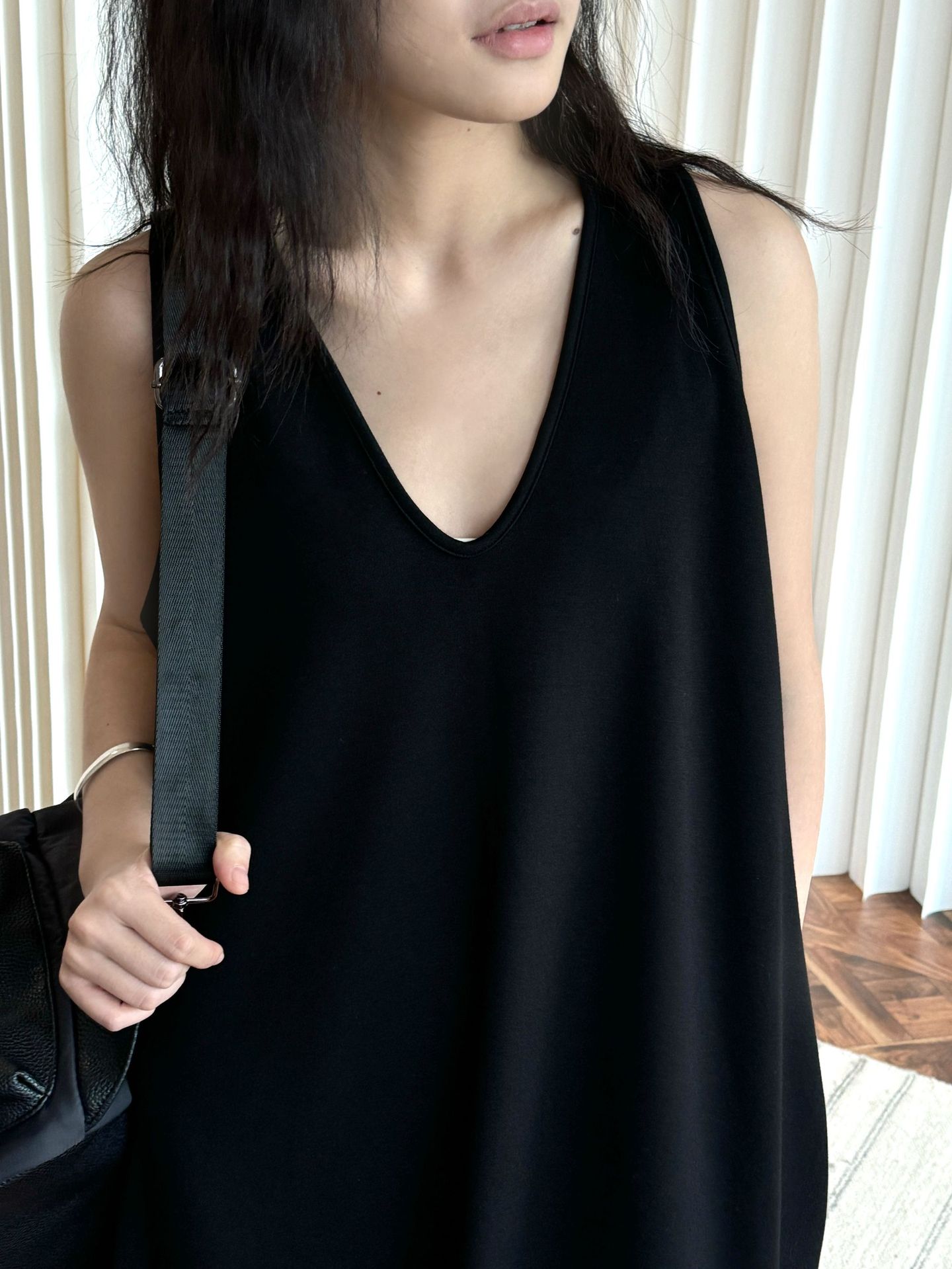【ワンピース】夏 フレンチ ディープUネック アシンメトリー スリム バロン ノースリーブワンピース【JZシリーズ】