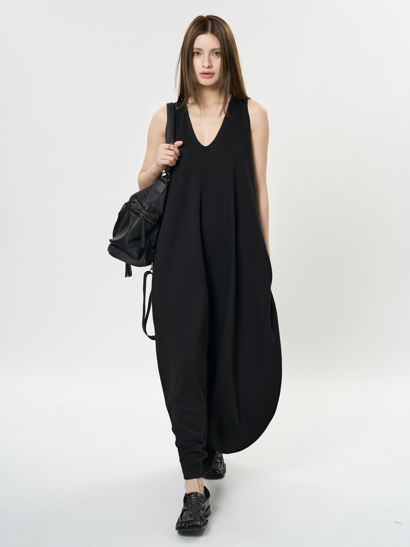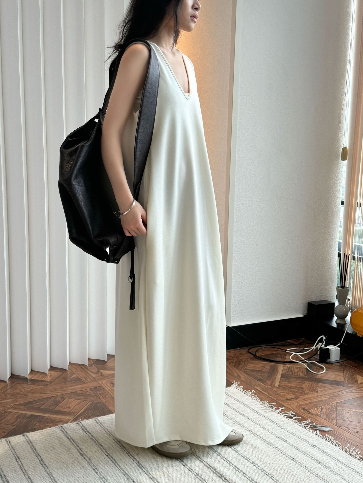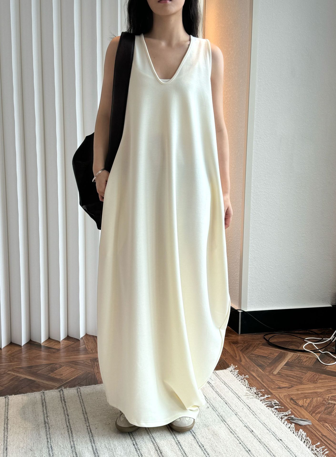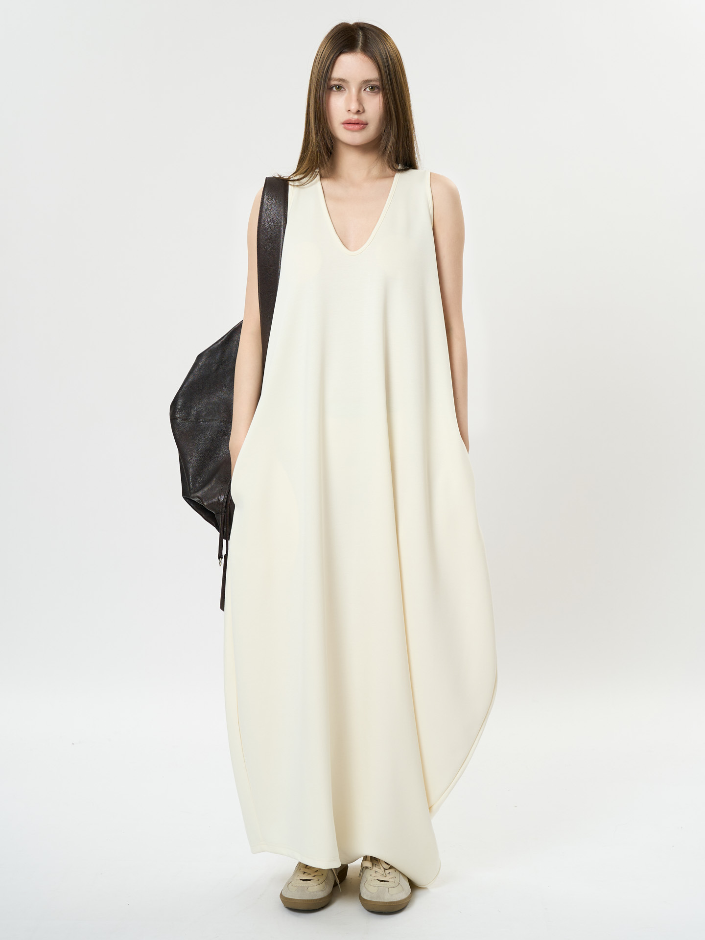 【ワンピース】夏 フレンチ ディープUネック アシンメトリー スリム バロン ノースリーブワンピース【JZシリーズ】