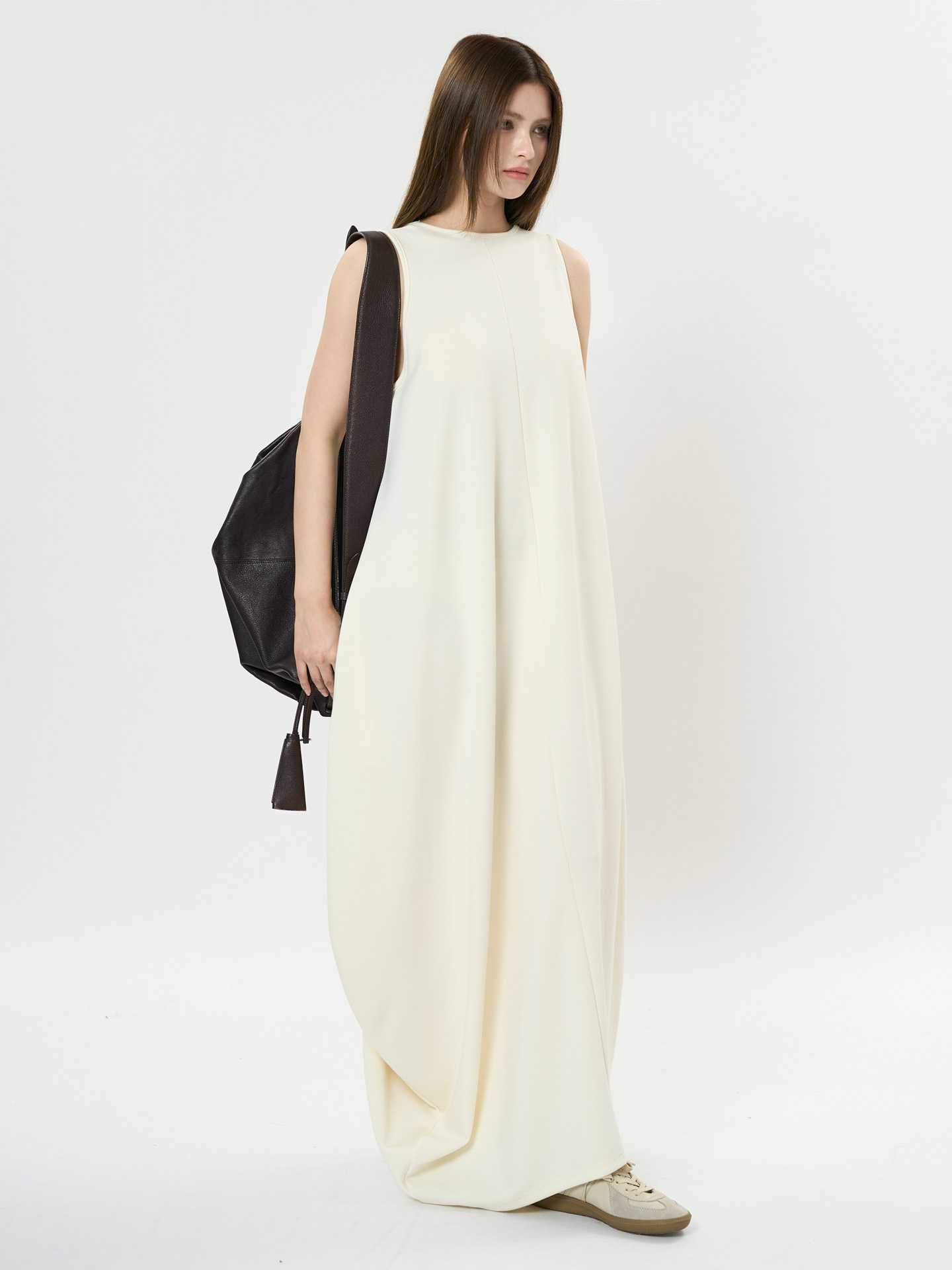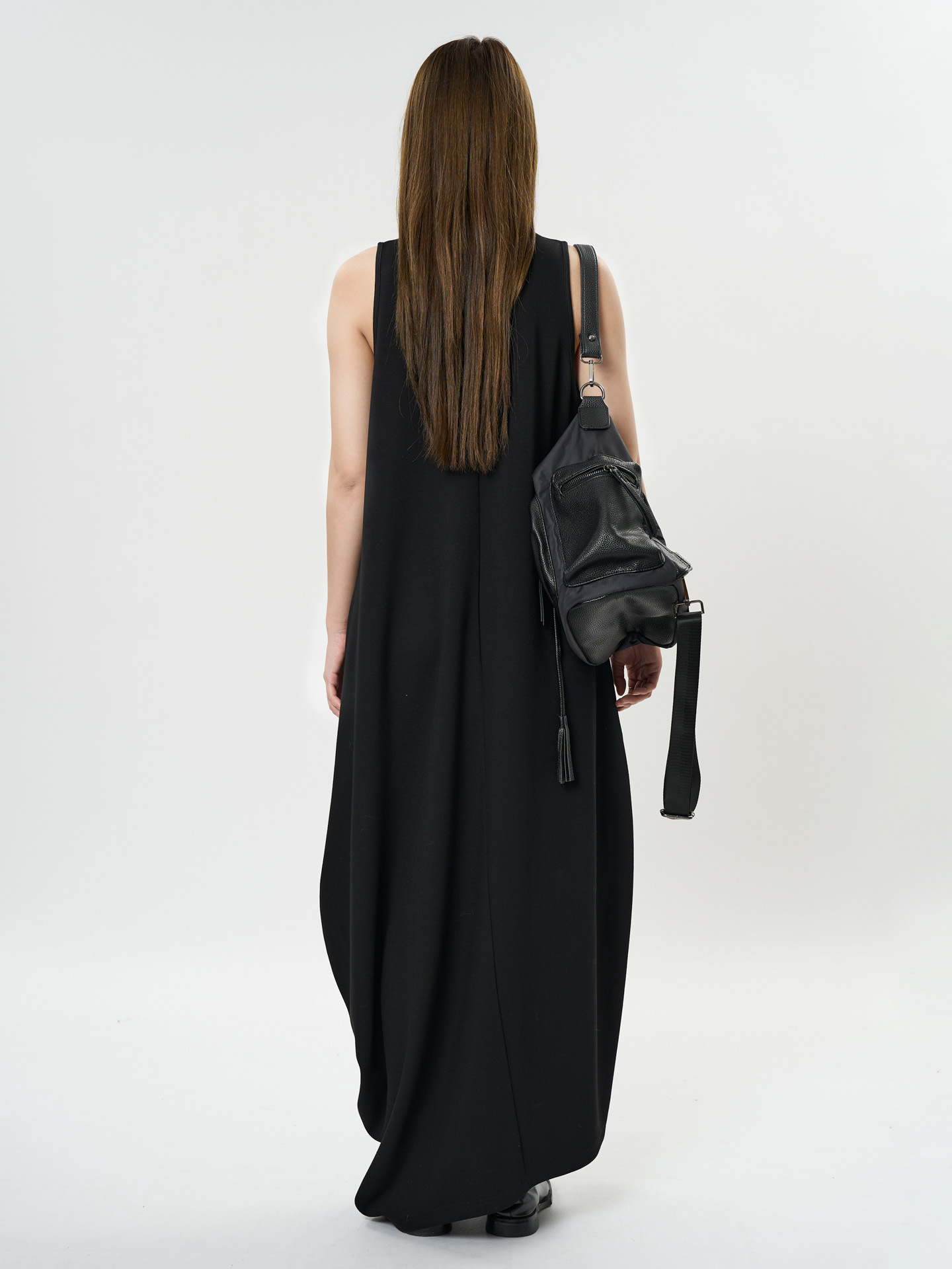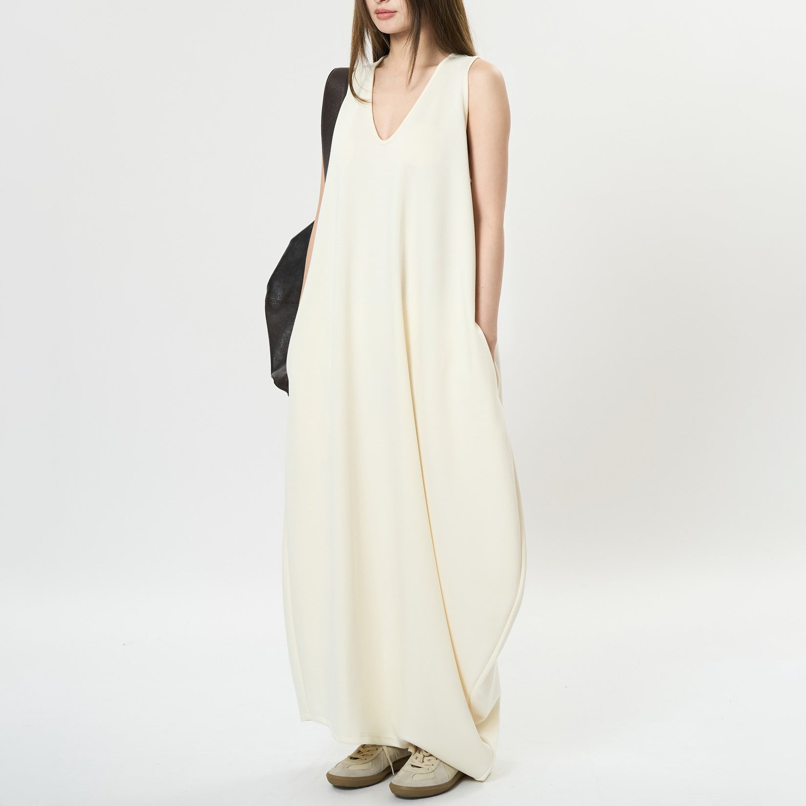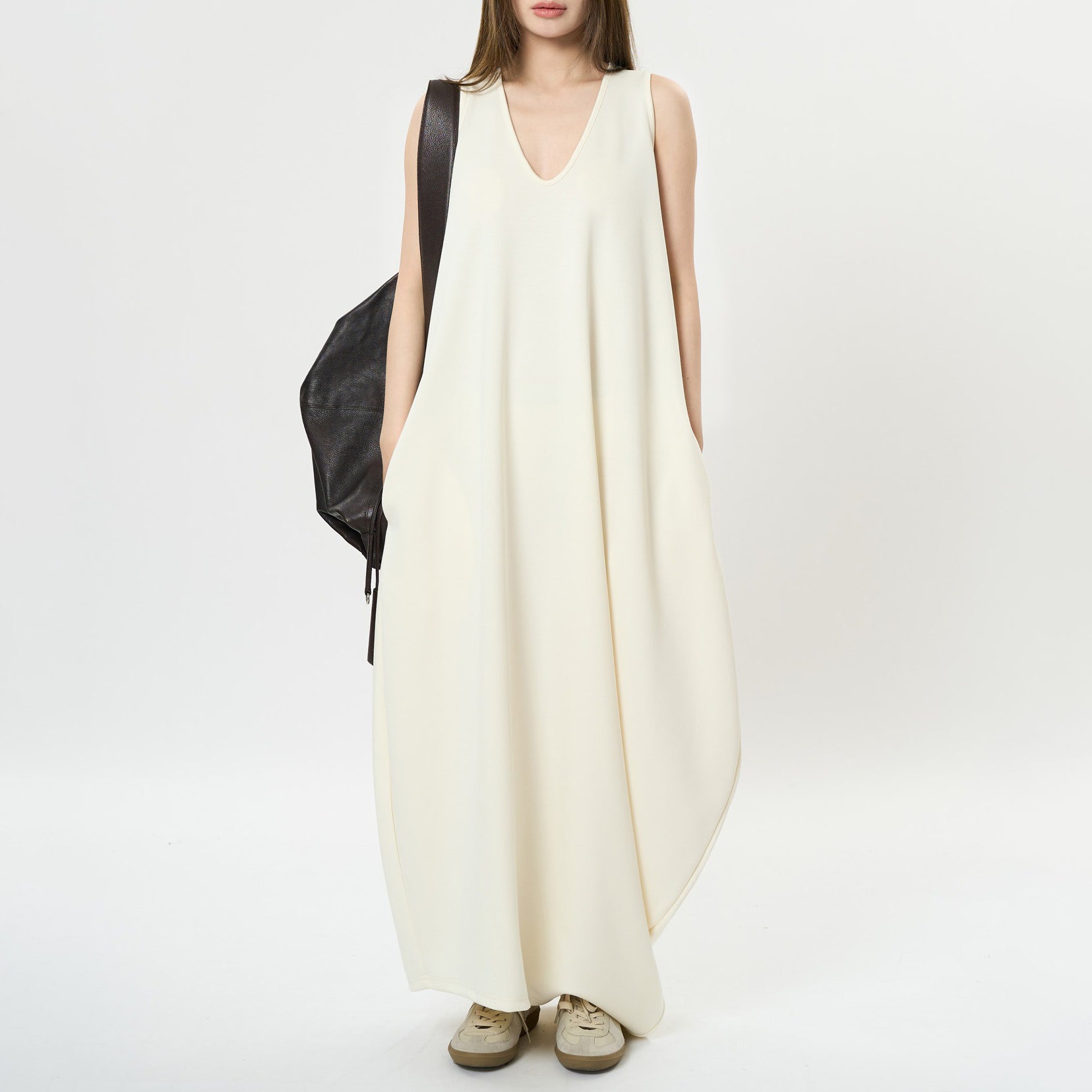 【ワンピース】夏 フレンチ ディープUネック アシンメトリー スリム バロン ノースリーブワンピース【JZシリーズ】