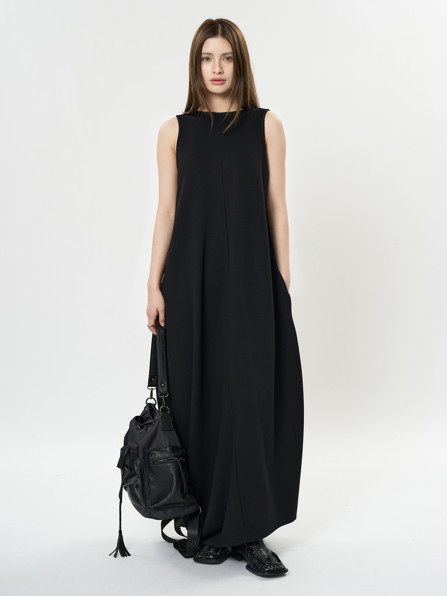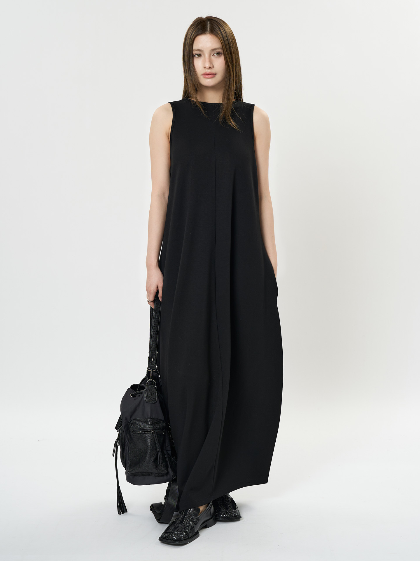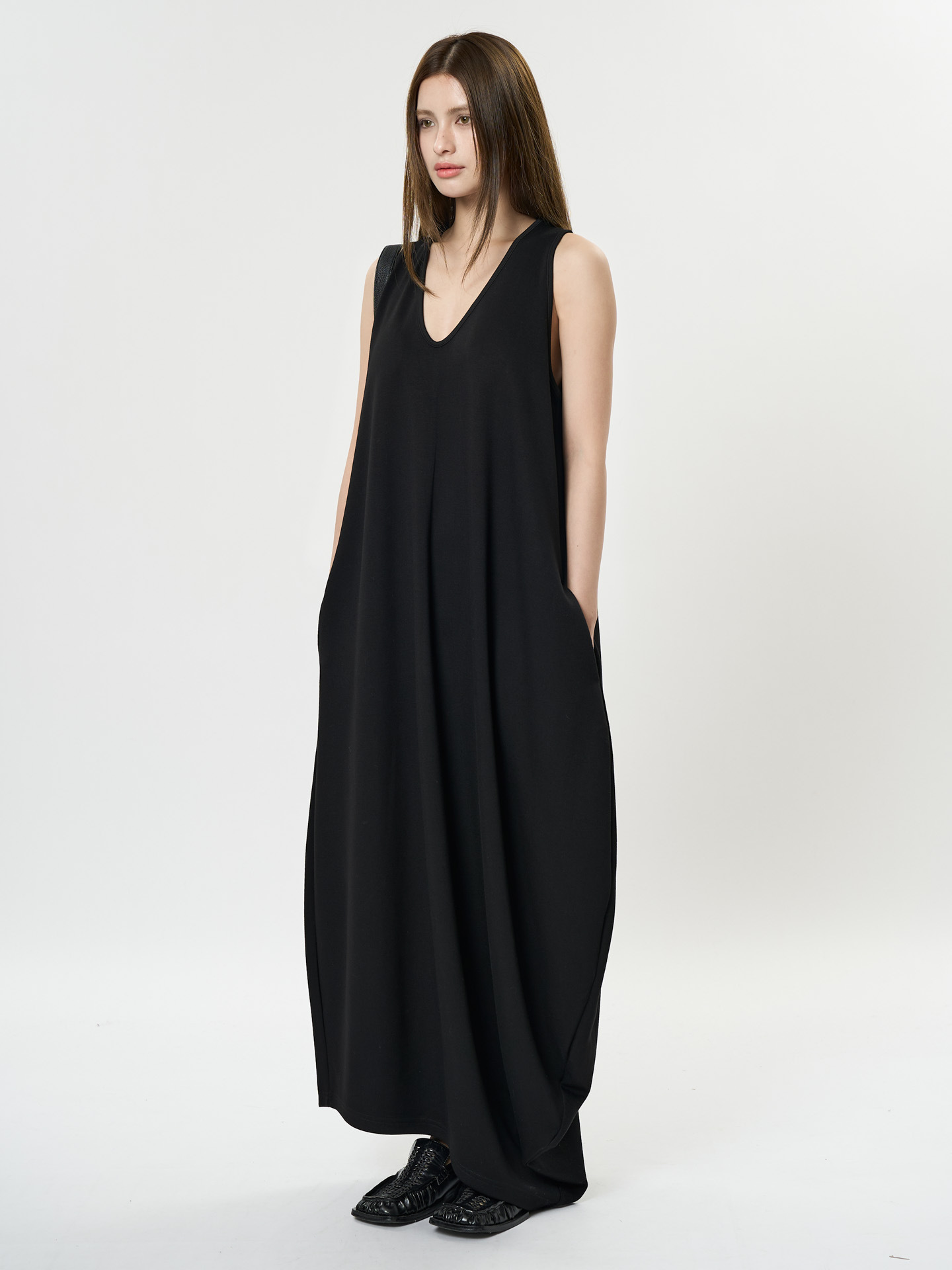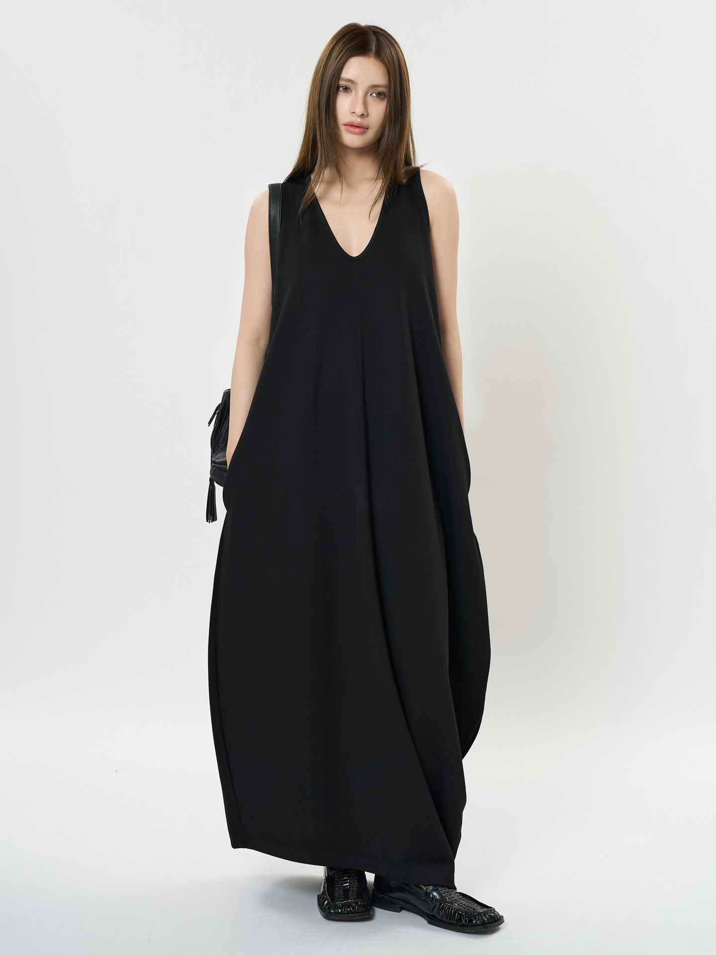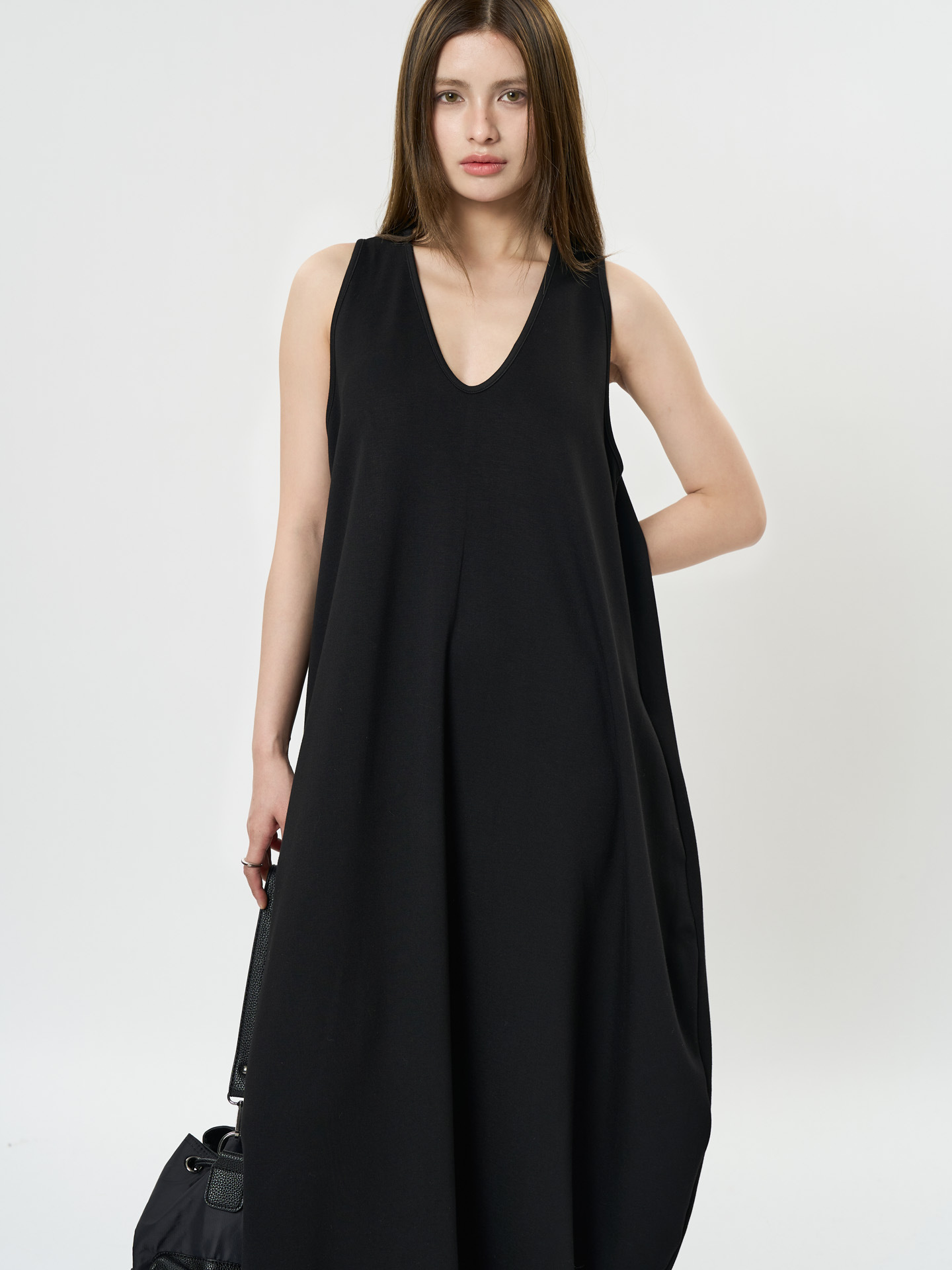 【商品名】【ワンピース】フレンチ ディープUネック アシンメトリー スリム バロン ノースリーブワンピース【JZシリーズ】