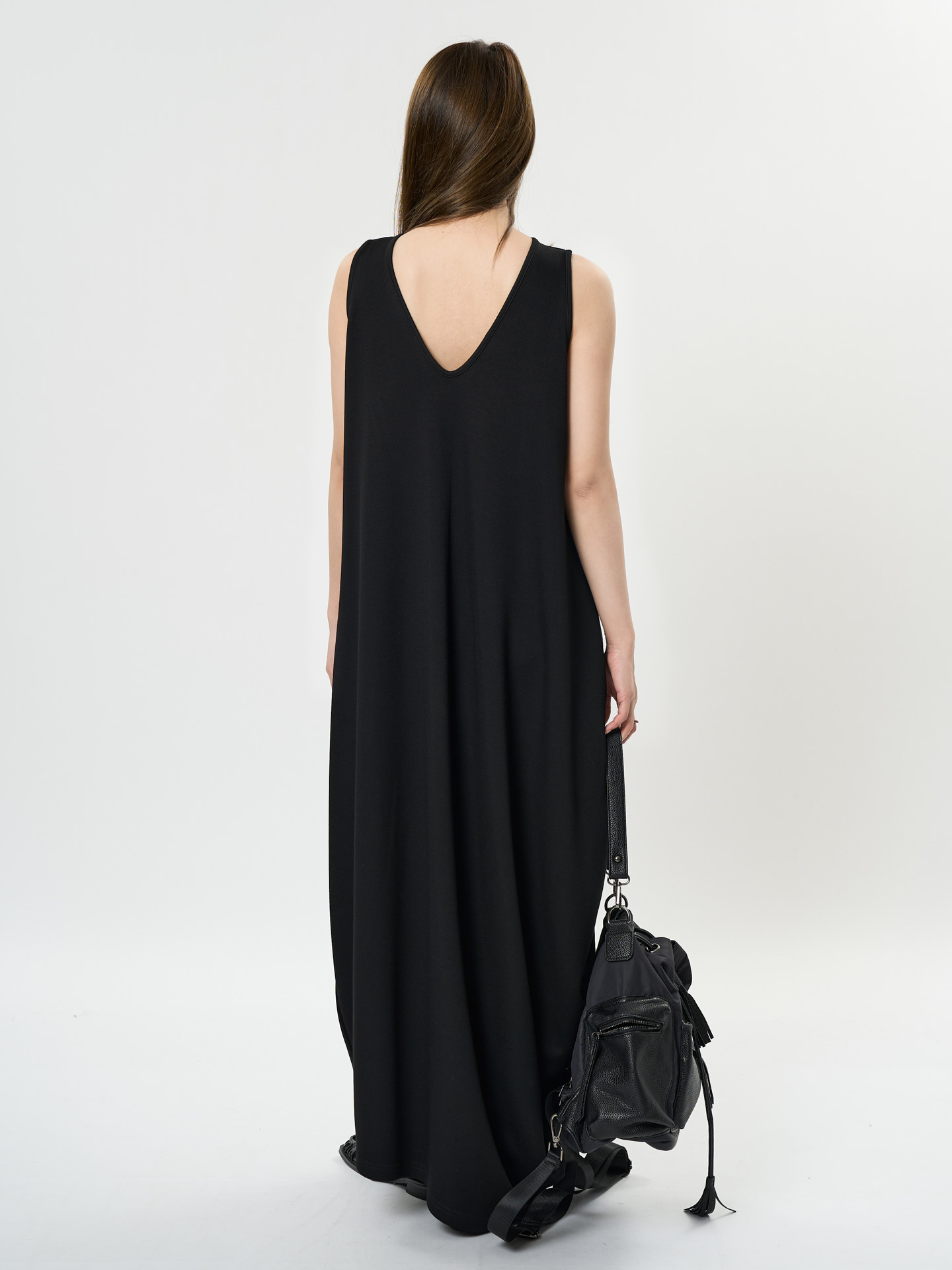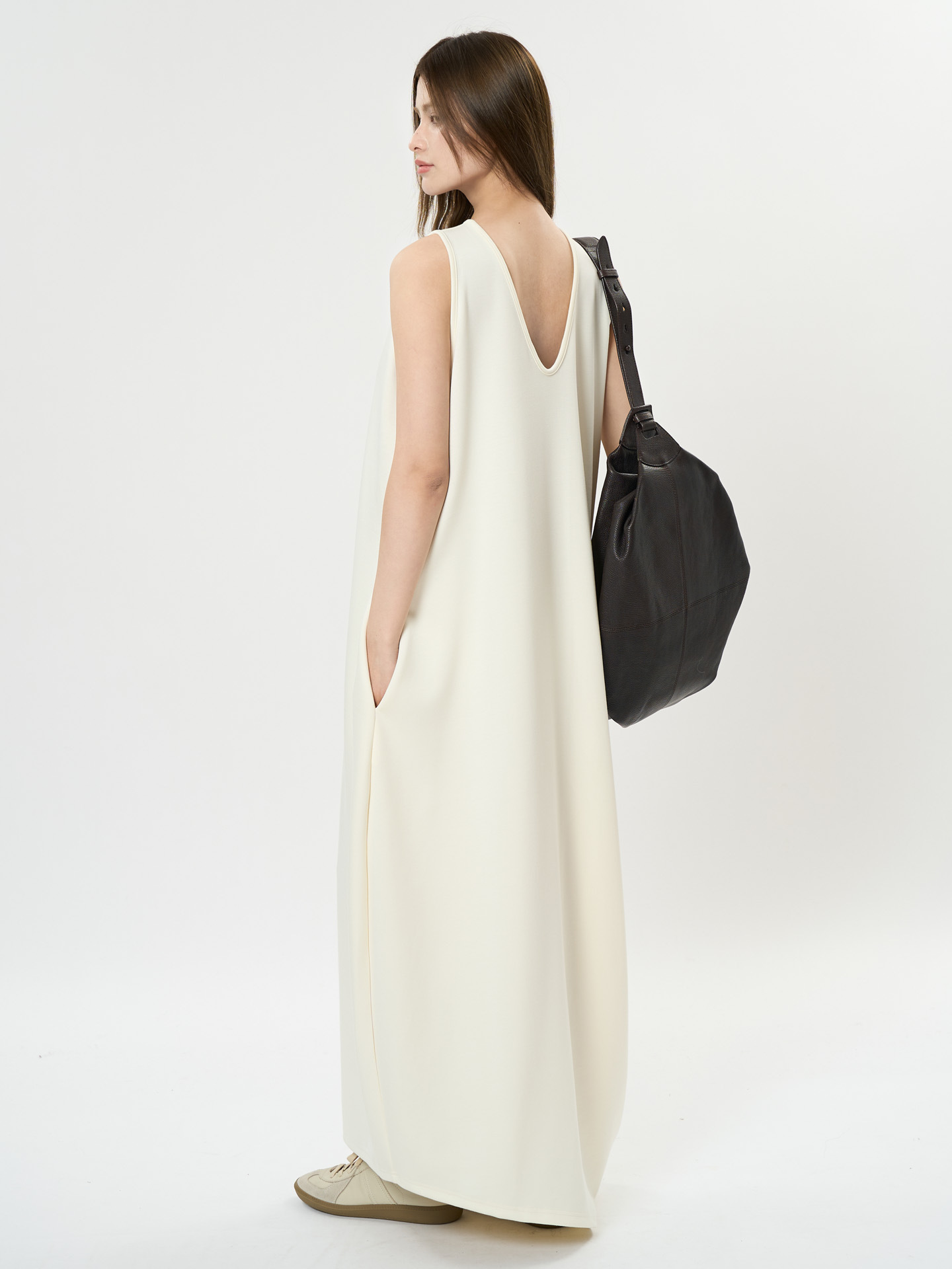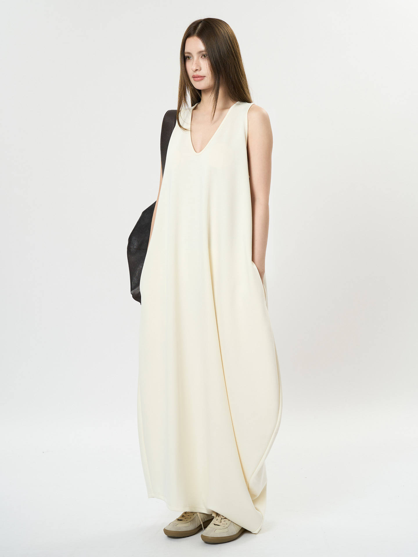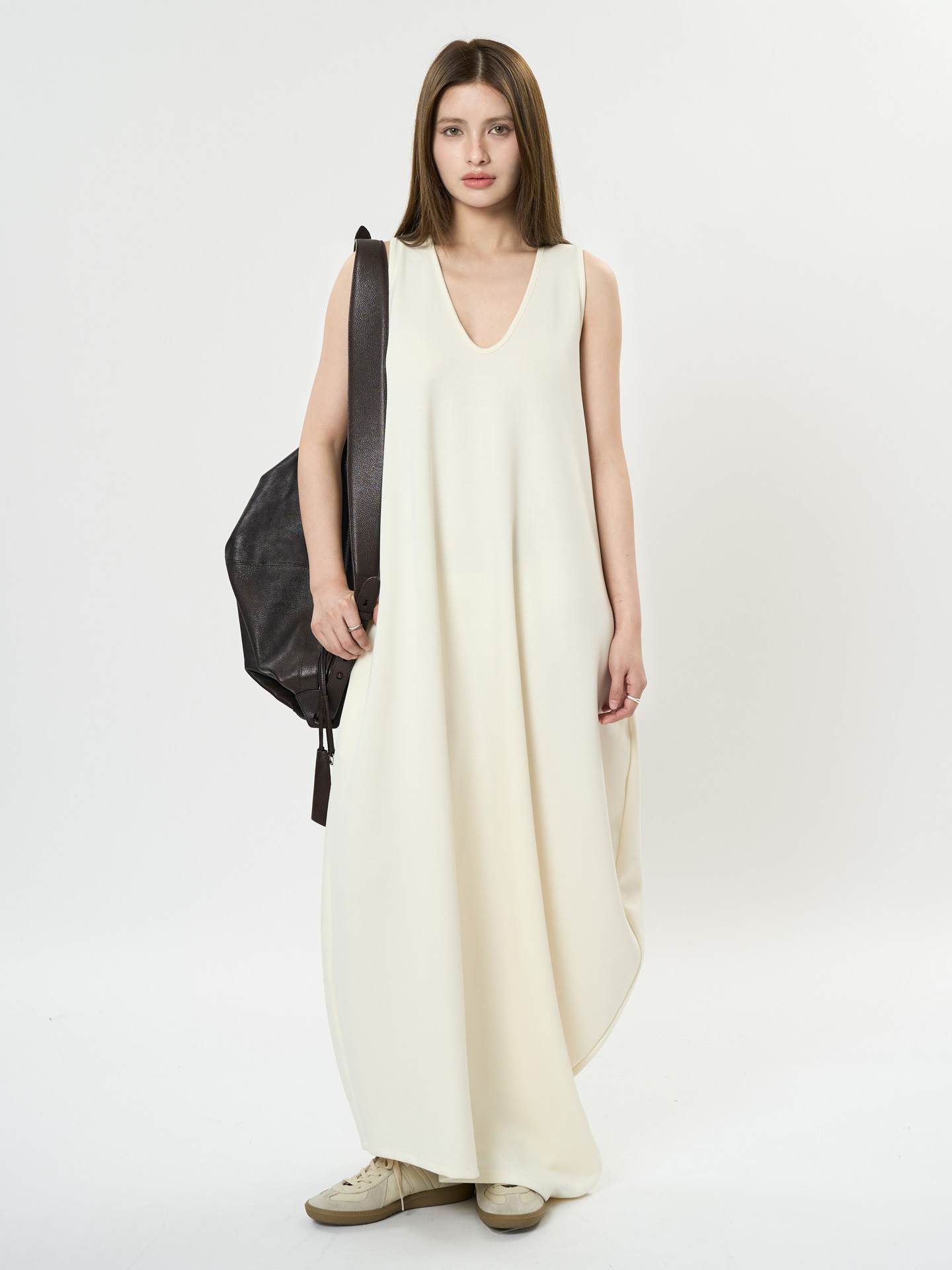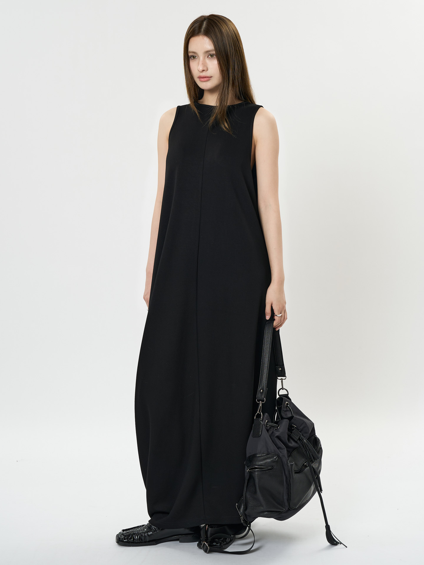 【商品名】【ワンピース】フレンチ ディープUネック アシンメトリー スリム バロン ノースリーブワンピース【JZシリーズ】