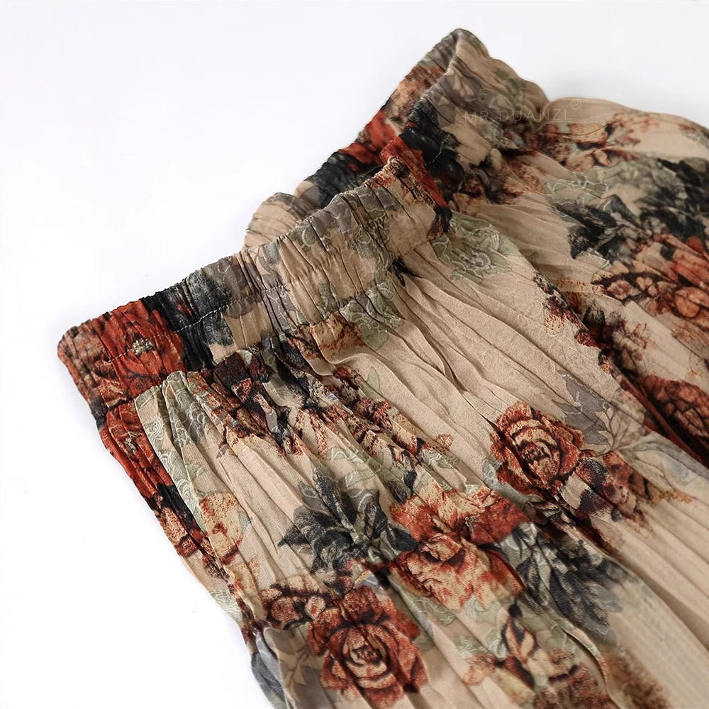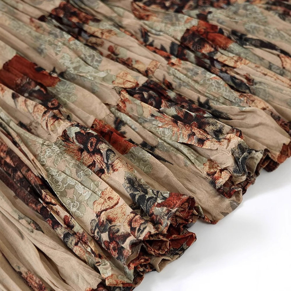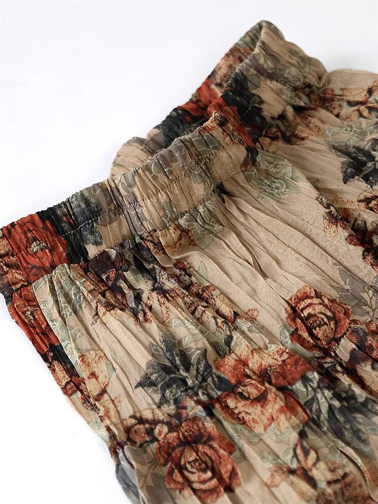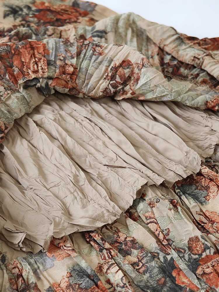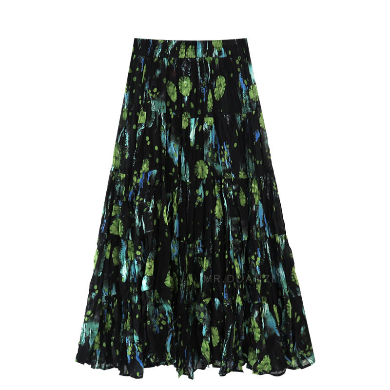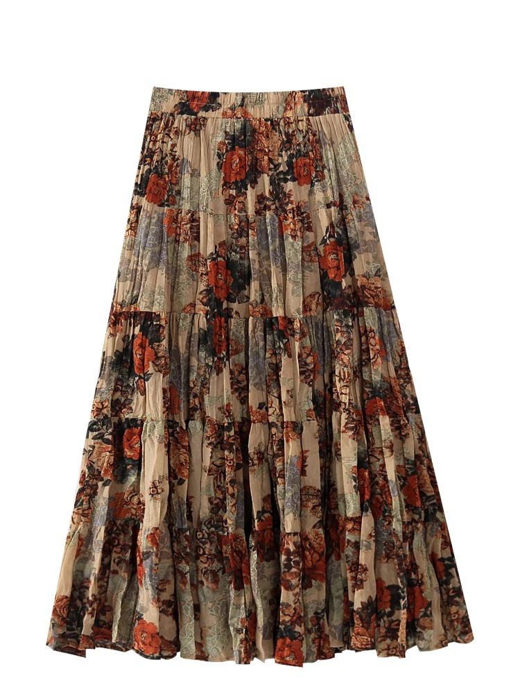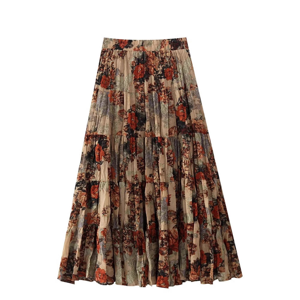【ボトムス】レトロ 花柄 ハイウエスト 大振裾 春夏秋 スカート 【SHシリーズ】