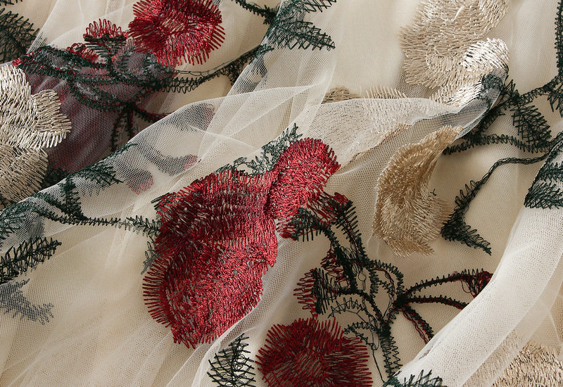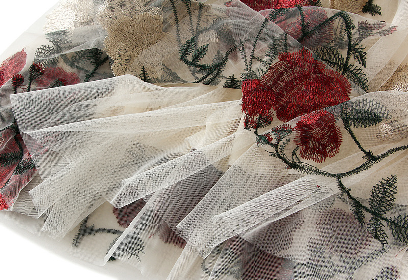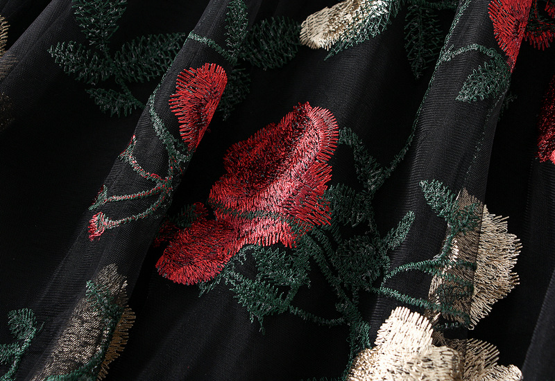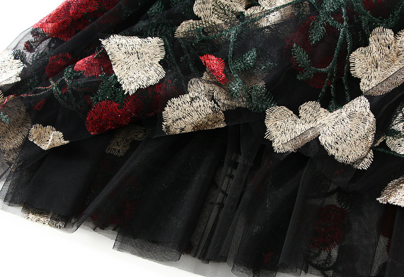 【ボトムス】花柄 レトロ ハイウエスト 刺繍 春夏秋 スカート 【SHシリーズ】