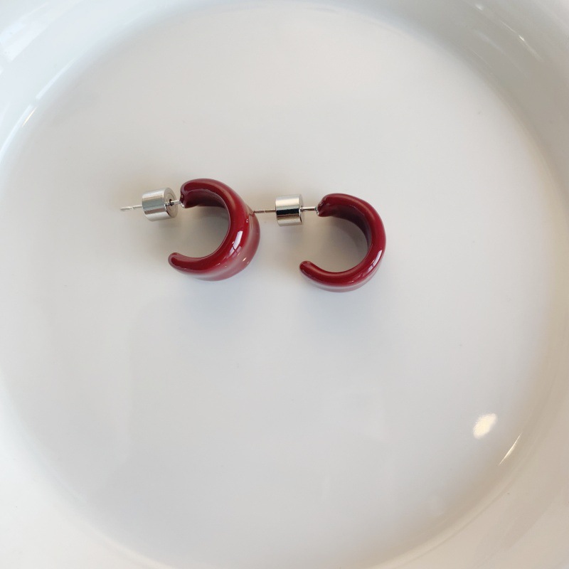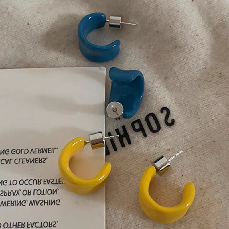 【商品名】【グッズ】夏向け 高級ミニマル エナメル 6色 デザイン感 C形 イヤリング ピアス