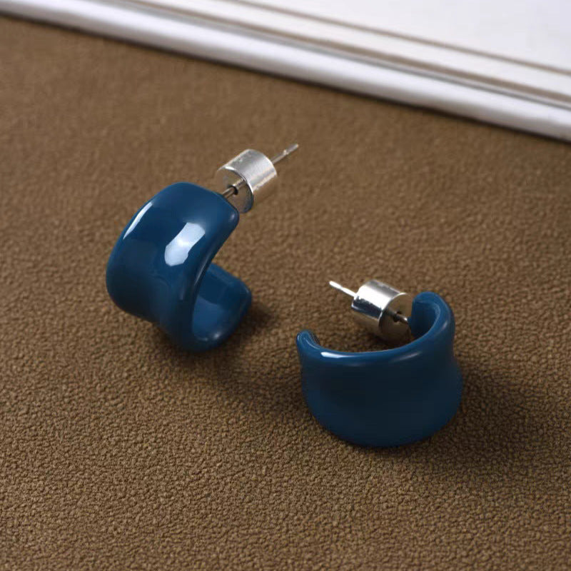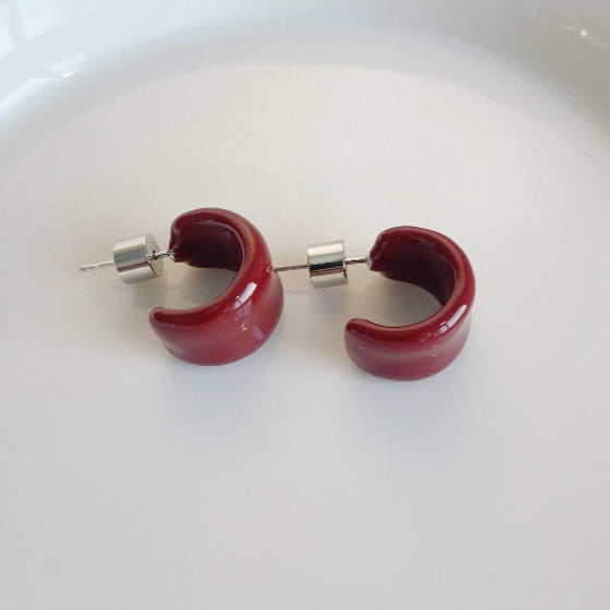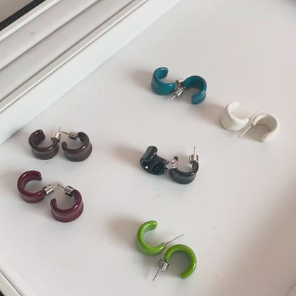 【🎁 B2G1|先行スタート!】【グッズ】夏向け 高級ミニマル エナメル 6色 デザイン感 C形 イヤリング ピアス