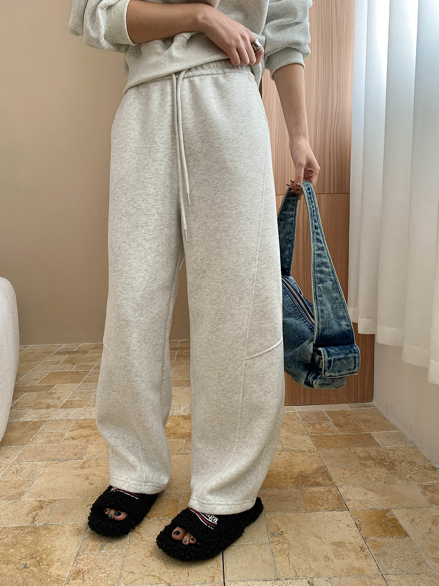 【ボトムス】ハイウエスト 刺繍入り スポーツパンツ レディース 春秋 ゆったり ワイド【FCシリーズ】