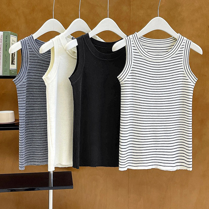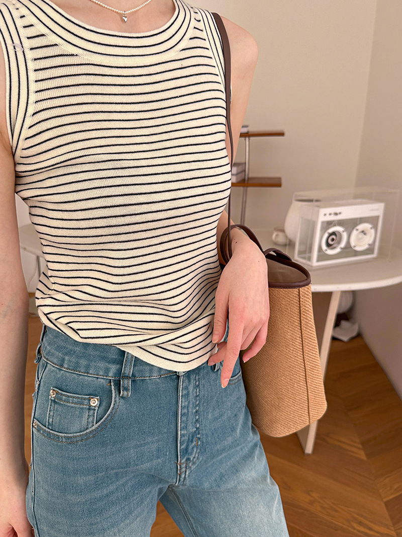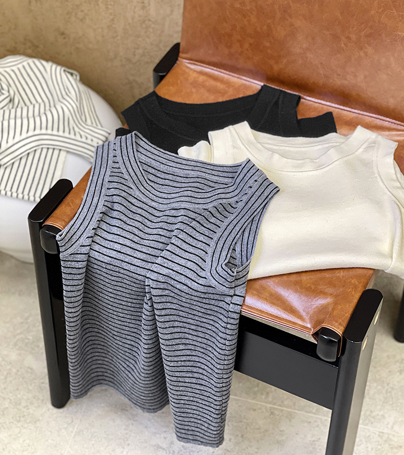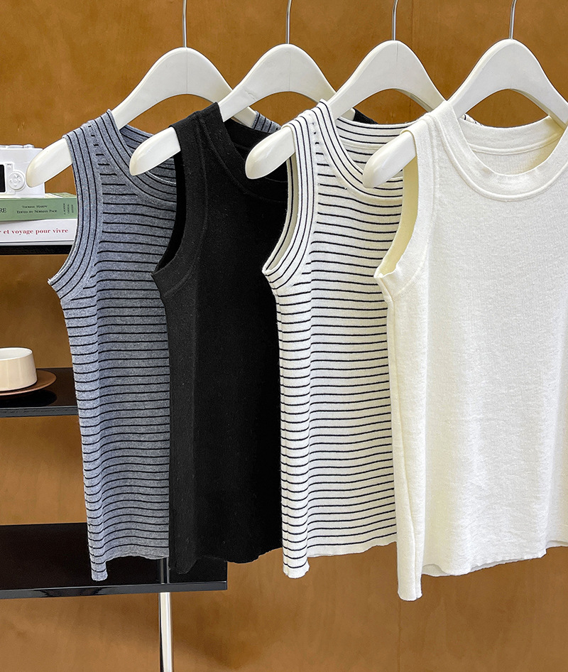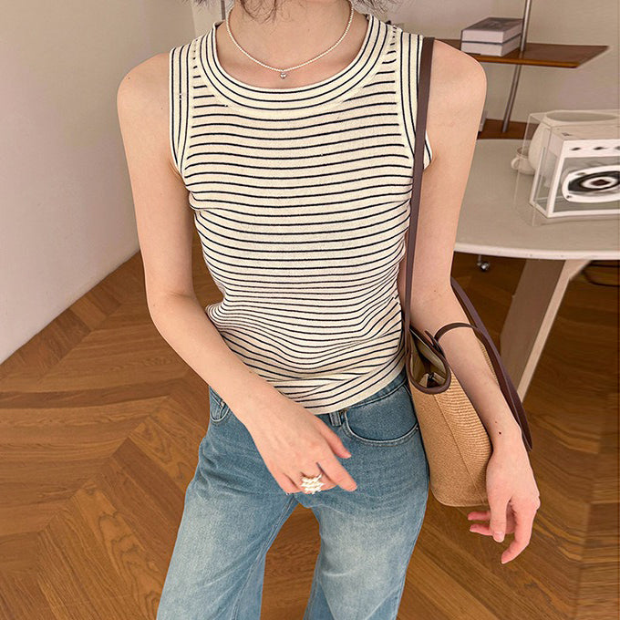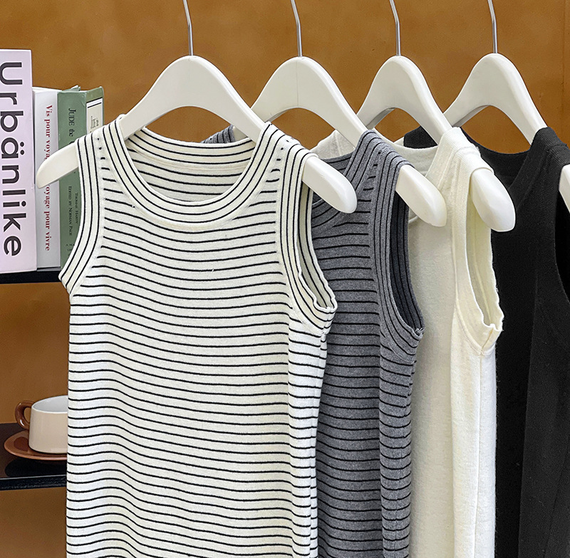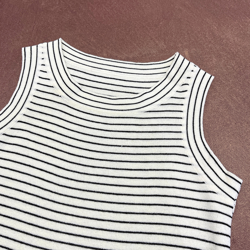 【トップス】夏 カジュアル ストライプ ノースリーブ ラウンドネック キャミソール【JZシリーズ】