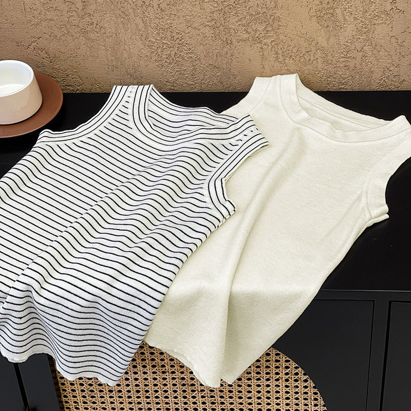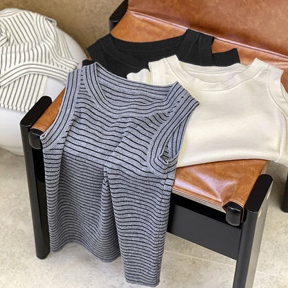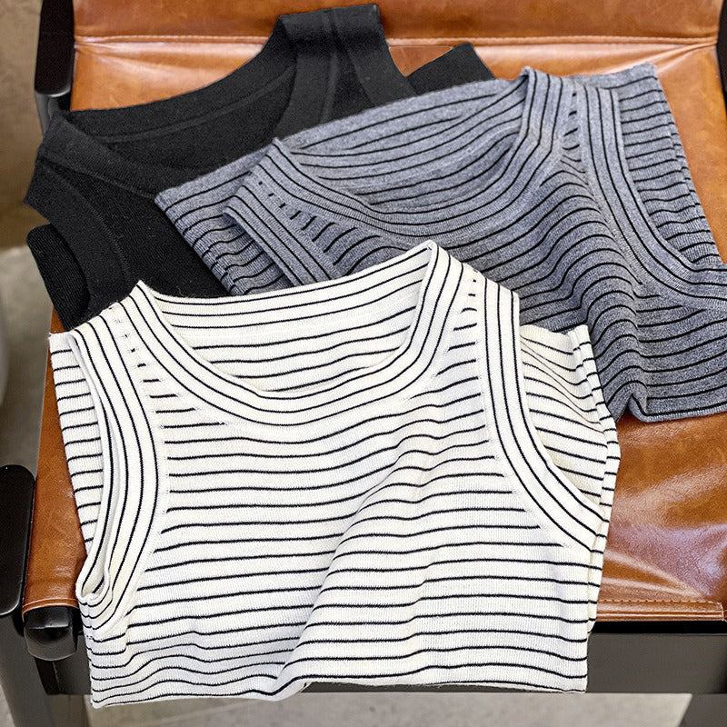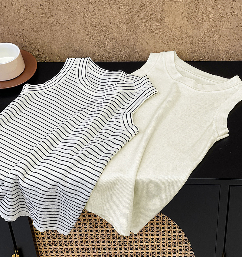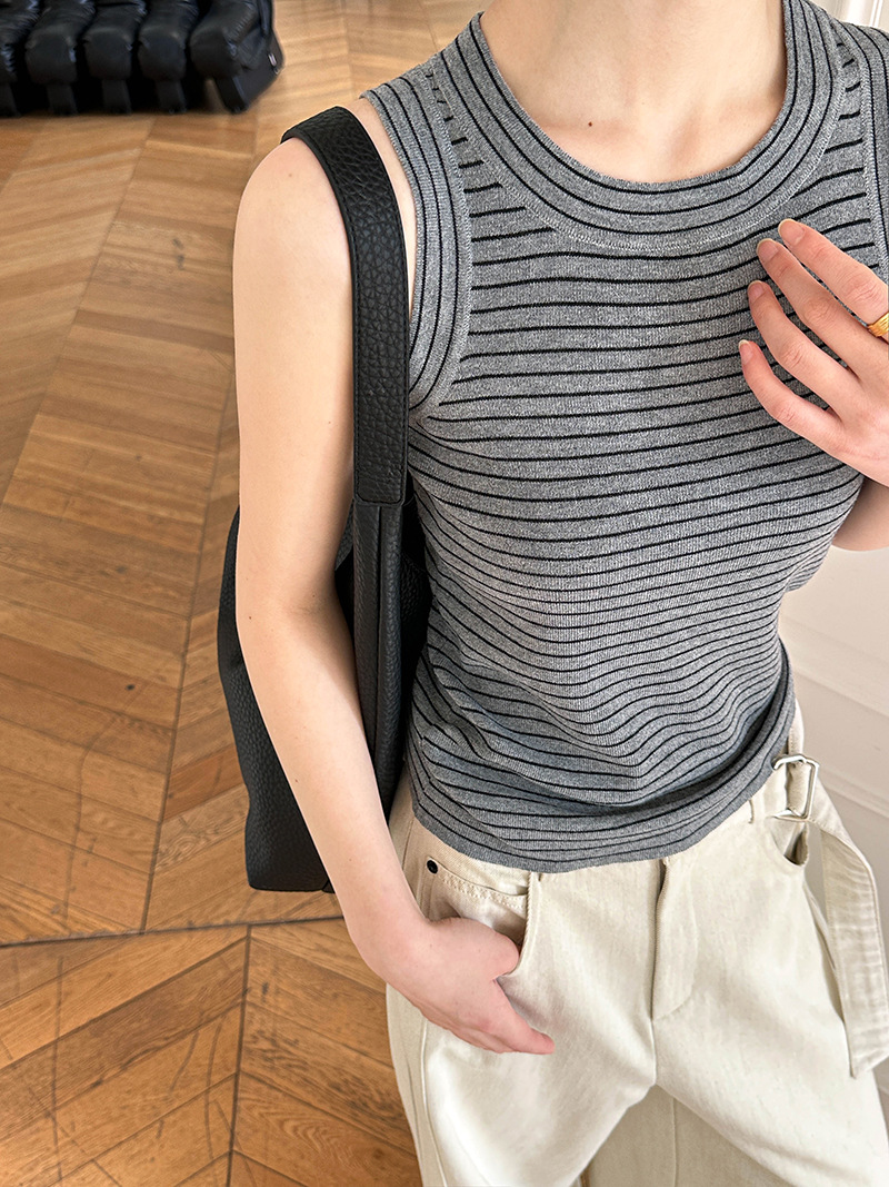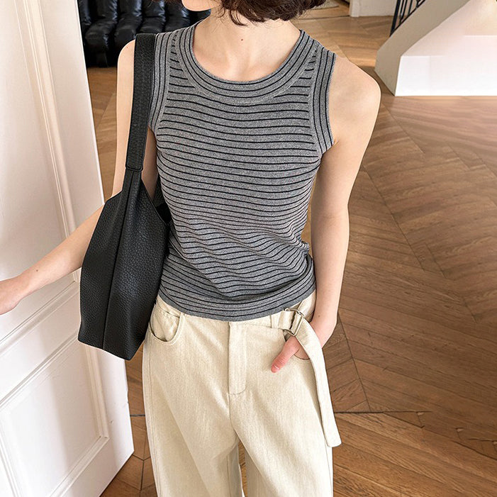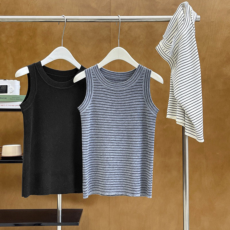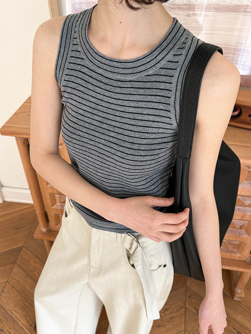 【トップス】夏 カジュアル ストライプ ノースリーブ ラウンドネック キャミソール【JZシリーズ】