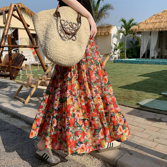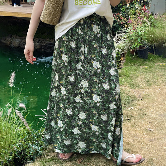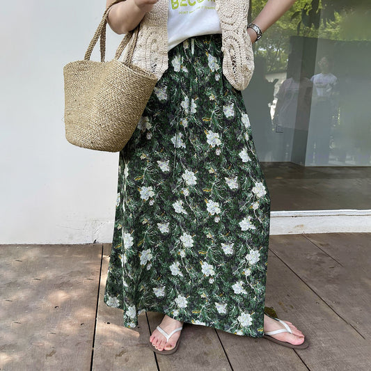 【ボトムス】レトロ 秋冬新作 ゆったり体型カバー 大きめフレア ロング フラワー 裏起毛スカート【SHシリーズ】