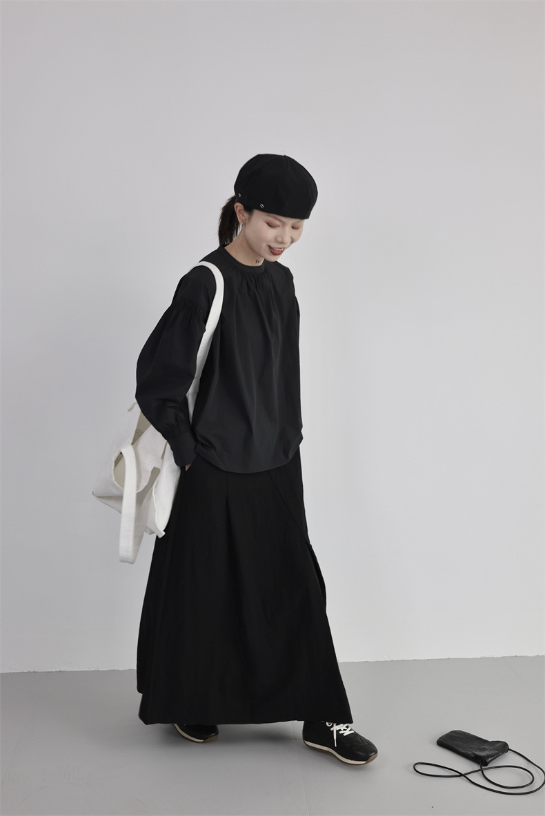 【ワンピース】フレンチレトロ 切替デザイン 大ポケット 長袖 ワンピース 秋新作 ゆったり 【JZシリーズ】