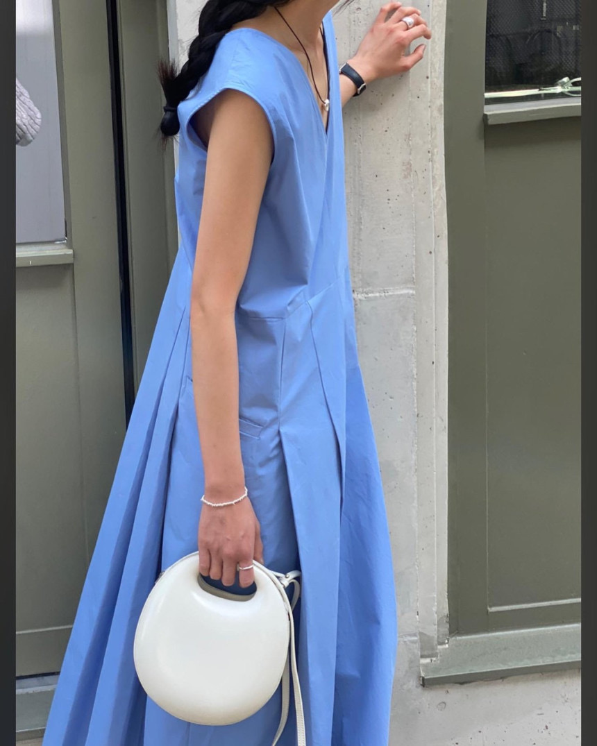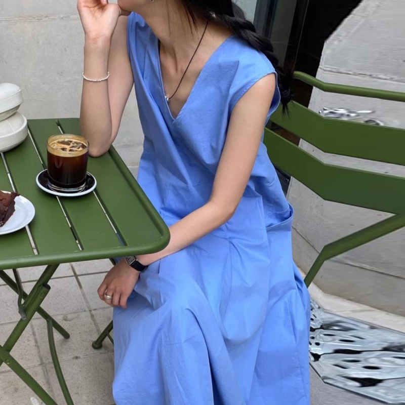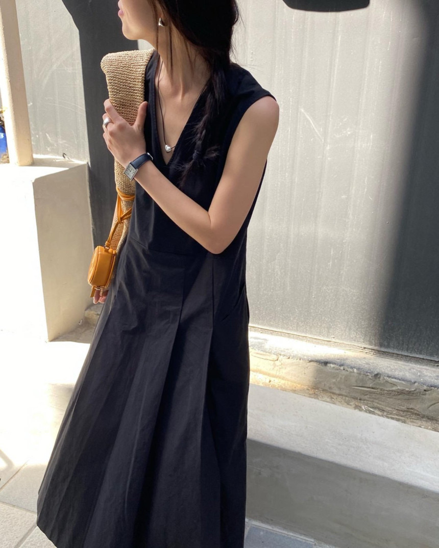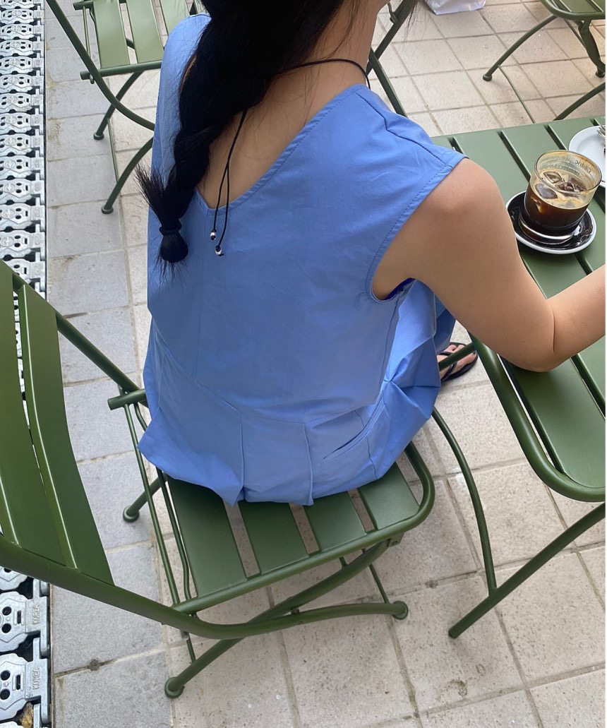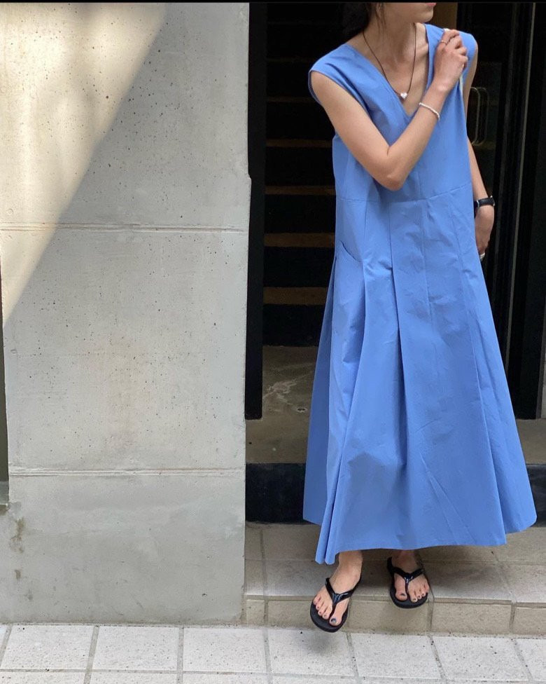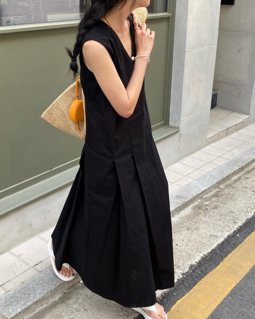 【ワンピース】夏 Vネック フリルギャザー タンクトップ ノースリーブ ワンピース