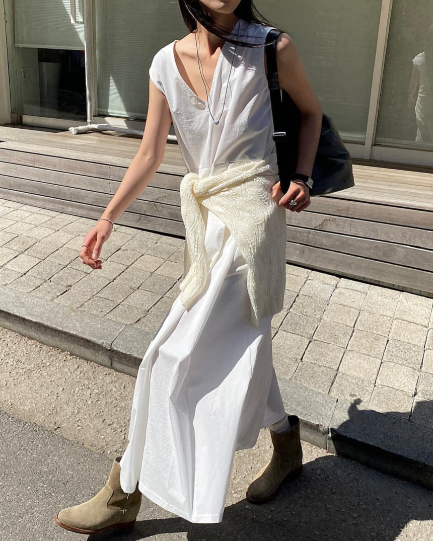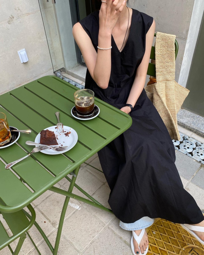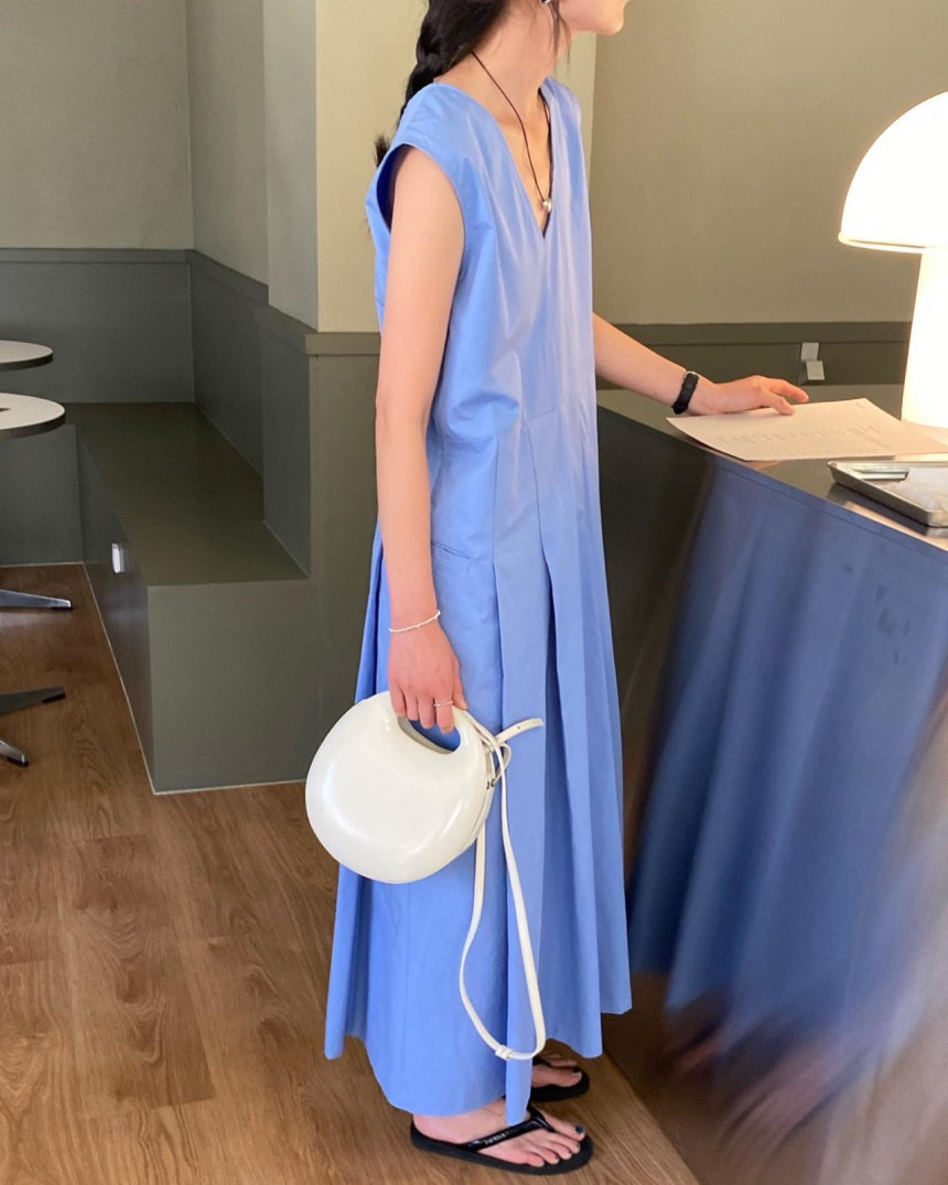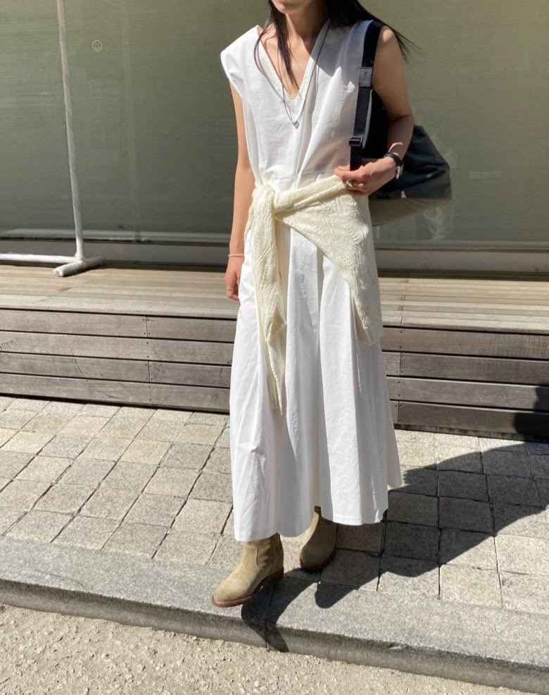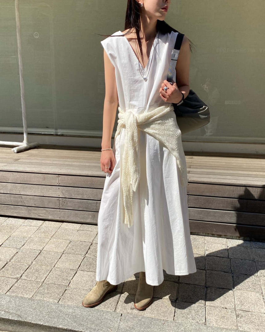 【ワンピース】夏 Vネック フリルギャザー タンクトップ ノースリーブ ワンピース