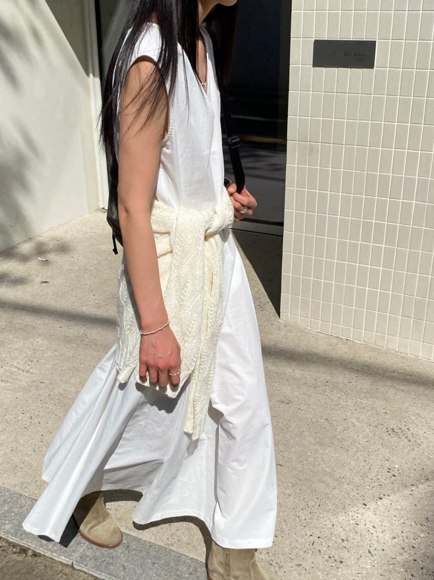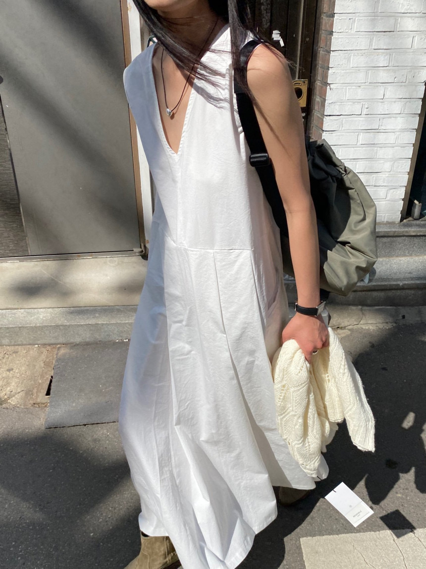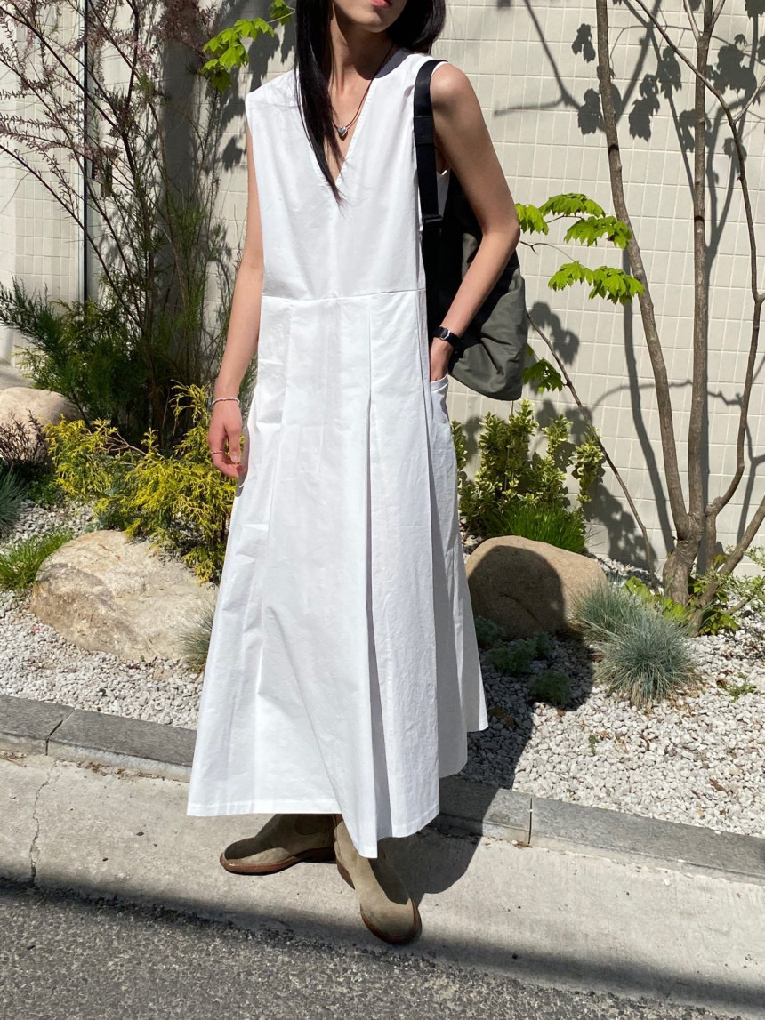 【商品名】【ワンピース】Vネック フリルギャザー タンクトップ ノースリーブ ワンピース