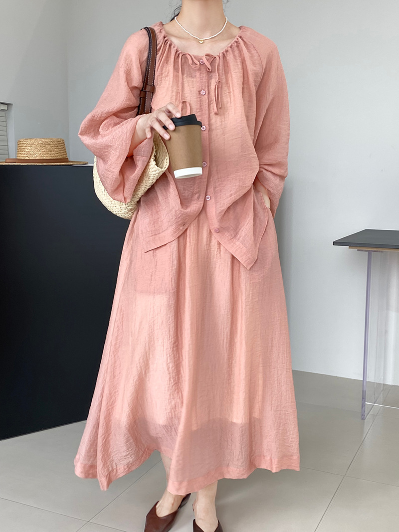 【商品名】【ボトムス】ロマンチック 日焼け防止 透け感 シャツ + スカート 上下セット【JZシリーズ】