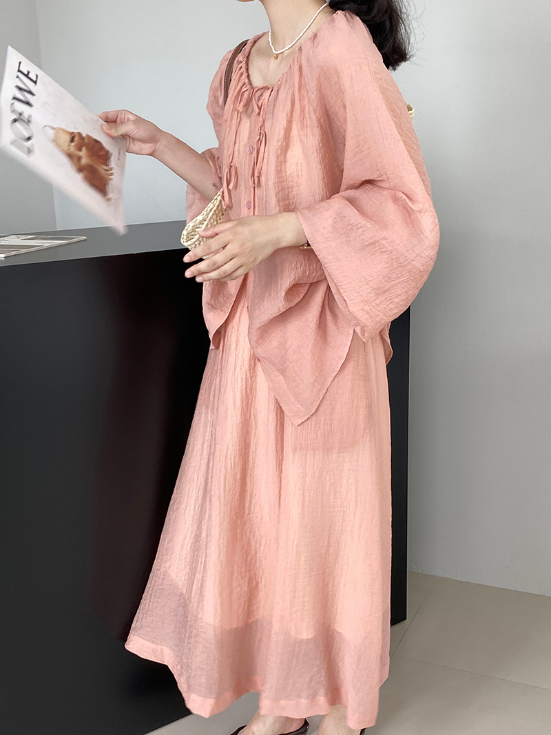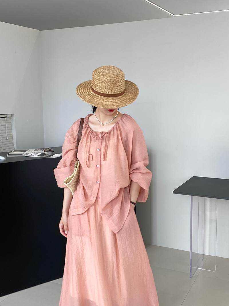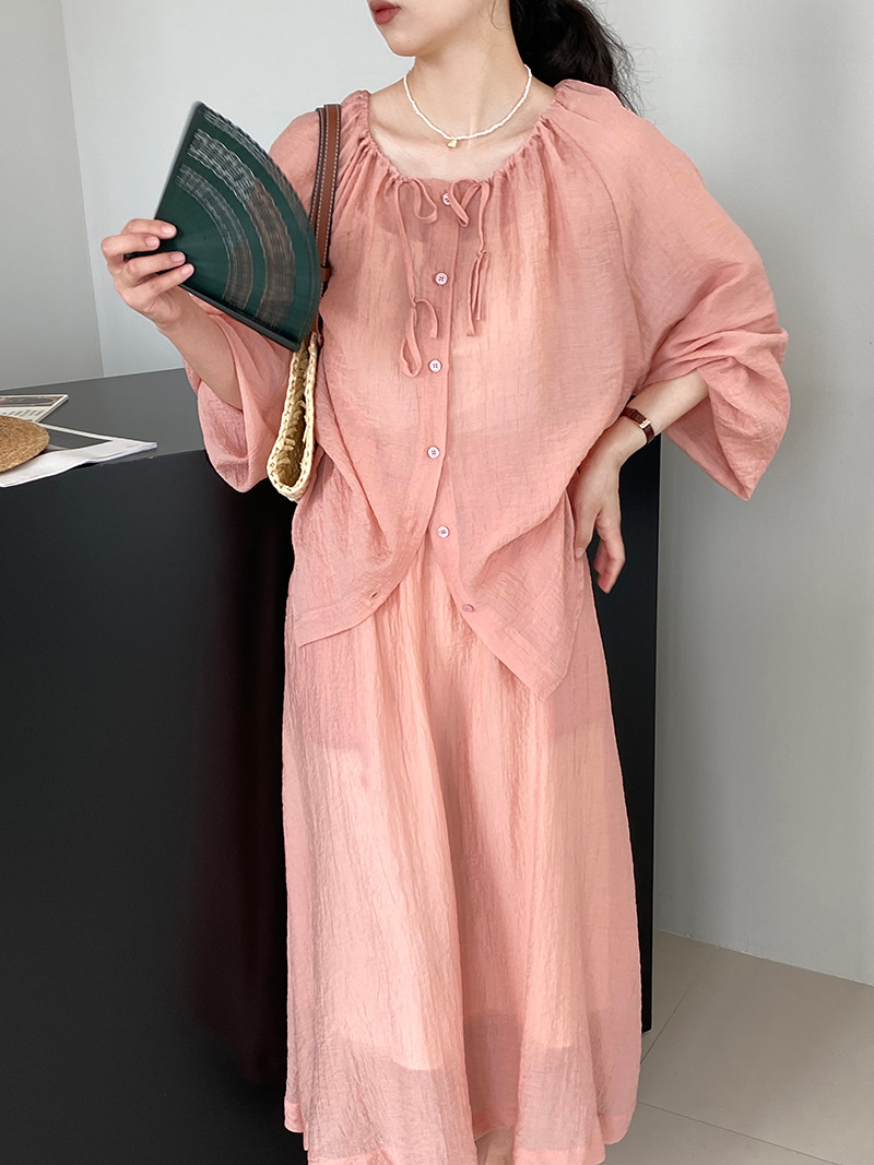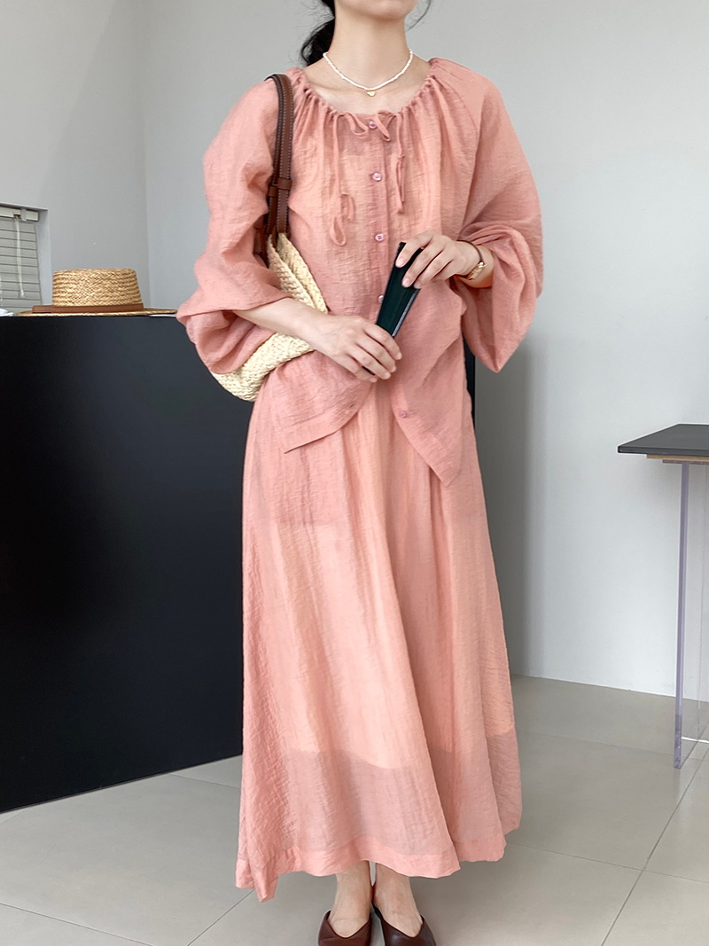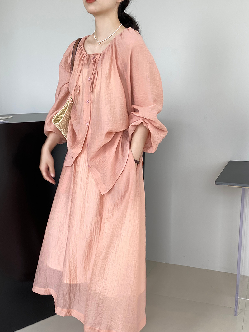 【セットアップ】夏春秋 ロマンチック 日焼け防止 透け感 シャツ + スカート 上下セット【JZシリーズ】