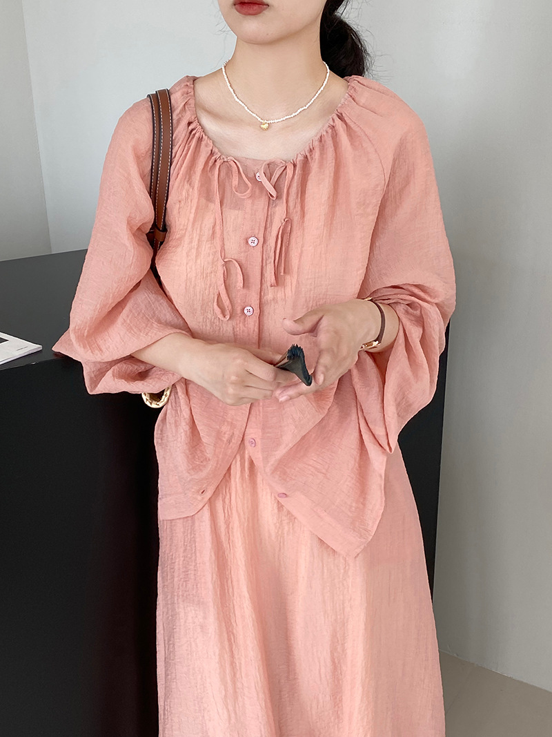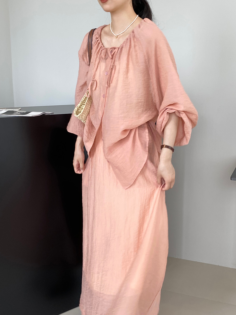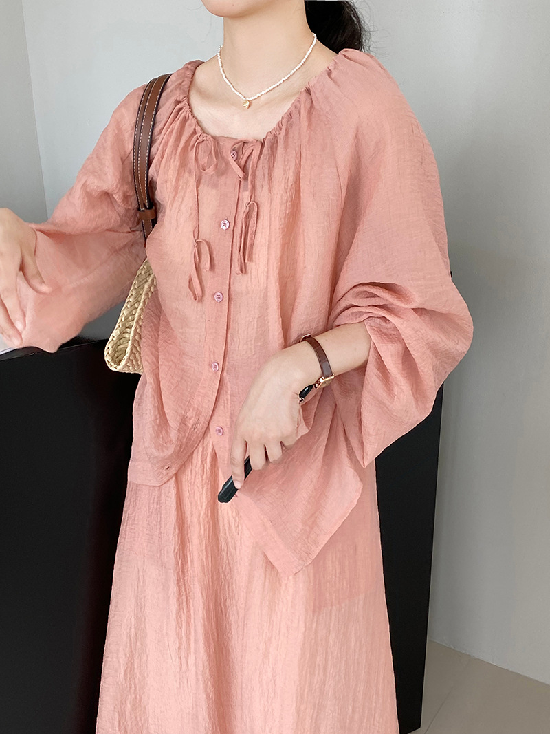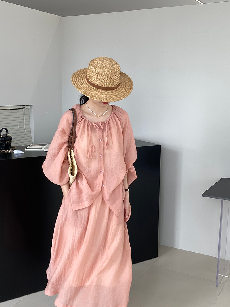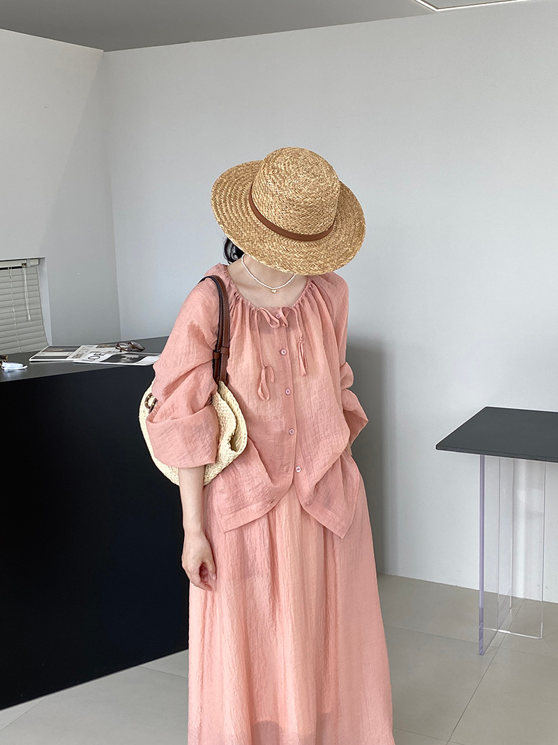 【セットアップ】夏春秋 ロマンチック 日焼け防止 透け感 シャツ + スカート 上下セット【JZシリーズ】