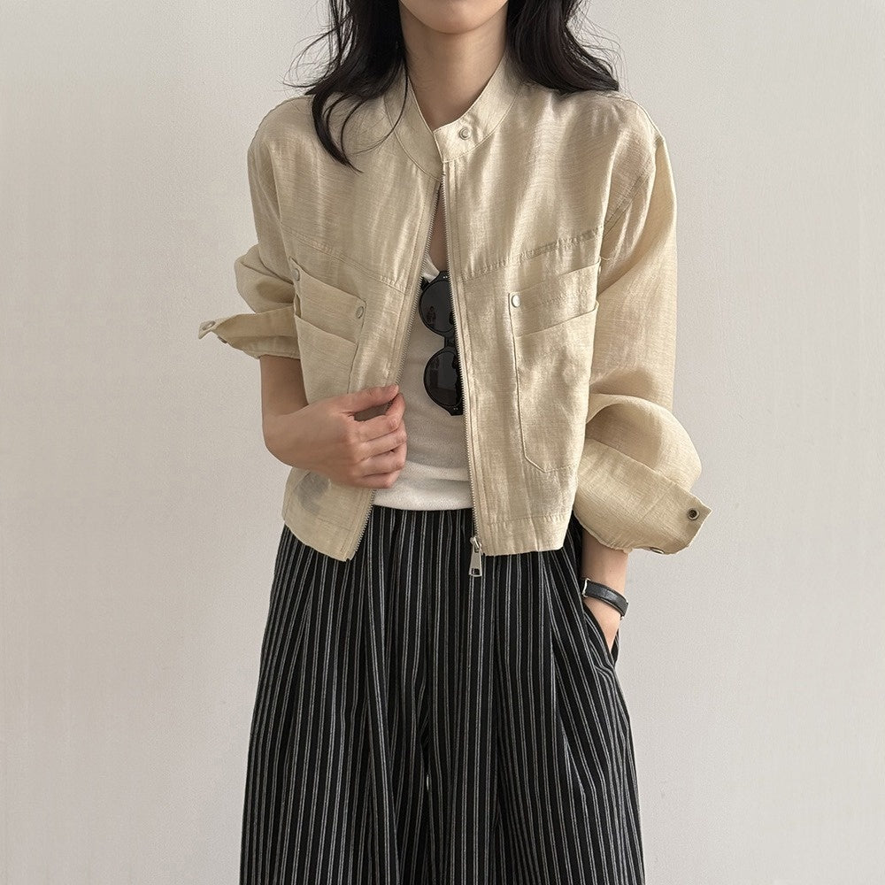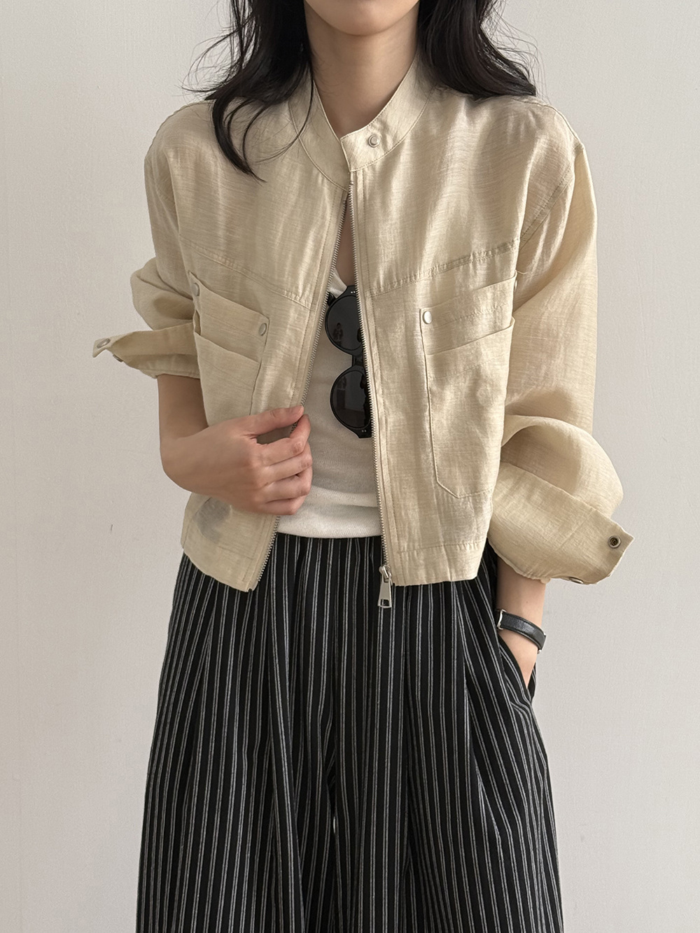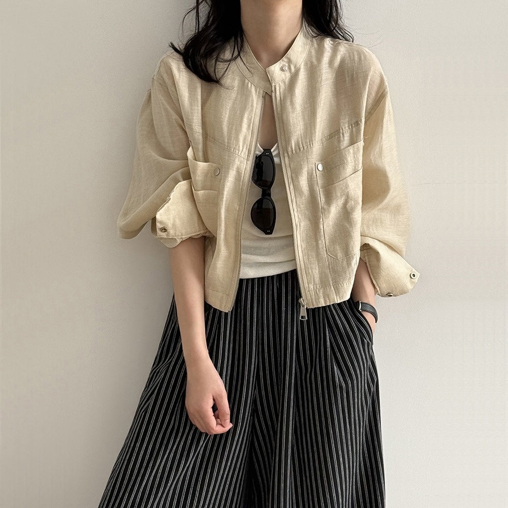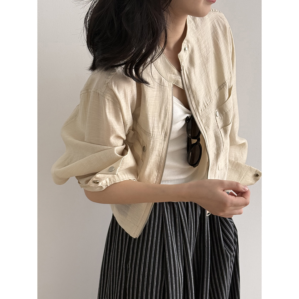 【アウター】春 秋 夏 立襟 ショート ジャケット 【SNシリーズ】
