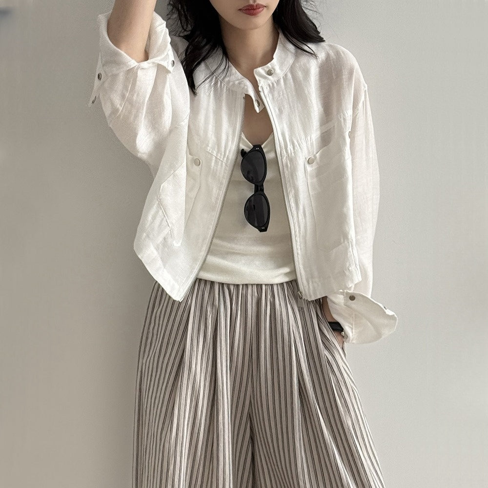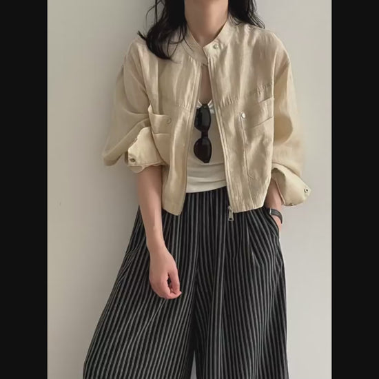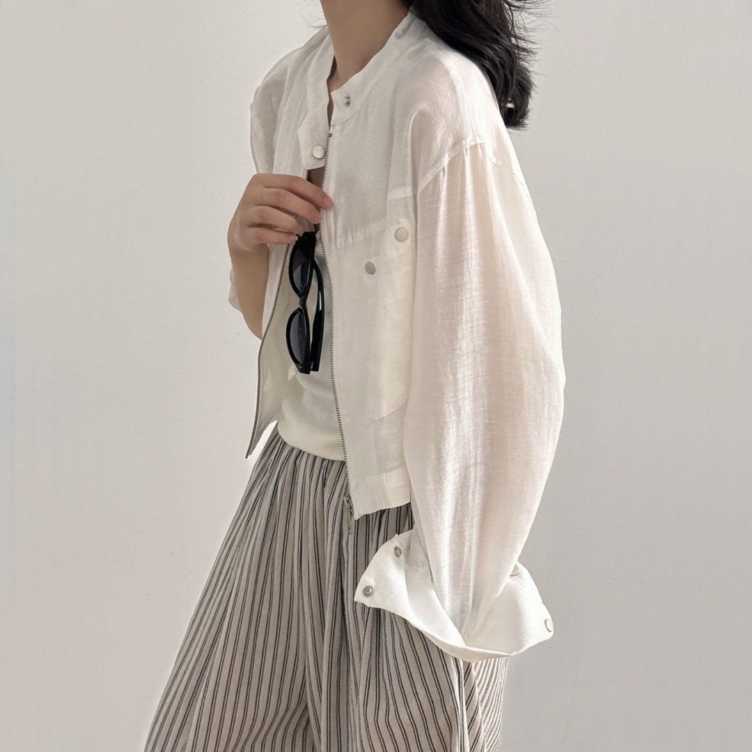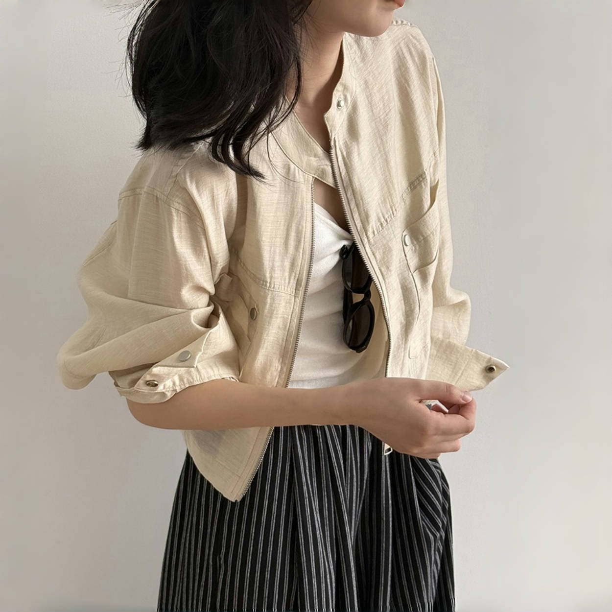 【アウター】春 秋 夏 立襟 ショート ジャケット 【SNシリーズ】