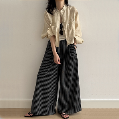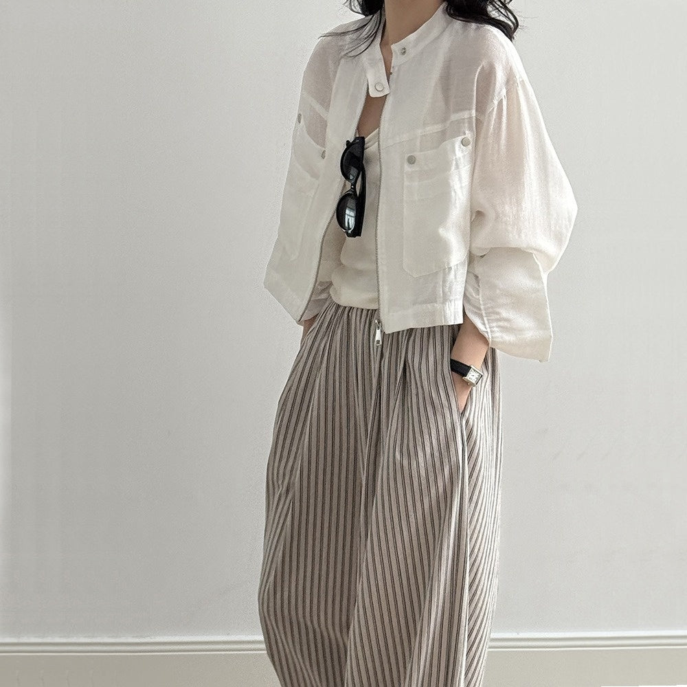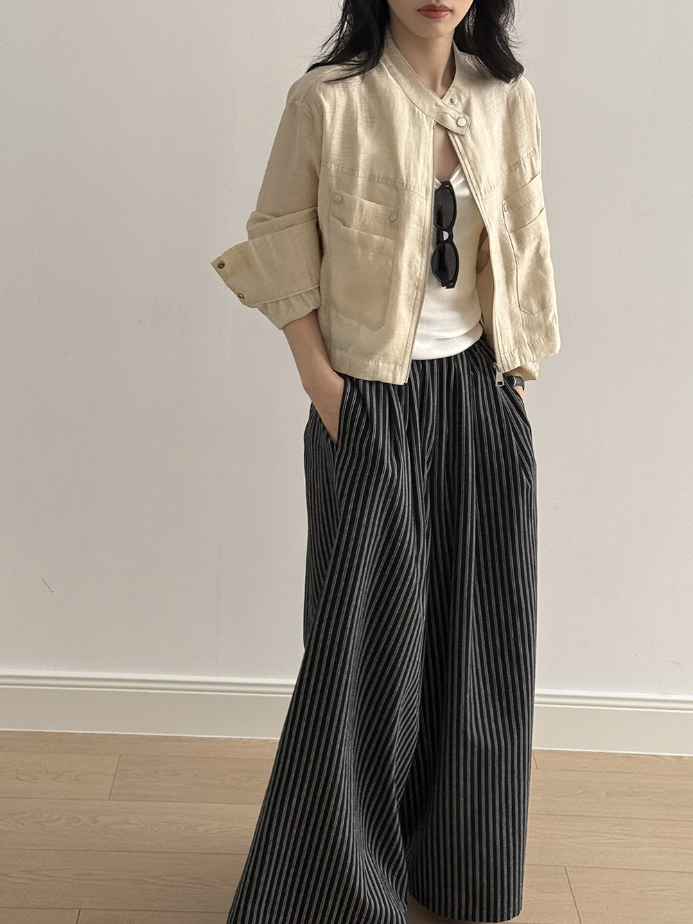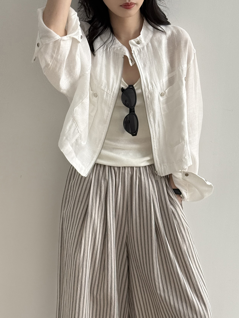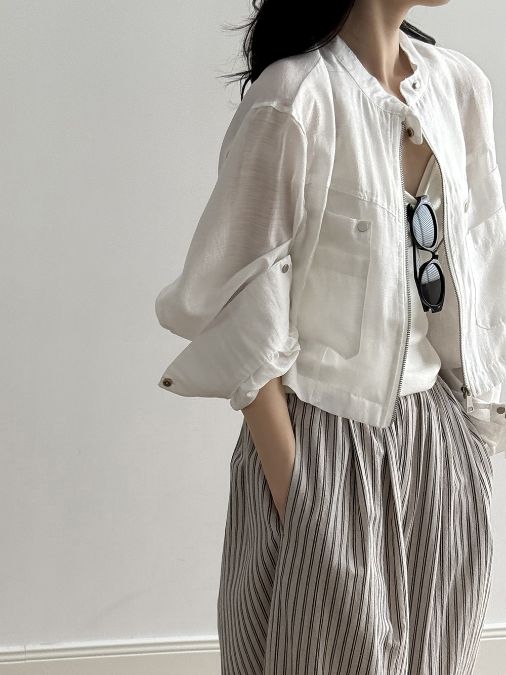 【アウター】春 秋 夏 立襟 ショート ジャケット 【SNシリーズ】