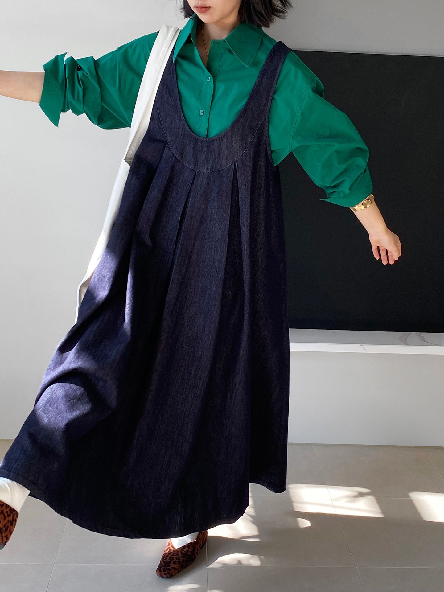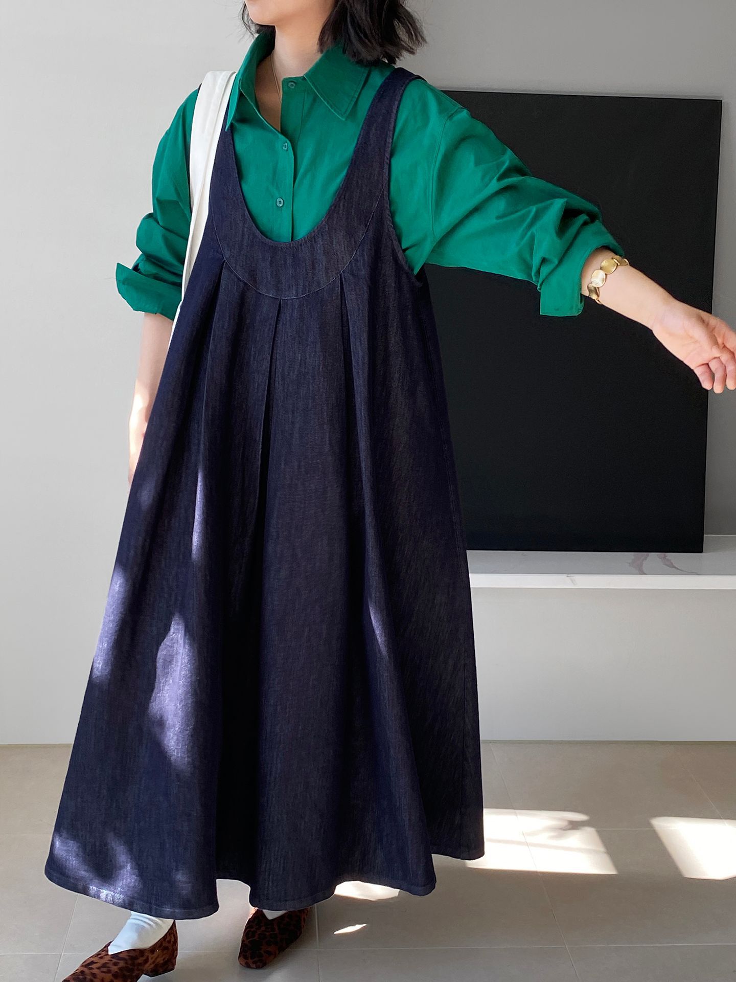 【ワンピース】レトロ Uネック デニム ワンピース 【JZシリーズ】