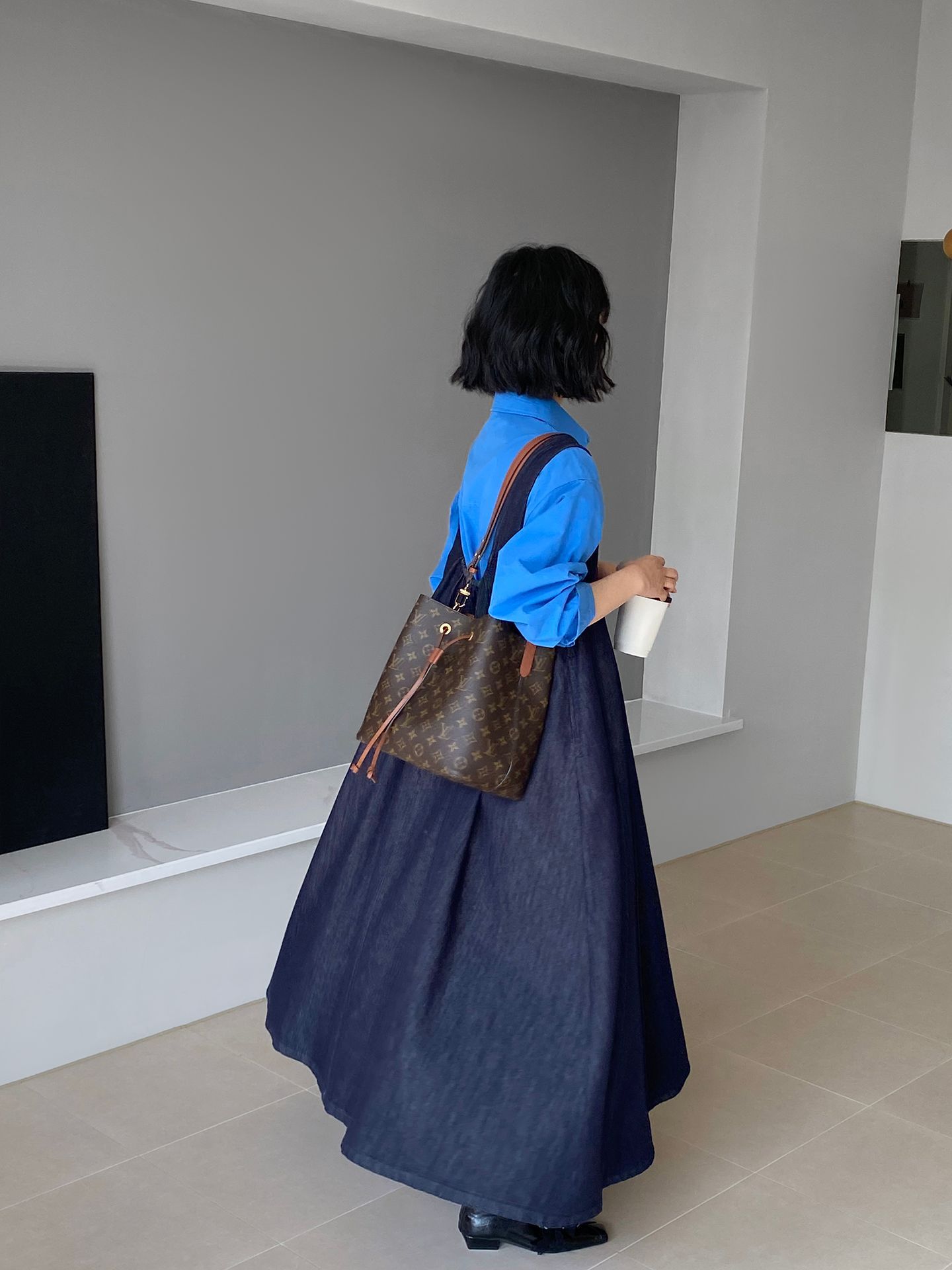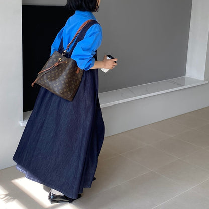 【商品名】【ワンピース】レトロ Uネック デニム ワンピース 【SNシリーズ】