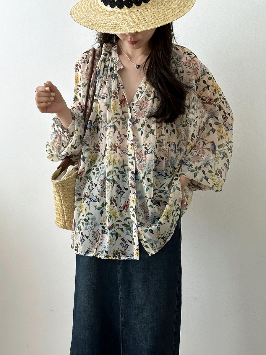 【トップス】レトロ 春夏 花柄 気質よい シャツ【JZシリーズ】